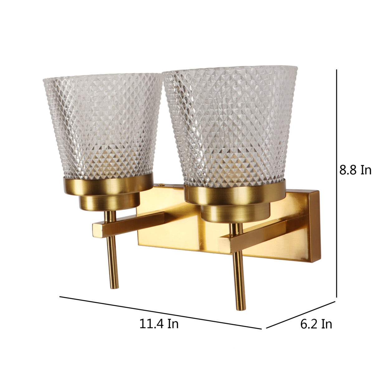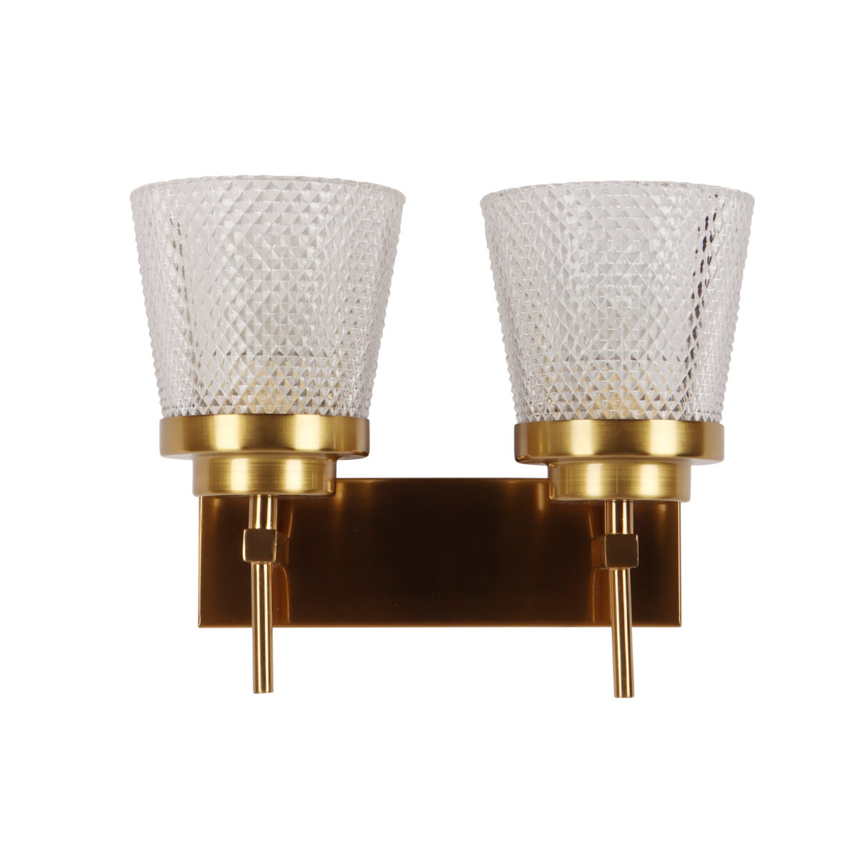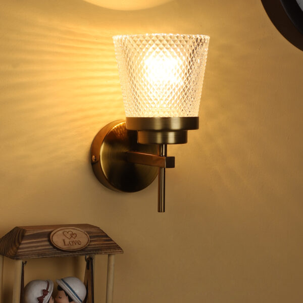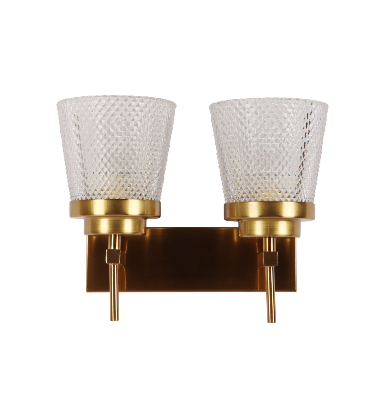 Antique brass finish double wall light having crystal glass made of mild steel. It is maintenance free., It is easy to remove glass and wash them. Comes with an E27 holder, only the change of lamp is required, which is available locally everywhere. Application includes both residential and commercial premises wherever it matches with your interiors. Matching single wall light code – WL2629. LAMP NOT INCLUDED.