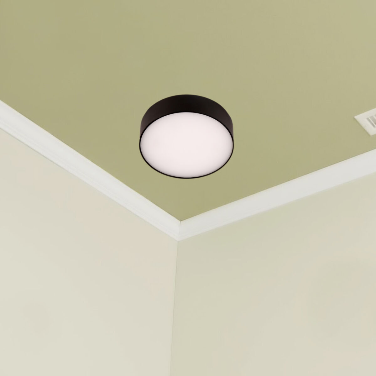 Black round LED surface seiling light with warm white (yellow) light output. Can be used both indoors and outdoors. Also avalable in brown (wood) finish. Please scroll down to see matching products.