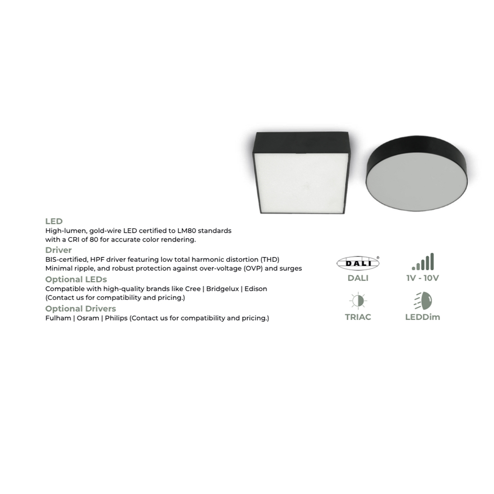 LEARC black finish 24 watt round LED Ceiling Light Surface.