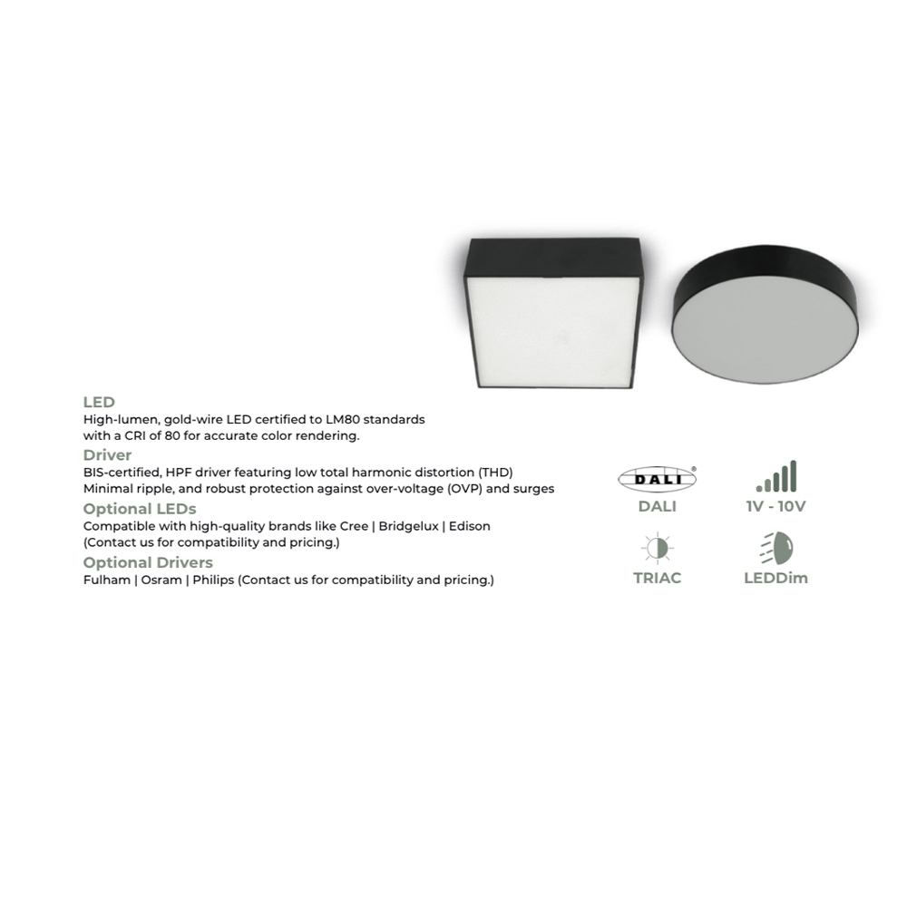 LEARC black finish 48 watt 12 inch square LED Ceiling Light Surface EP7131