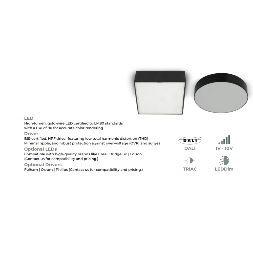 LEARC black finish 40 watt square LED Ceiling Light Surface.
