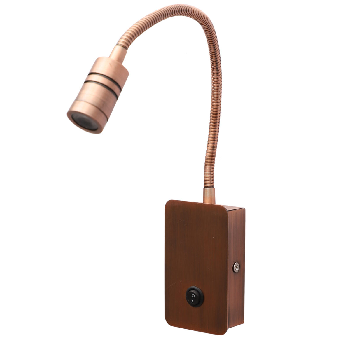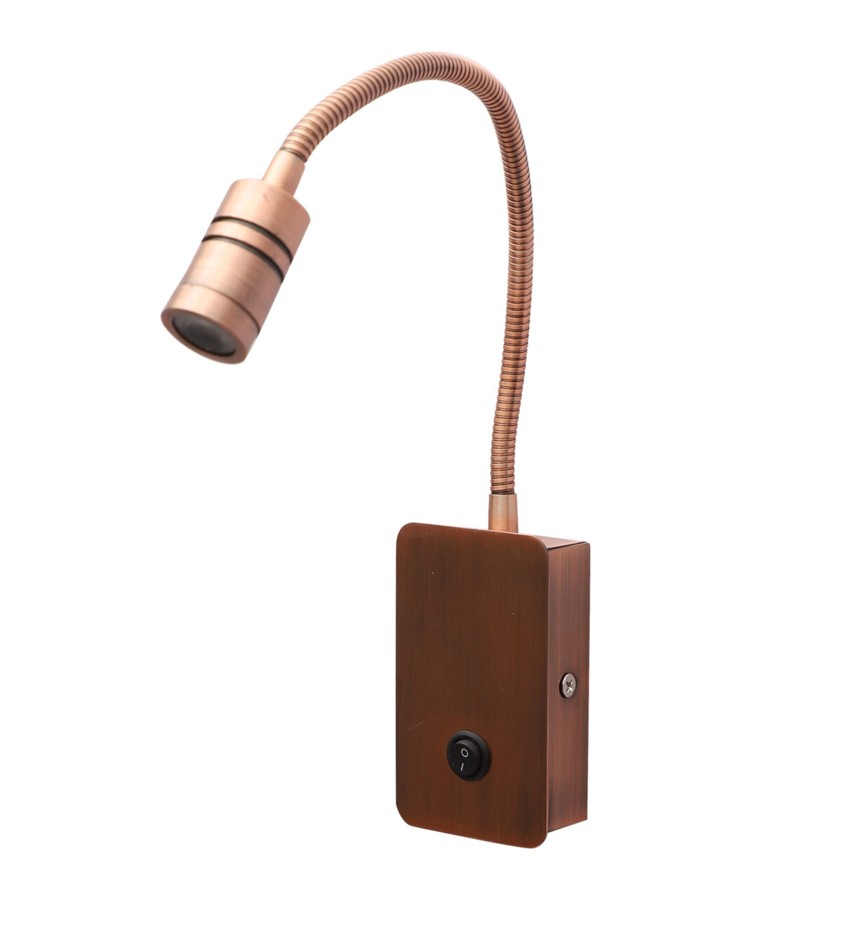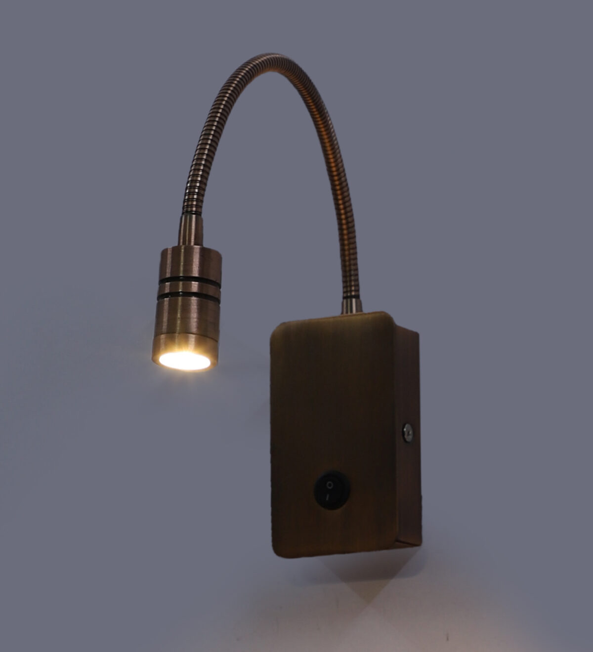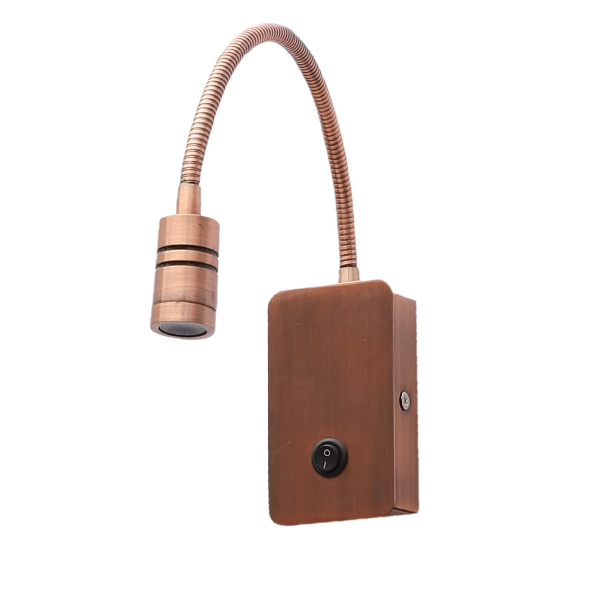 Copper finish sleek, economical, aluminium, mild steel adjustable bed side spot light. It is one of the best selling product. Ideal to install on the side of the bed at a low height. This highlights a small area giving yellow light output , which can be adjusted by rotating the head in any required direction.