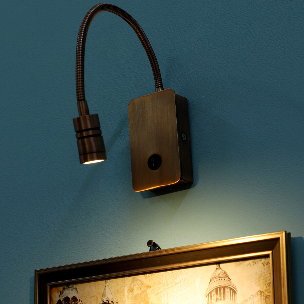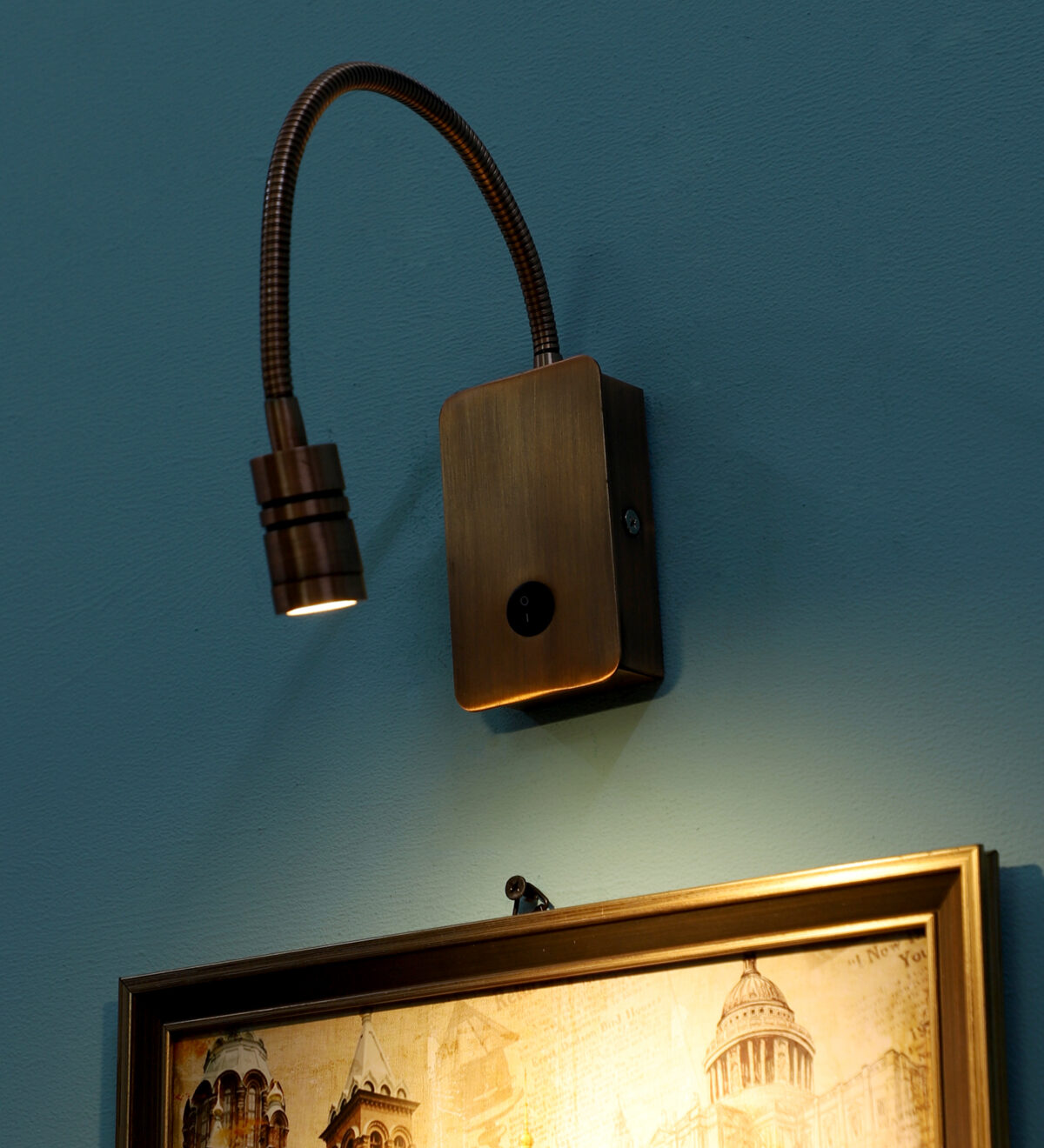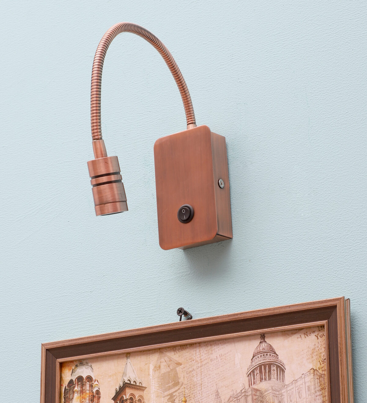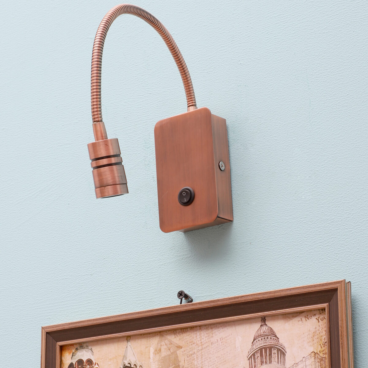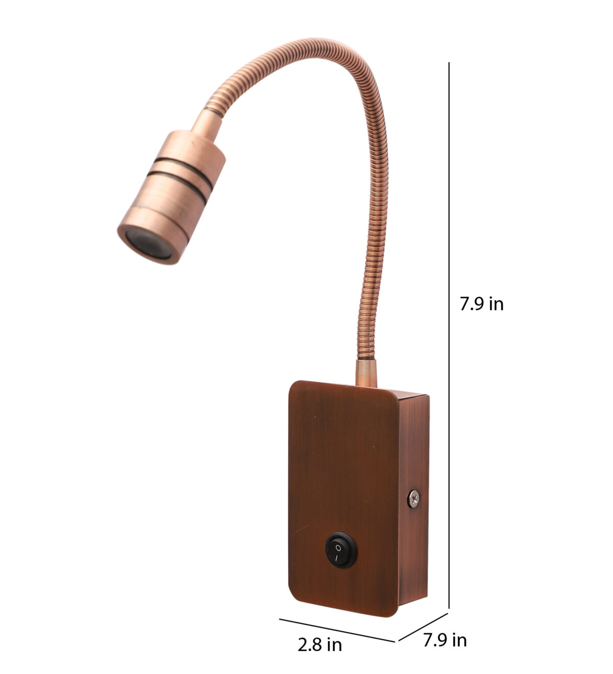 Copper finish sleek, economical, aluminium, mild steel adjustable bed side spot light. It is one of the best selling product. Ideal to install on the side of the bed at a low height. This highlights a small area giving yellow light output , which can be adjusted by rotating the head in any required direction.