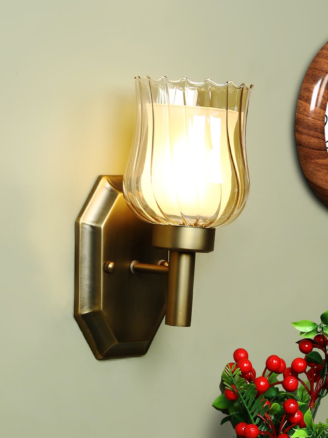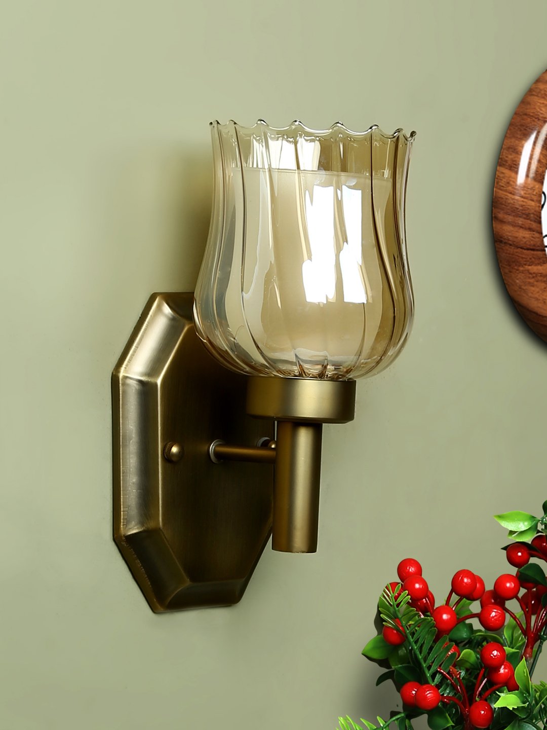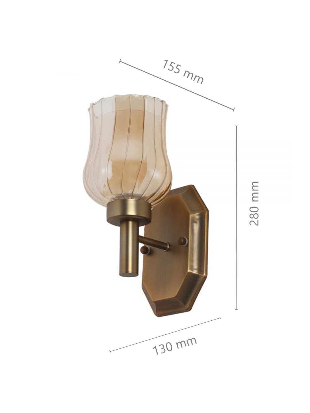 Antique brass finish single wall light having bell shaped Champaign colored two layer glass made of mild steel. It is maintenance free., It is easy to remove glass and wash them. Comes with an E27 holder, only the change of lamp is required, which is available locally everywhere. Application includes both residential and commercial premises wherever it matches with your interiors. Matching double wall light code – WL2268. Matching chandelier code – CH359. Can be customized as per requirement in case of bulk quantities. Lamp not included.