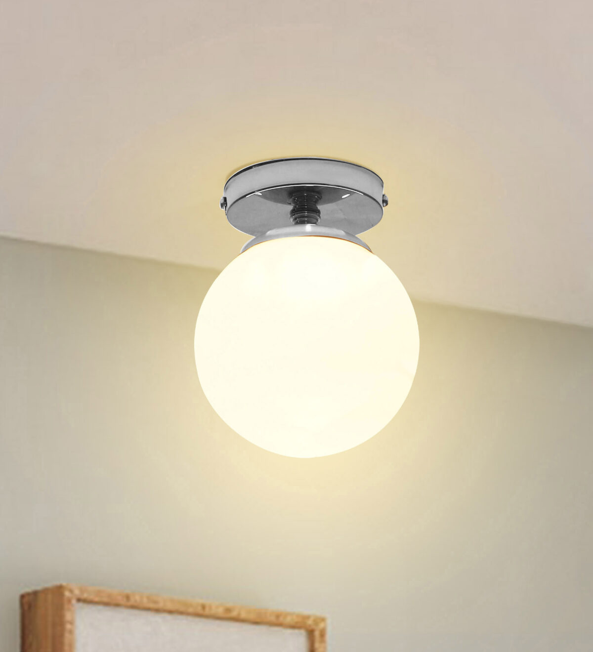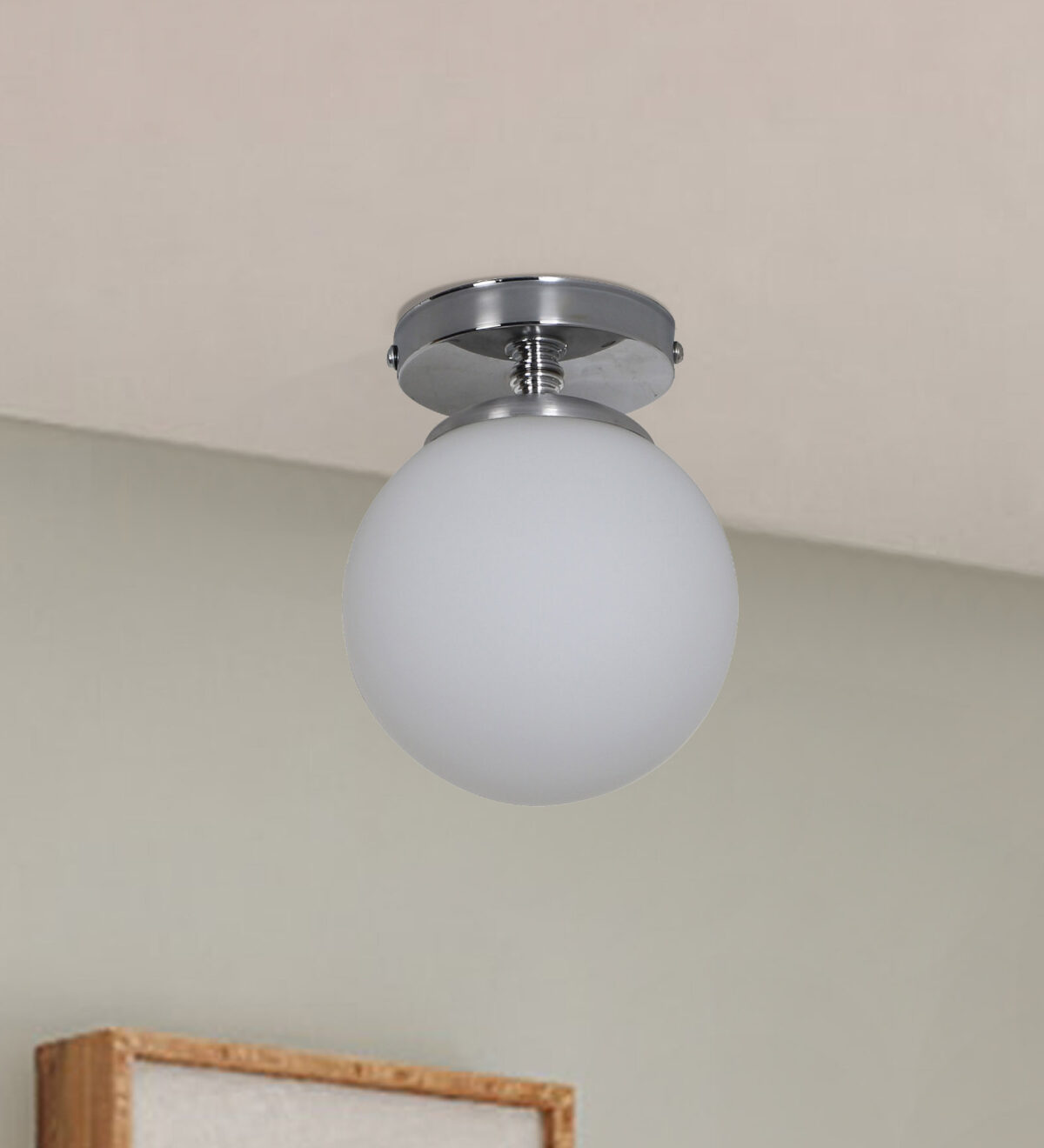Satin finish indoor ceiling light with 6 inch doom glass. It is maintenance free, it is easy to remove glass and wash it. Comes with an E27 holder. Can be customized as per requirement.LAMP NOT INCLUDED.