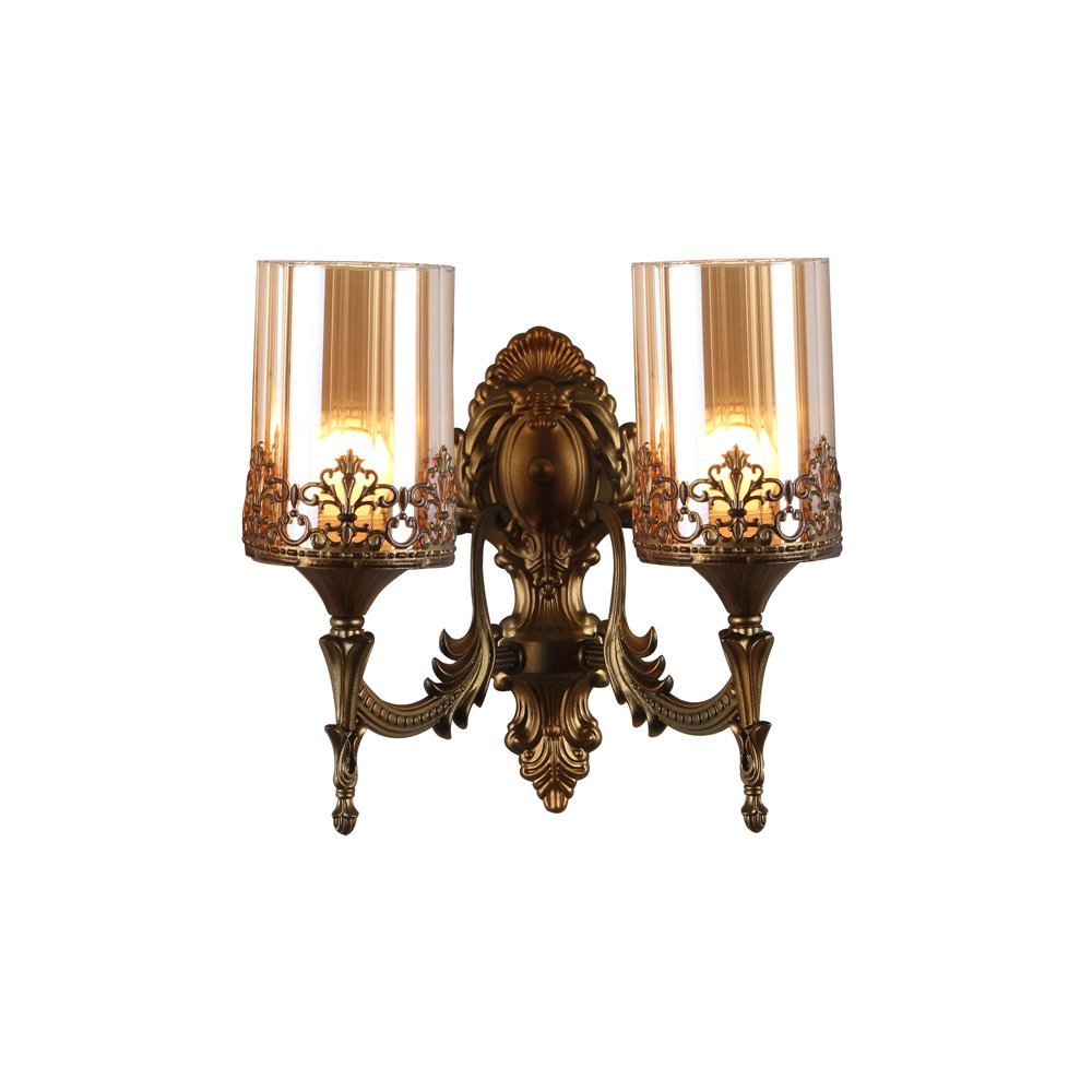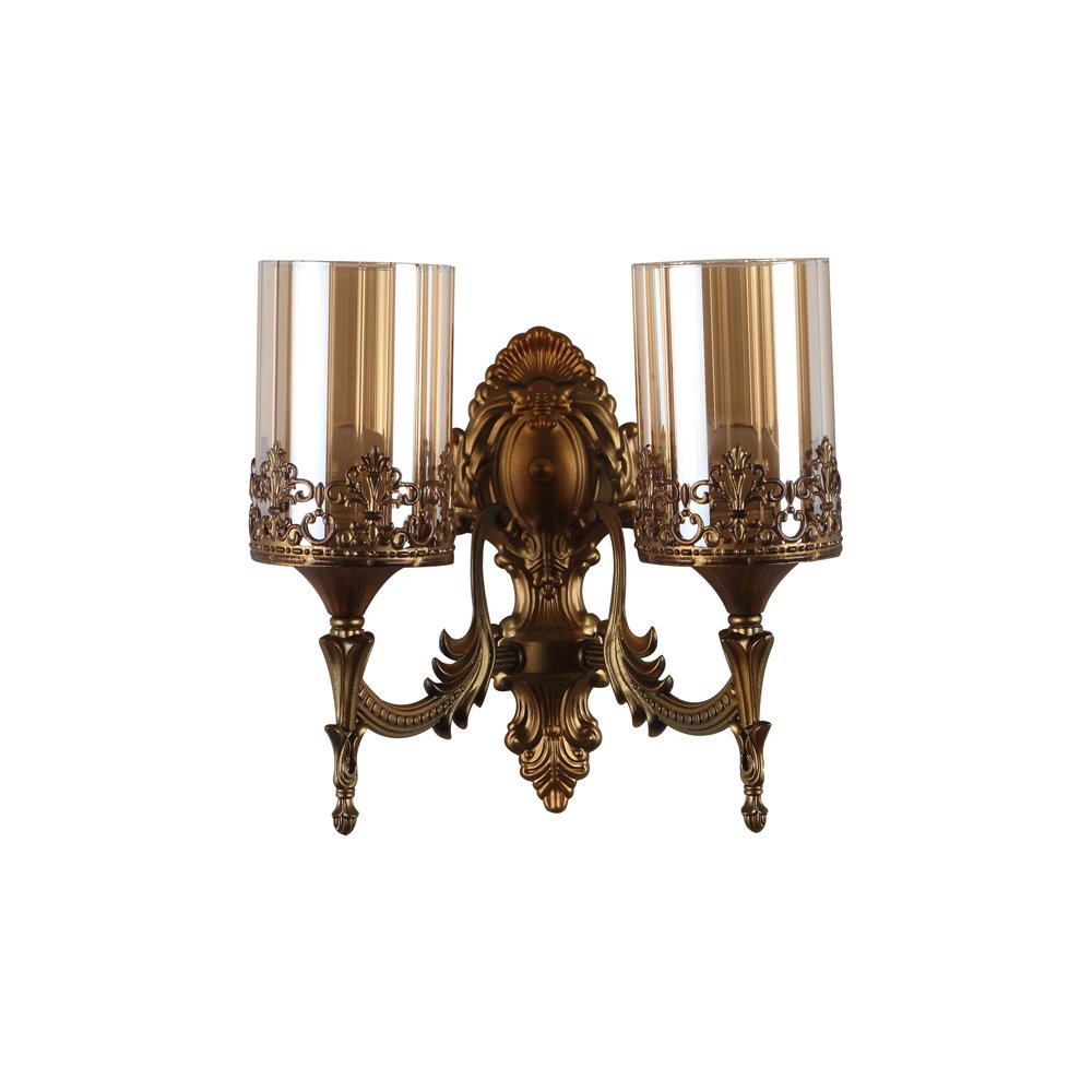 Antique brass finish traditional double wall light with a round cylindrical Champaign colored glass. It is maintenance free, easy to remove glass and wash them, comes with an E27 holder, only the change of lamp is required, which is available locally everywhere. LED filament lamp is recommended to enhance the beauty. Application includes both residential and commercial premises wherever it matches with your interiors. Matching hanging light code -HL5047-3, HL5047-1. Matching single wall light code – WL2389. Matching chandelier code – CH396. Lamp not included.