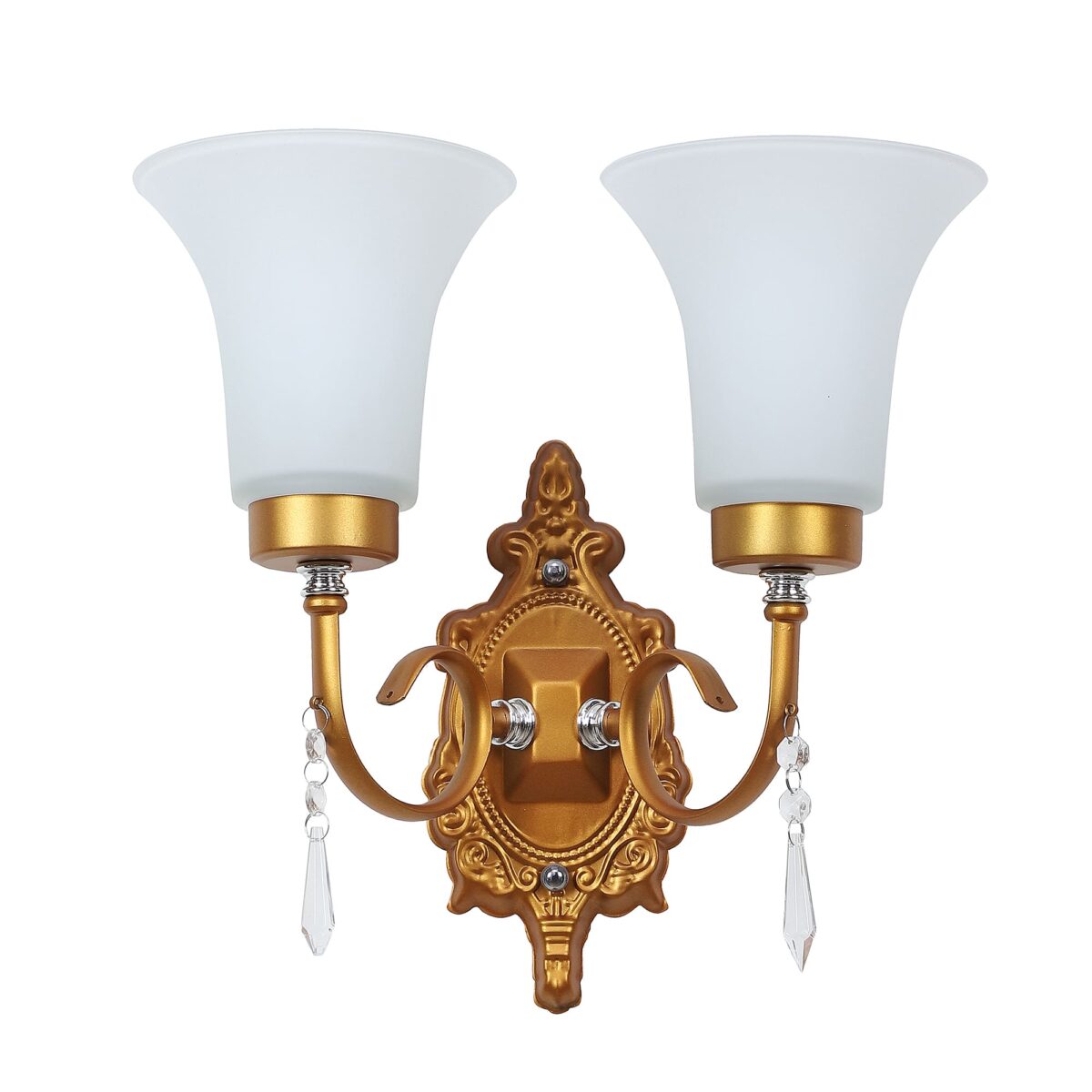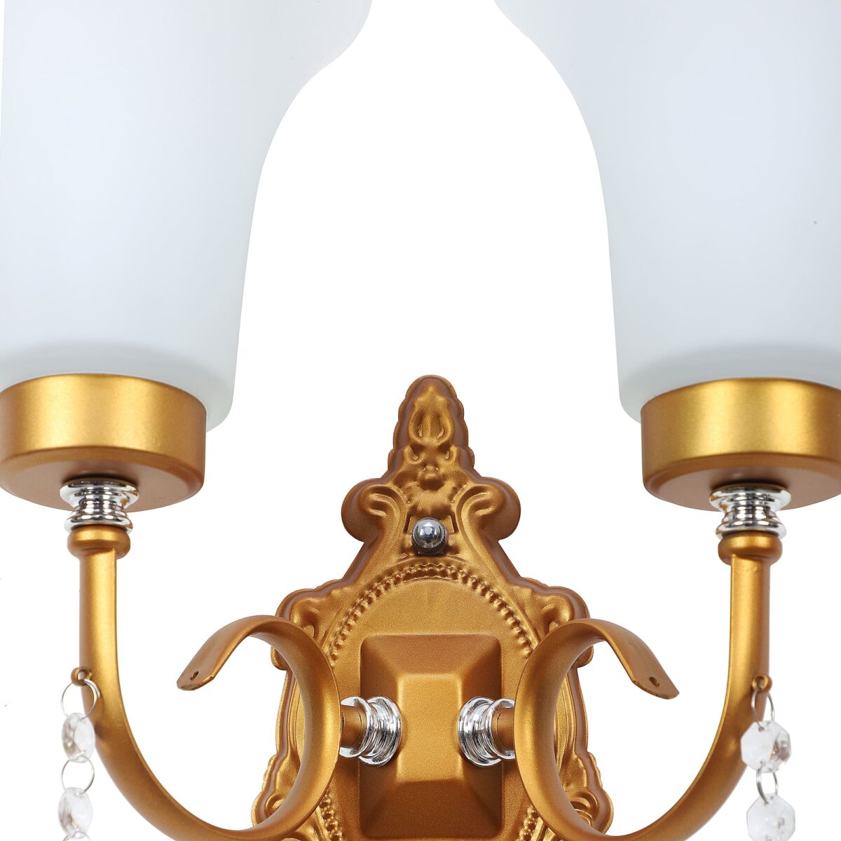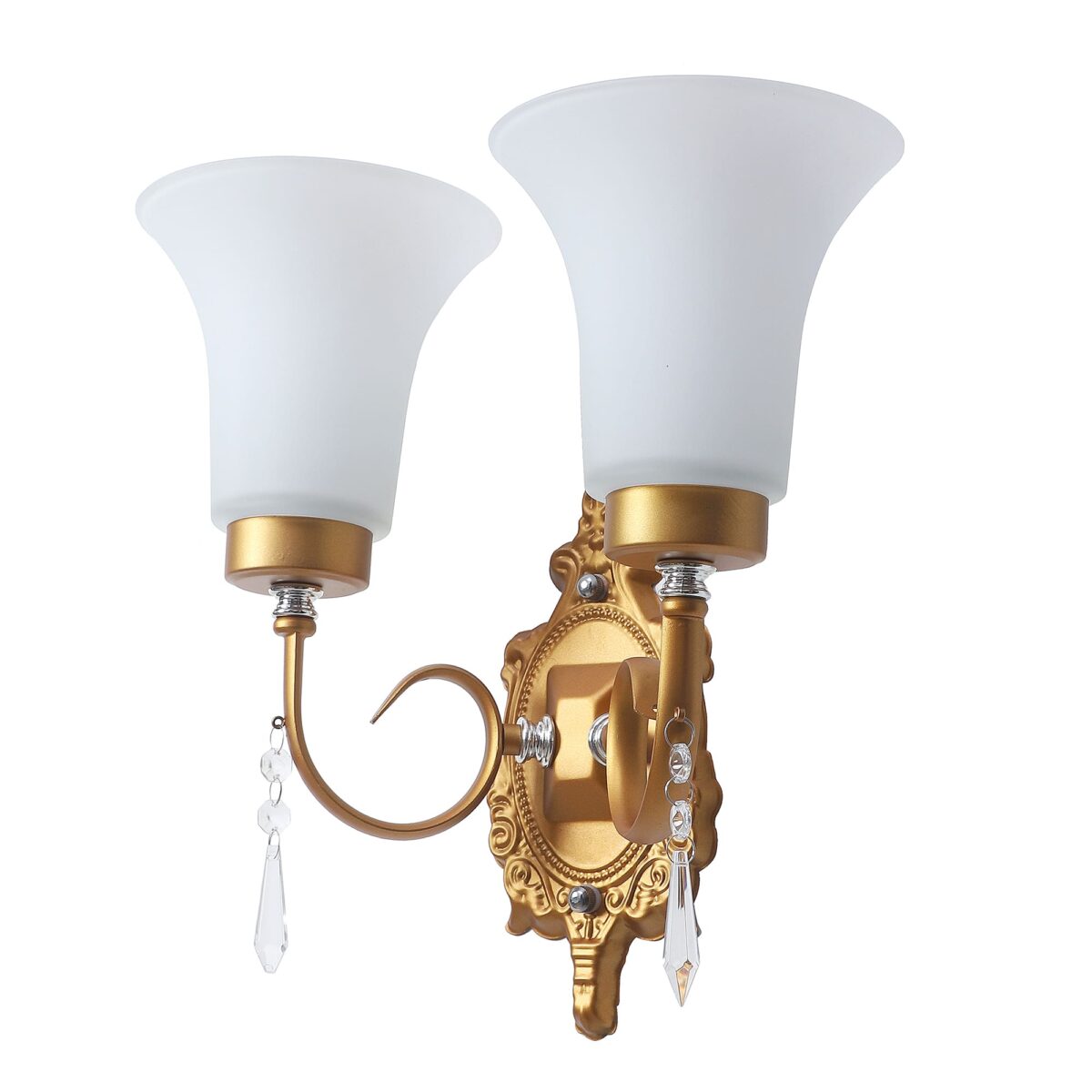 Antique brass finish double wall light having bell shaped white made of mild steel. It is maintenance free. It is easy to remove glass and wash them. Comes with an E27 holder, only the change of lamp is required, which is available locally everywhere. Application includes both residential and commercial premises wherever it matches with your interiors. Matching single wall light code -WL2445. Can be customized as per requirement in case of bulk quantities. Lamp not included.