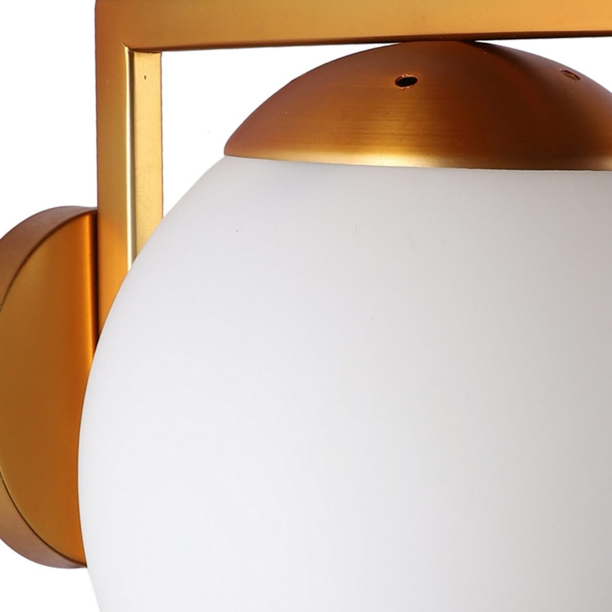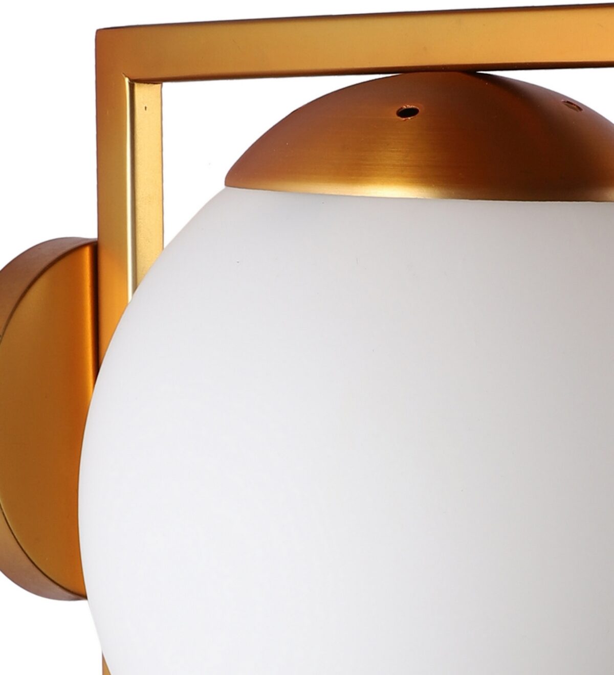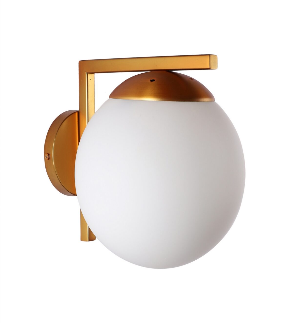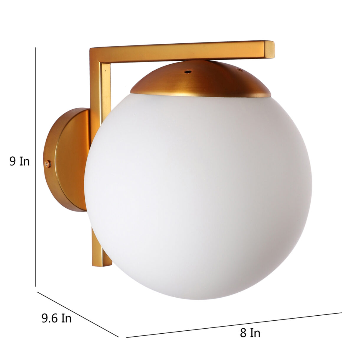 Antique gold finish single wall light made of mild steel, with white round globe (doom) glass. It is maintenance free, glass is closed from all the sides which prevents accumulation of dust, easy to remove glass and wash it, comes with an E27 holder, only the change of lamp is required, which is available locally everywhere. You can of course swap out the bulb for one that is dimmable, has a higher light output or a different color temperature. Application includes both residential and commercial premises wherever it matches with your interiors. It is one of the best selling product in our catalogue. Can be customised as per requirement in case of bulk quantities. LAMP NOT INCLUDED.