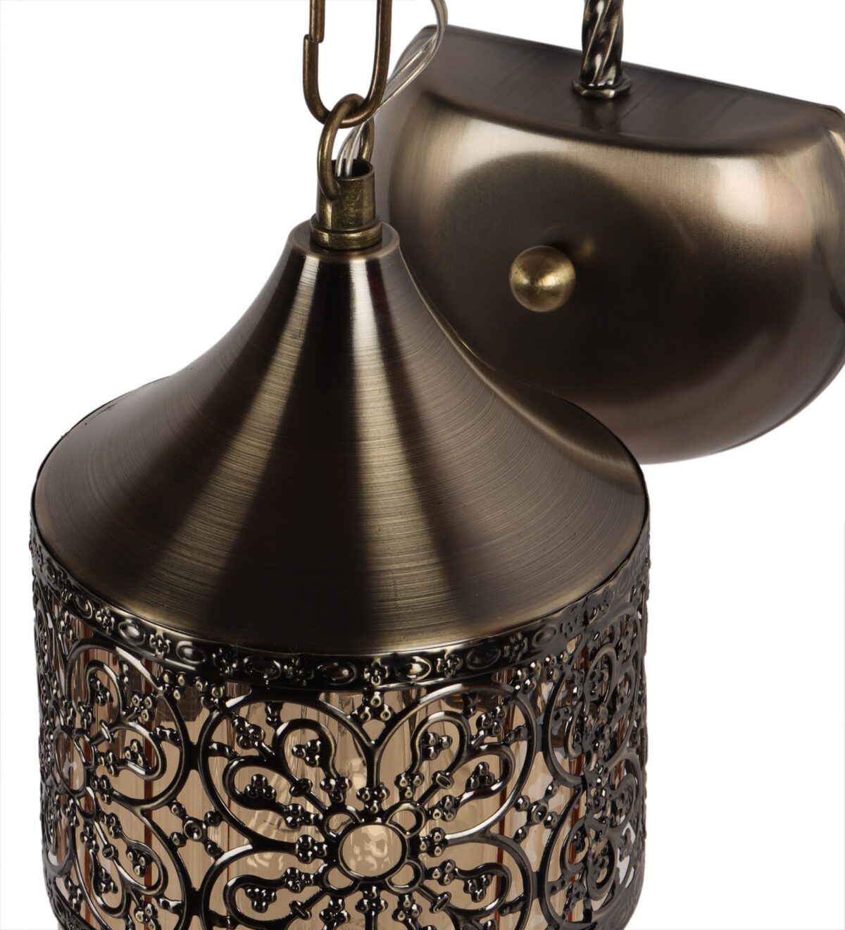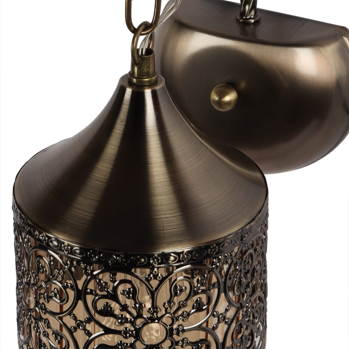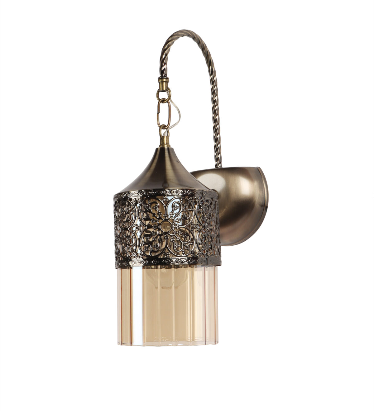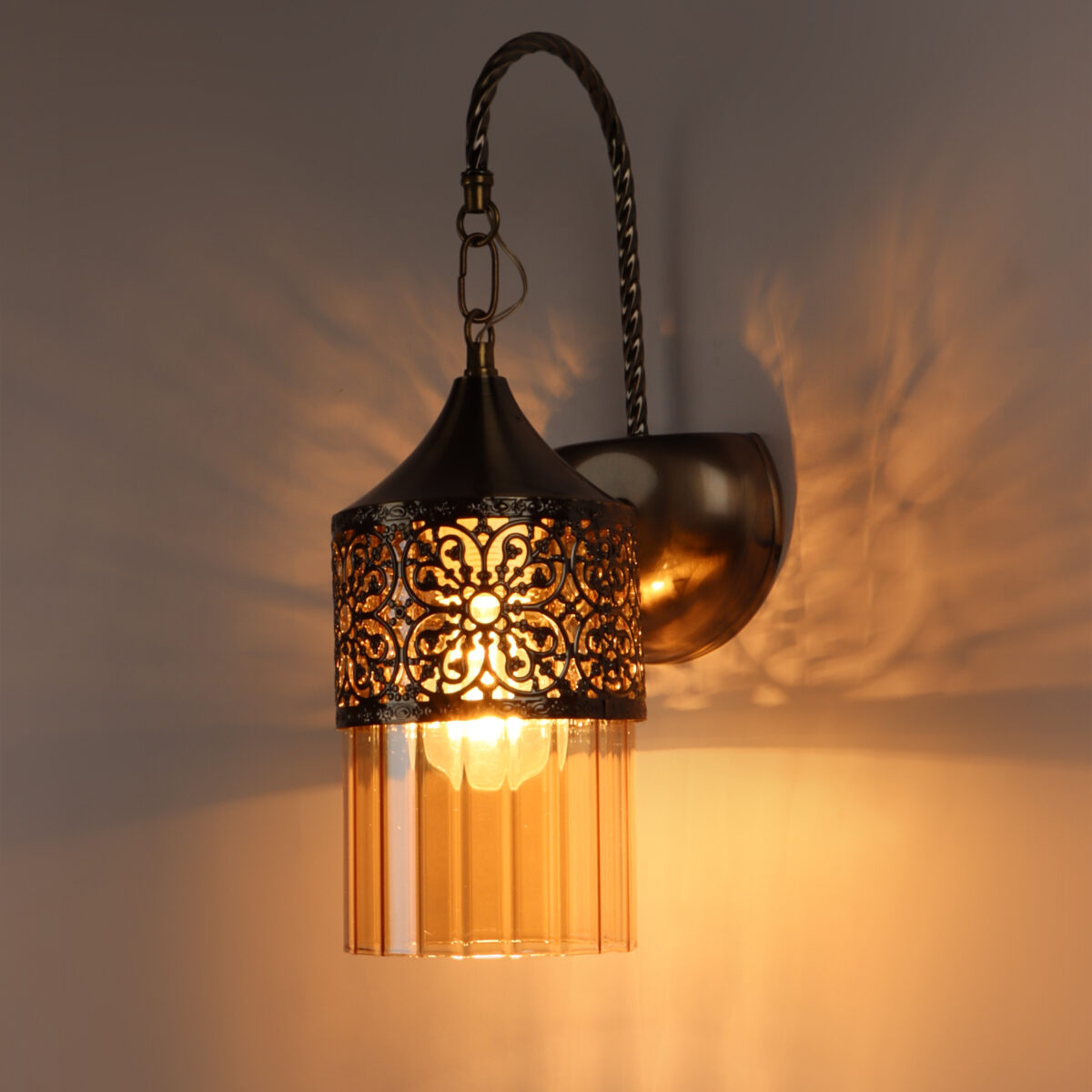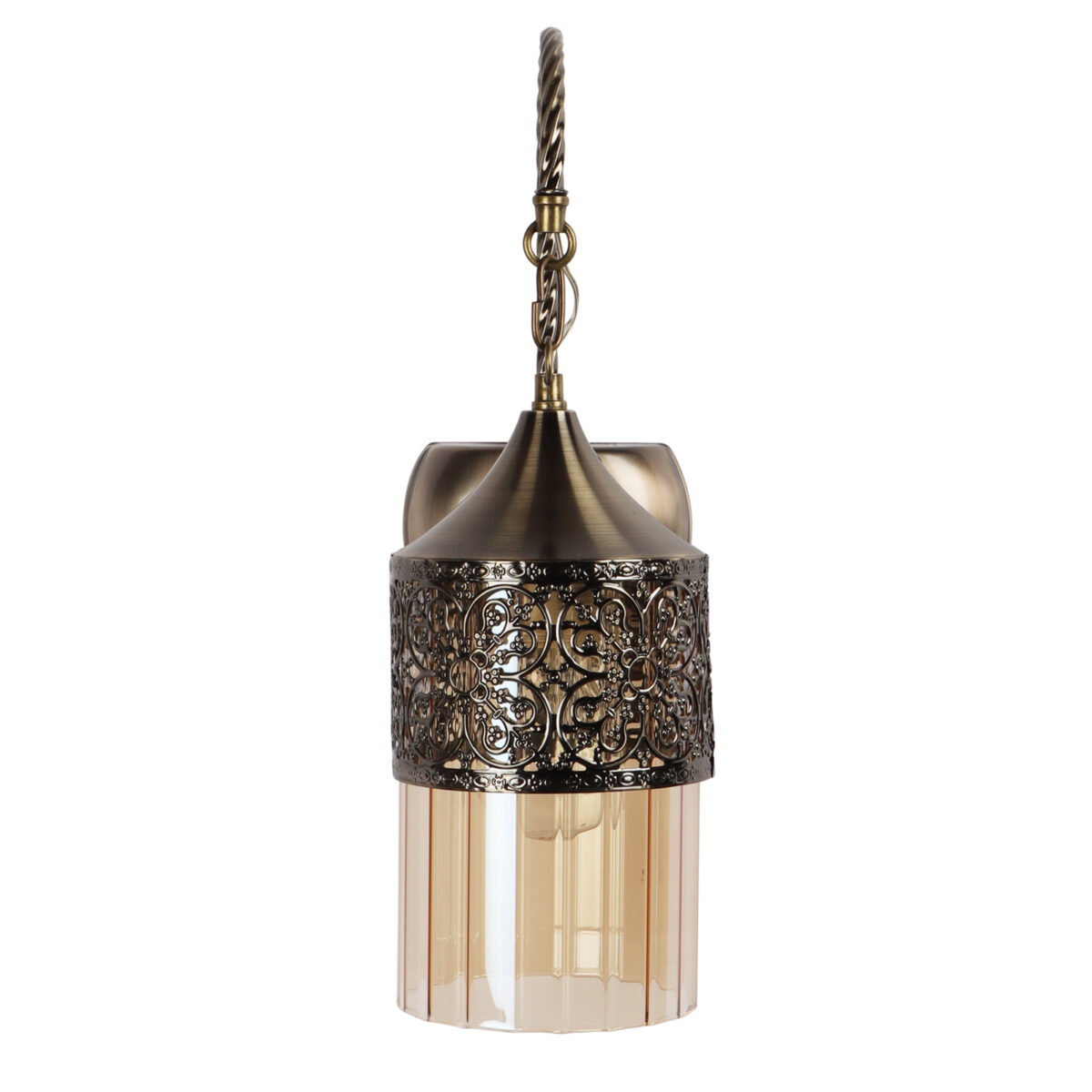 Antique brass finish single wall light made of mild steel having champaign coloured glass. It is maintenance free. Comes with an E27 holder, only the change of lamp is required, which is available locally everywhere. Application includes both residential and commercial premises wherever it matches with your interiors. LAMPS NOT INCLUDED.