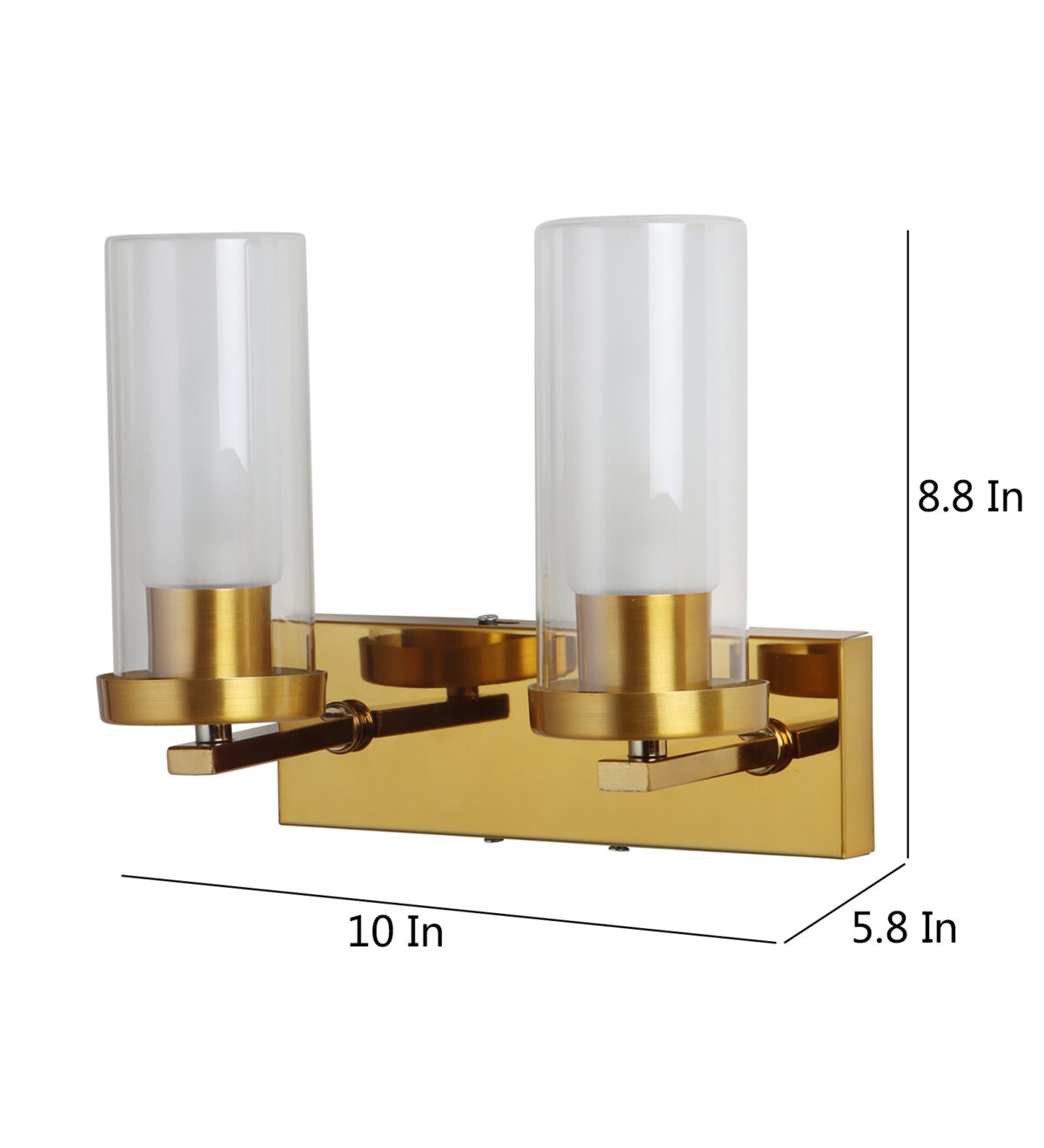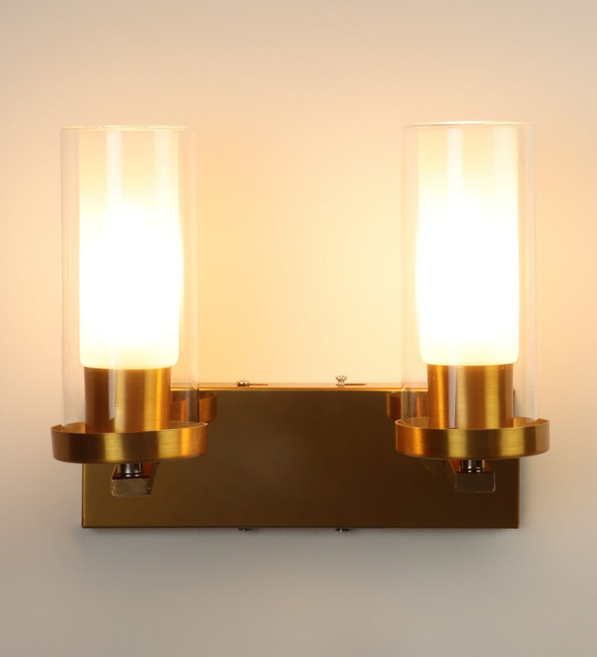 Antique gold finish double wall light having sleek, round, cylindrical two layered glass. It is maintenance free, easy to remove glasses and wash them, comes with an E14 holder, only the change of lamp is required, which is available locally everywhere. Application includes both residential and commercial premises wherever it matches with your interiors. Matching single wall light code – WL2733. Can be customized as per requirement in case of bulk quantity, LAMP NOT INCLUDED.
