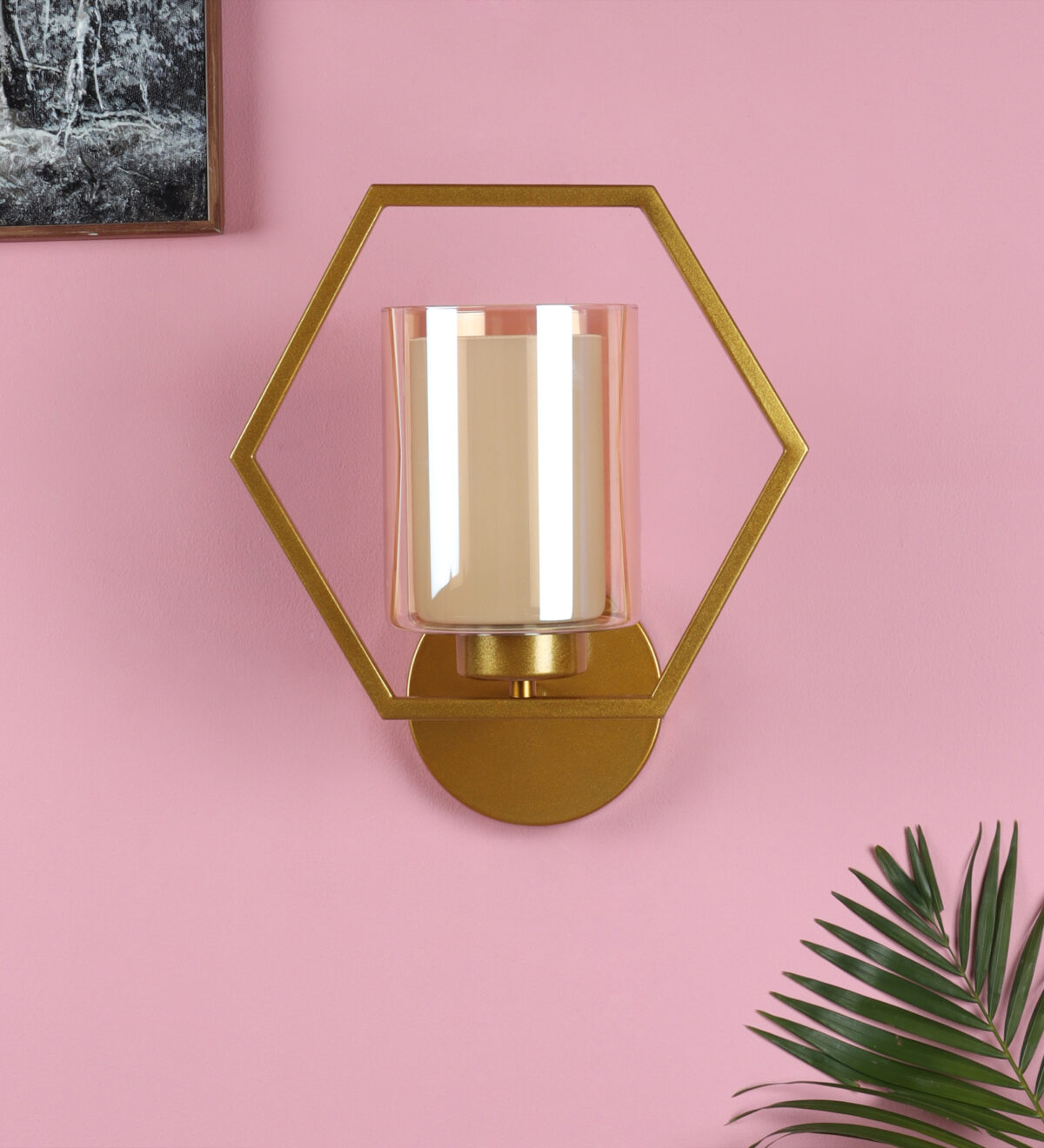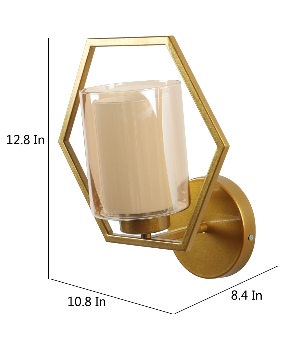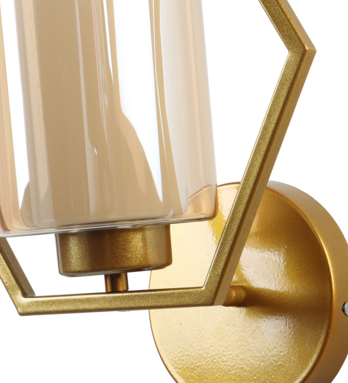Antique gold finish single wall light having round, cylindrical two layered champaign coloured glass. It is maintenance free, easy to remove glass and wash them, comes with an E27 holder, only the change of lamp is required, which is available locally everywhere. Application includes both residential and commercial premises wherever it matches with your interiors. Can be customized as per requirement in case of bulk quantity, LAMP NOT INCLUDED.