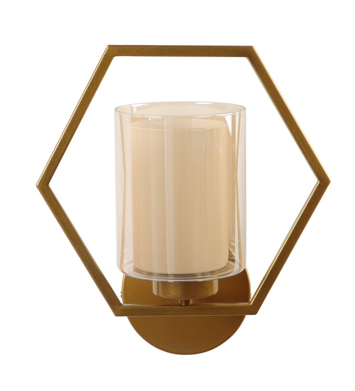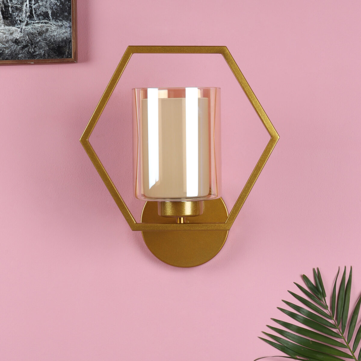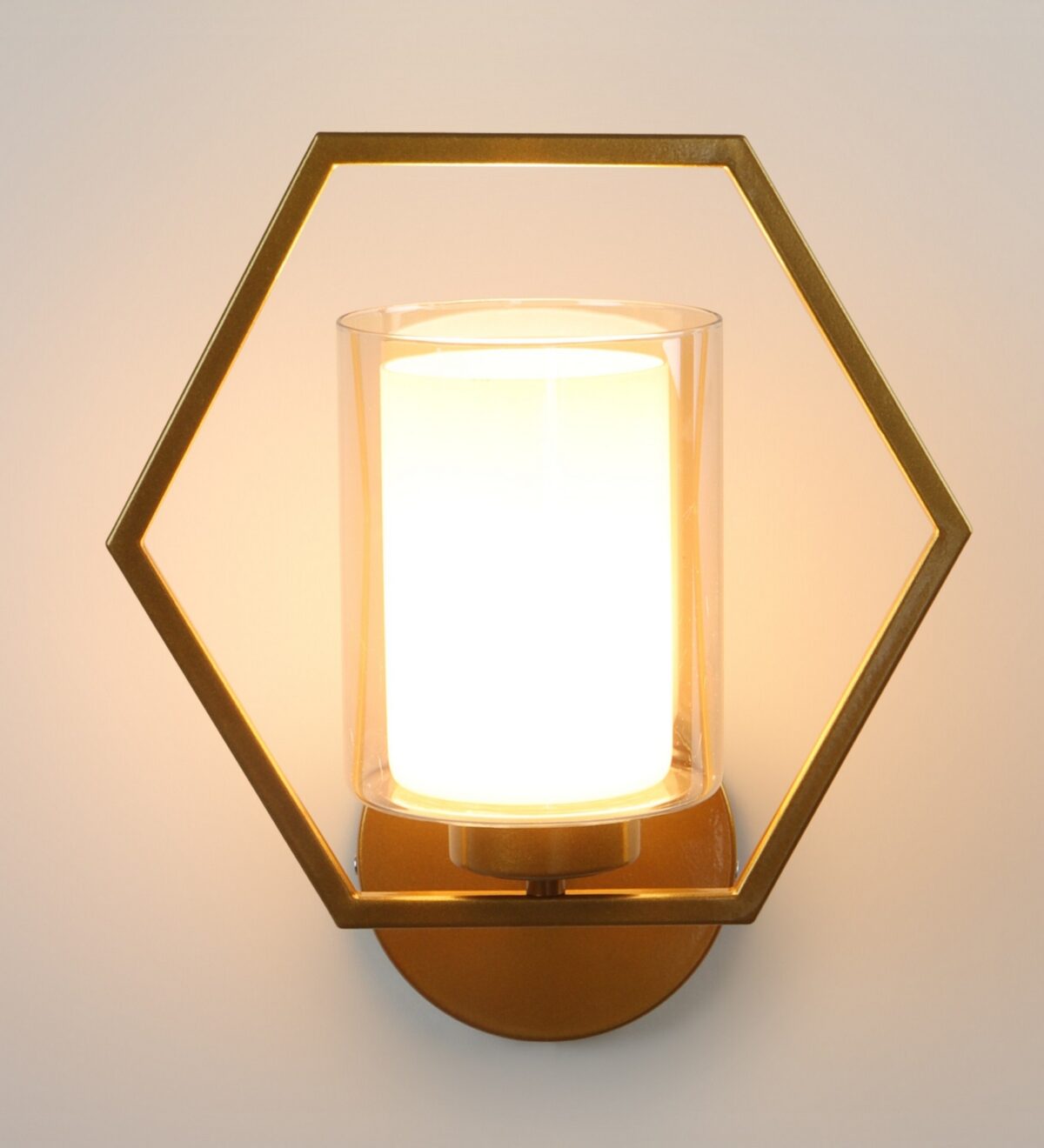 Antique gold finish single wall light having round, cylindrical two layered champaign coloured glass. It is maintenance free, easy to remove glass and wash them, comes with an E27 holder, only the change of lamp is required, which is available locally everywhere. Application includes both residential and commercial premises wherever it matches with your interiors. Can be customized as per requirement in case of bulk quantity, LAMP NOT INCLUDED.