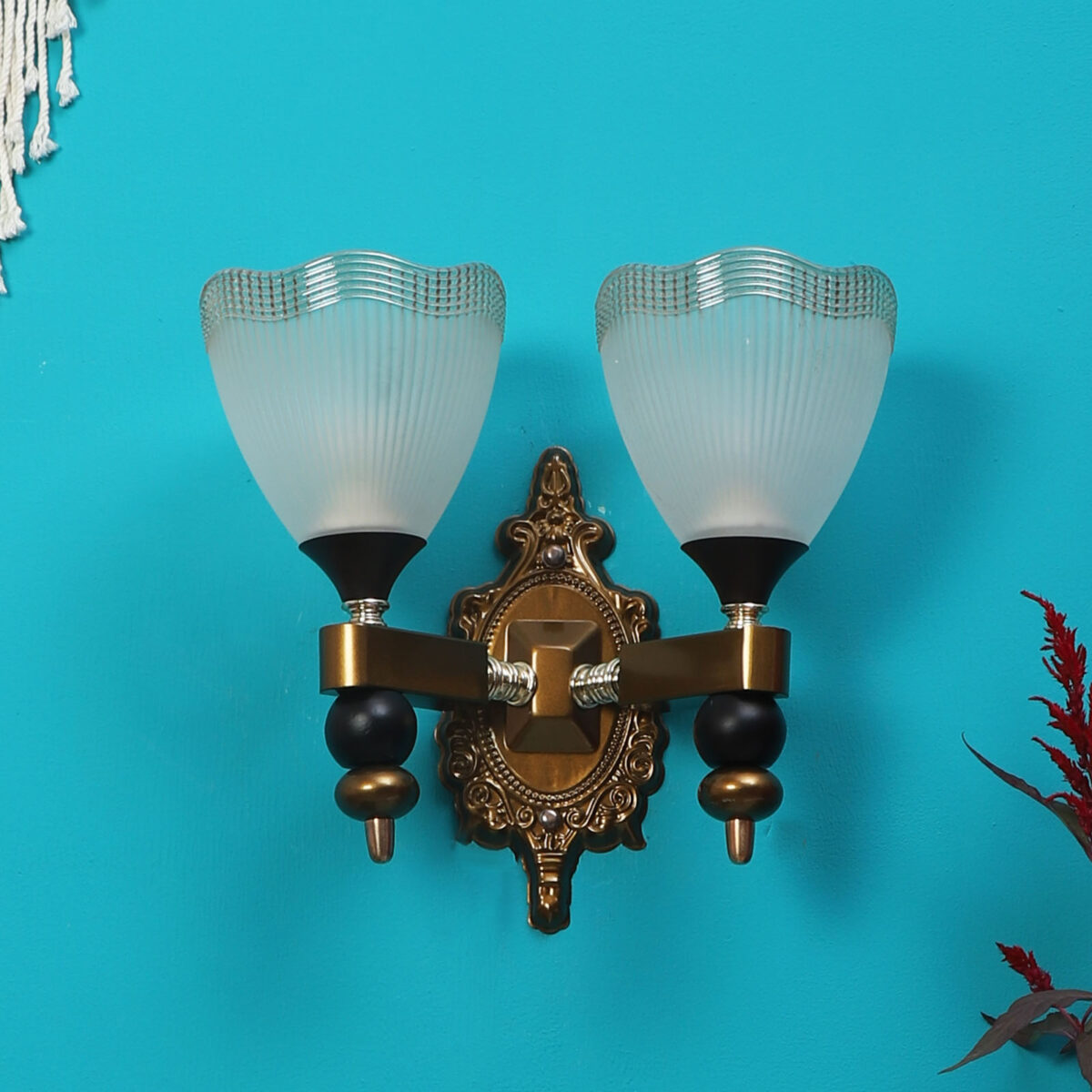Antique finish double wall light. Can be customized as per requirement. LAMP NOT INCLUDED.