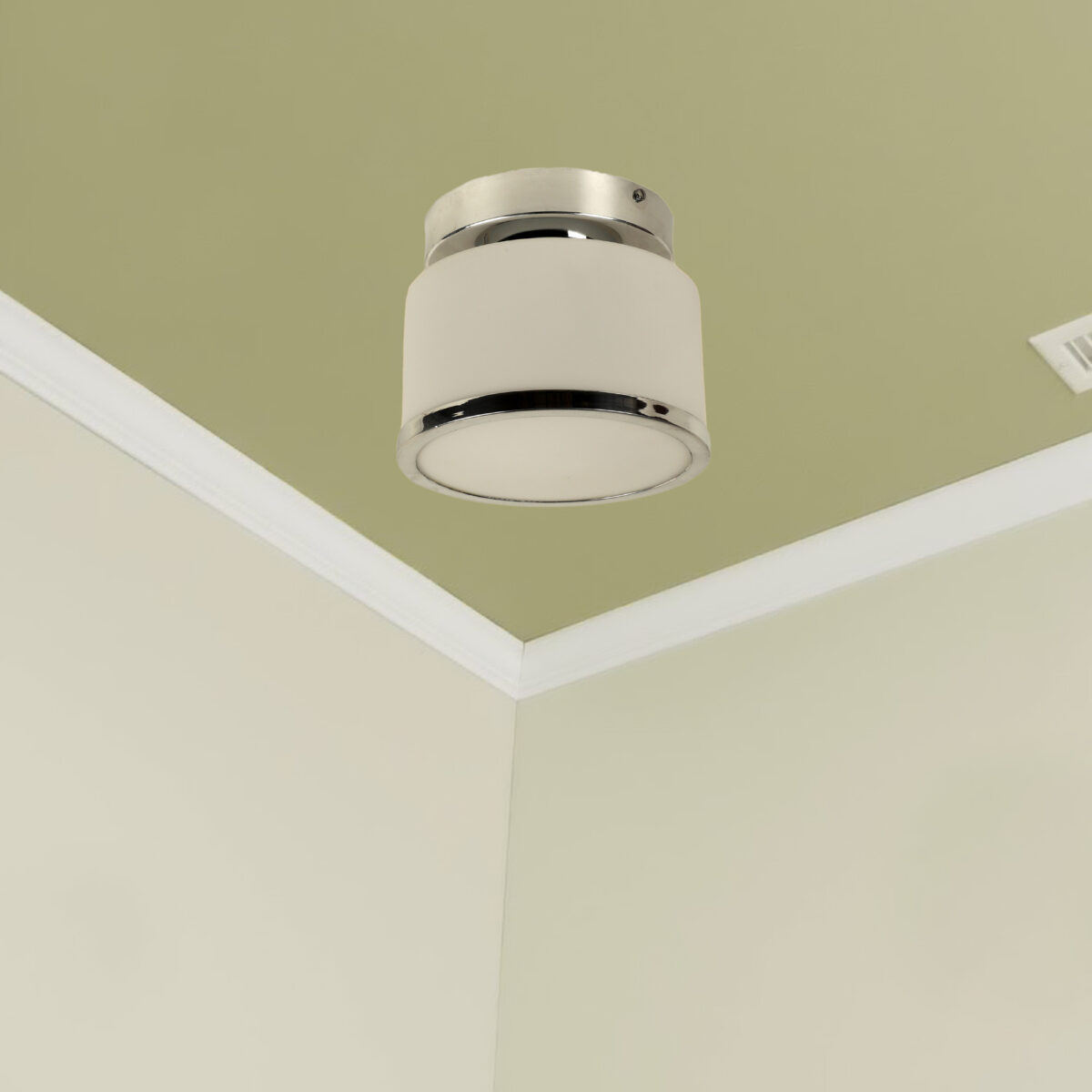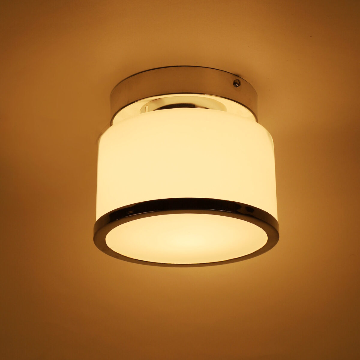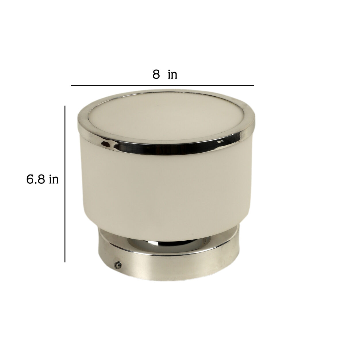 Silver (chrome) finish, round cylindrical white glass mounted on a round plate made of mild steel. This is a fixed type ceiling in which the base plate is fixed to the ceiling with the help of straight clamp and screws. It is maintenance free, glasses are closed from all the sides which prevents accumulation of dust and it is easy to remove glass and wash them. Comes with an E27 holder, only the change of lamp is required, which is available locally everywhere. Application includes both residential and commercial premises wherever it matches with your interiors. Matching chandelier variations – CH164, CH165, CH167, CH177. Matching wall light code – WL2541, WL2542. All designs available in dark brown (wood) finish also. Can be customized as per requirement in case of bulk quantities. This along with its variants are the best selling products in our catalogue. LAMP NOT INCLUDED.