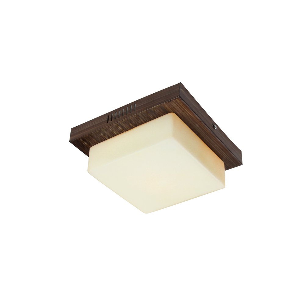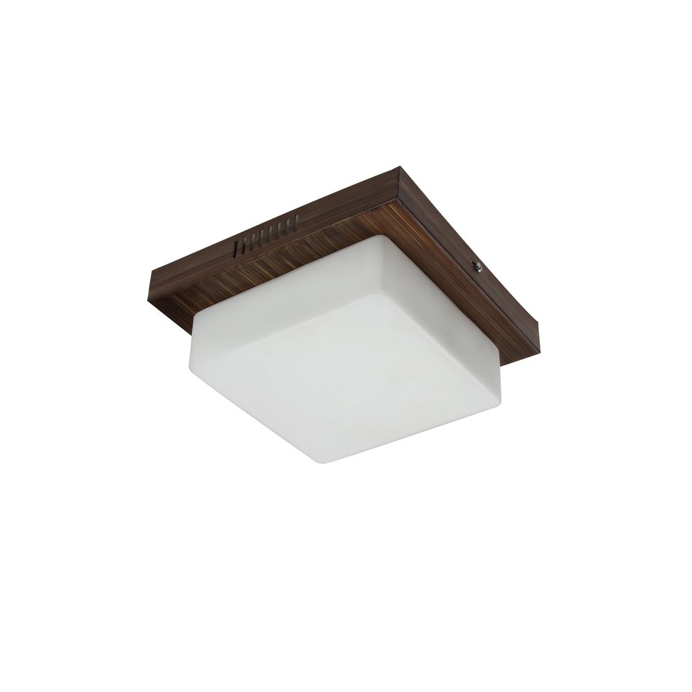 Square aluminium sheet / mild steel powder coated outdoor ceiling light having two lamps in brown (wood) finish providing light in 360 degree. It is maintenance free, comes with an E27 holder, only the change of lamp is required, which is available locally everywhere You can of course swap out the bulb for one that is dimmable, has a higher light output or a different color temperature. Application areas include porches, entrance, patio, verandah, balcony, bathroom, staircase ceiling, terrace, stilt parking, basement parking Have a smaller size with one lamp option with code CL449-S.