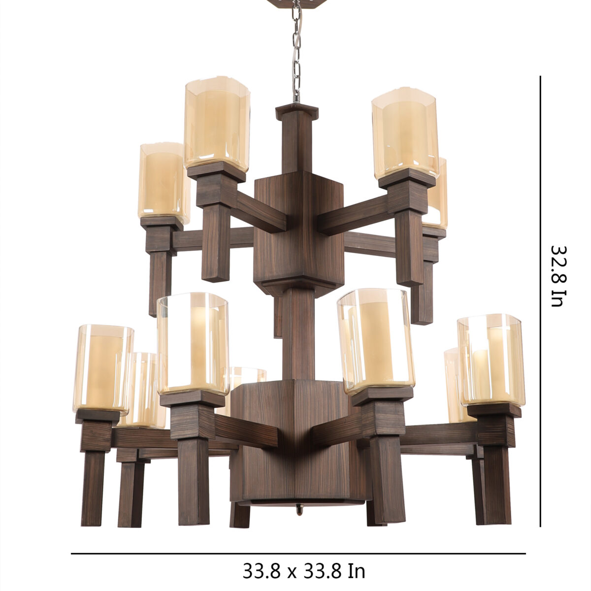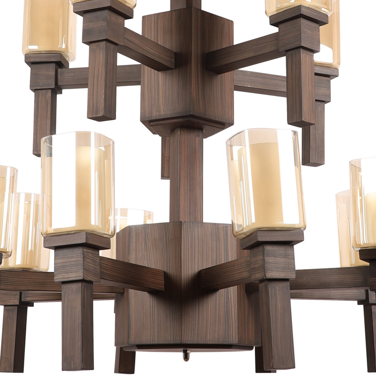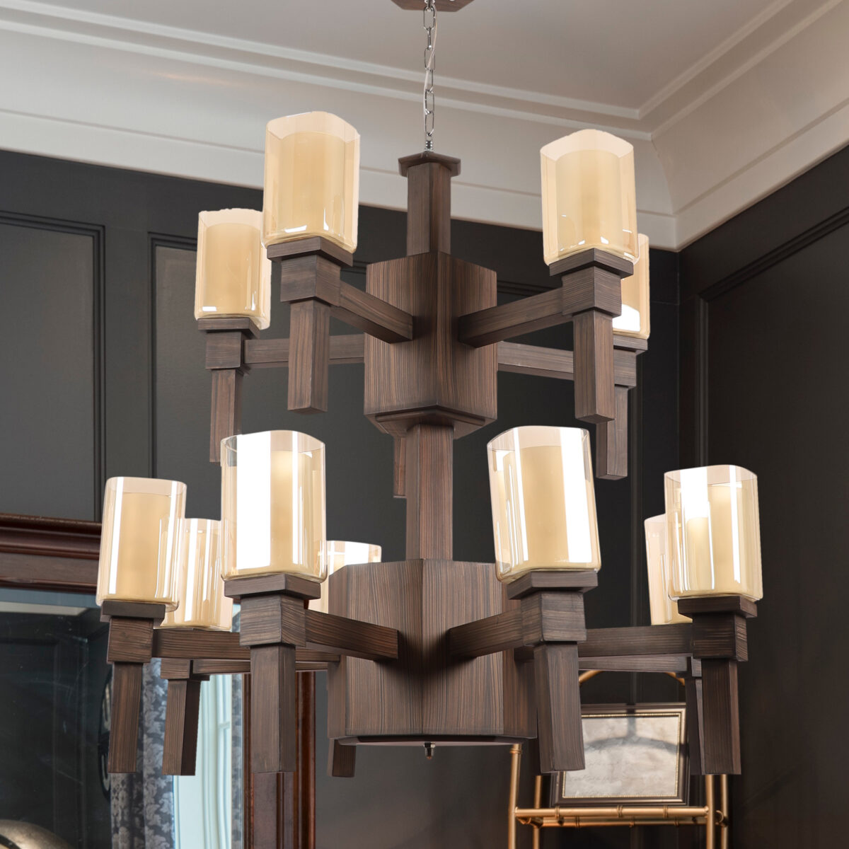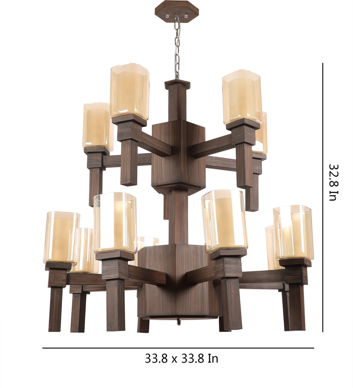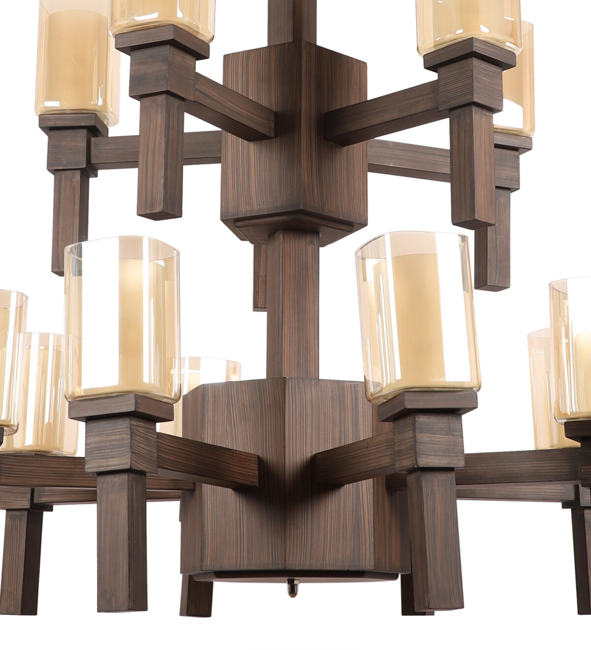 LEARC Designer Lighting Contemporary Glass Metal Wood Chandelier CH394-13