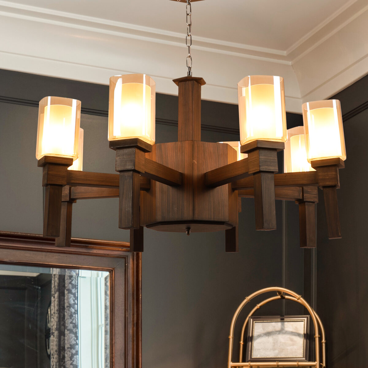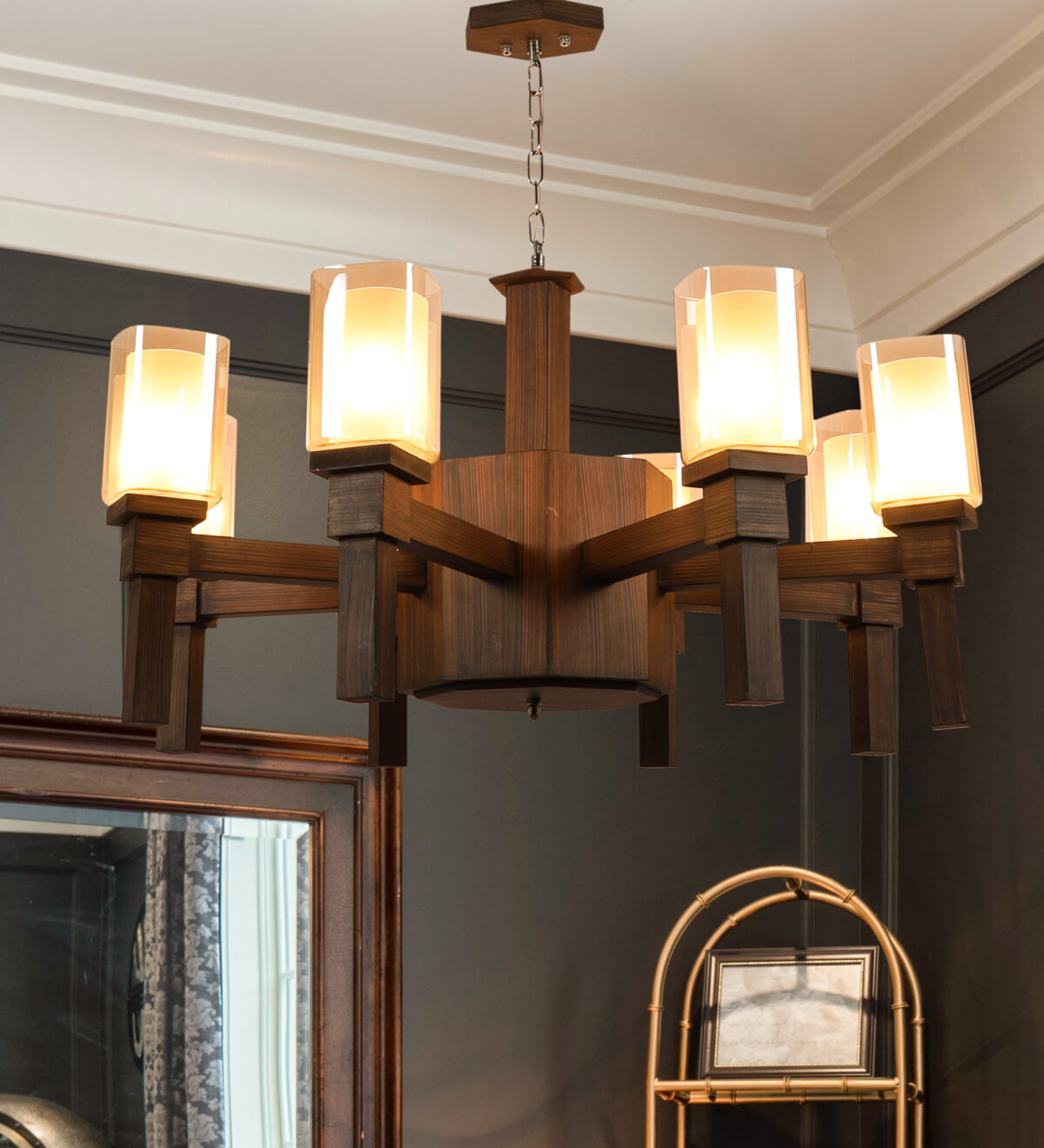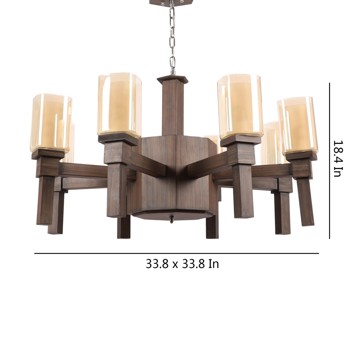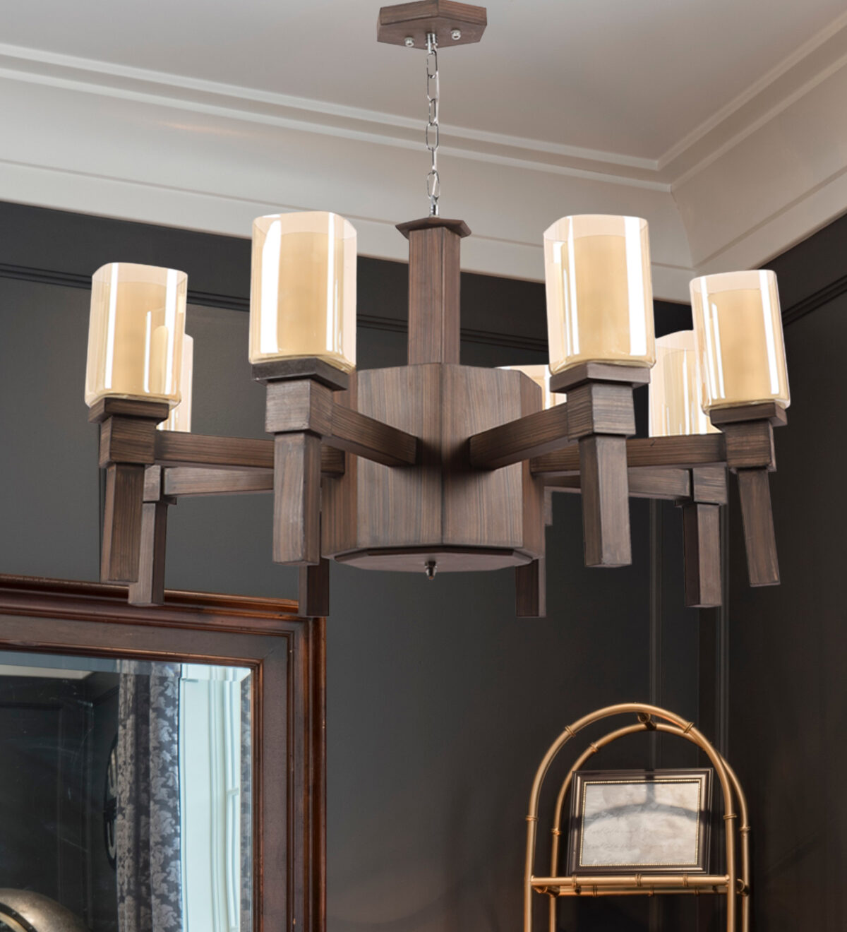 LEARC Designer Lighting Contemporary Glass Metal Wood Chandelier CH394-8