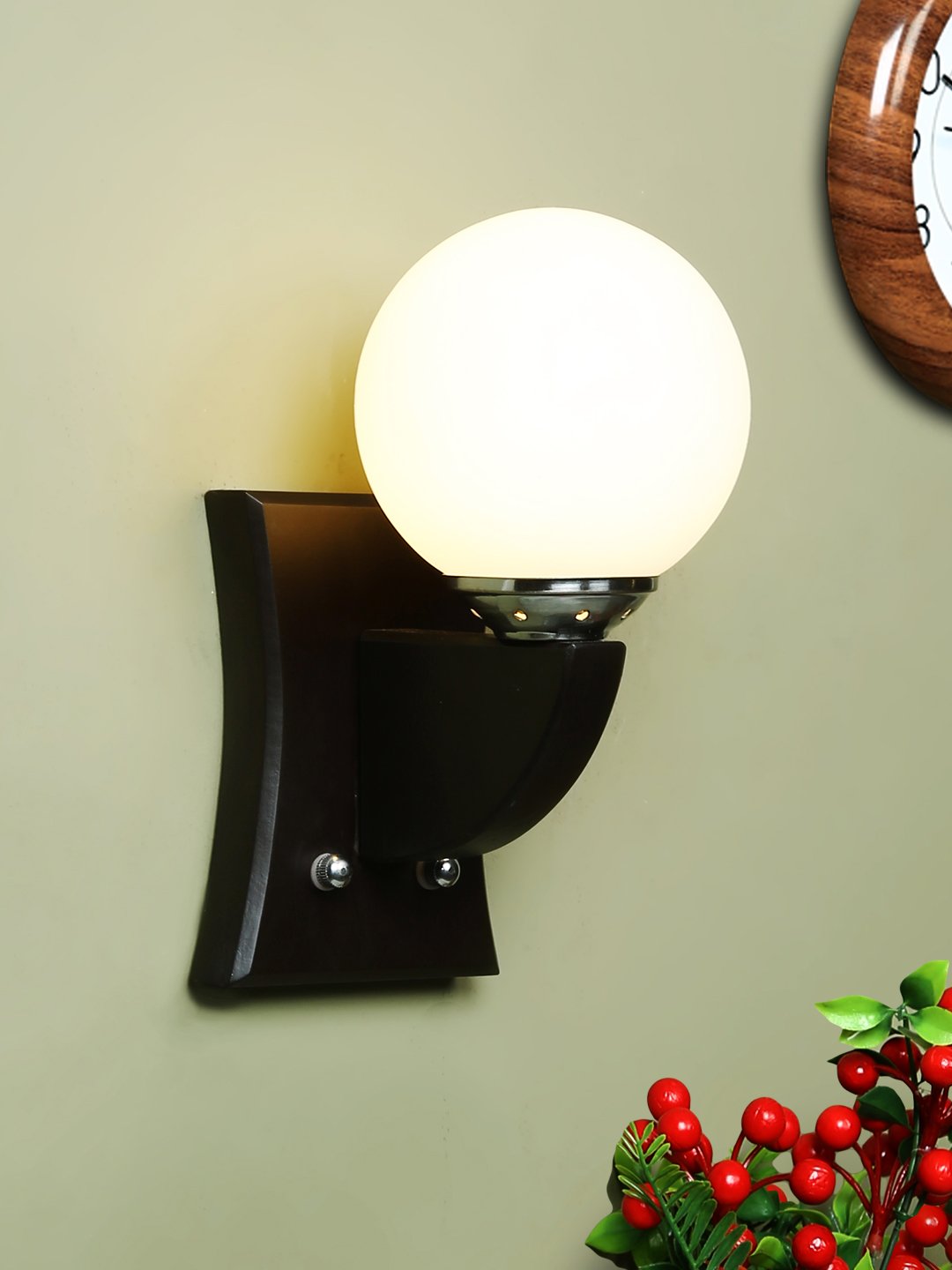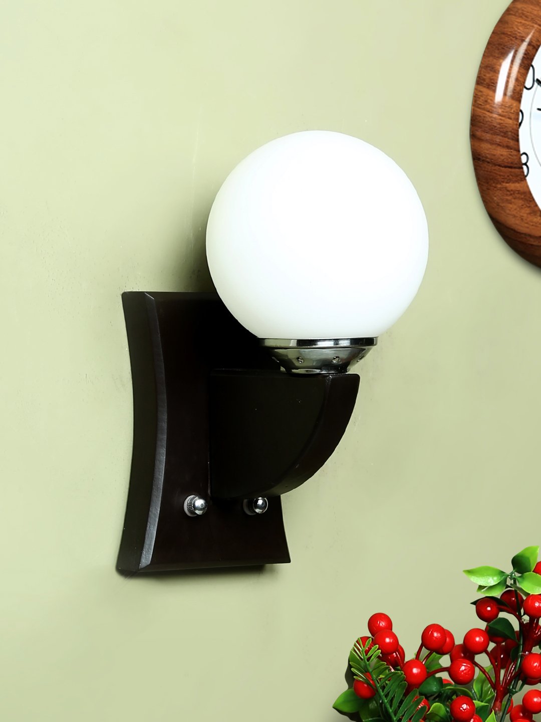 Modern dark brown (wood) finish single wall light made of wood and mild steel, with a small globe (doom) white glass. It is maintenance free, glass is closed from all the sides which prevents accumulation of dust, easy to remove glass and wash it, comes with an E27 holder, only the change of lamp is required, which is available locally everywhere. You can of course swap out the bulb for one that is dimmable, has a higher light output or a different color temperature. Application includes both residential and commercial premises wherever it matches with your interiors. Matching double wall light code – WL1538. Matching hanging light – HL3672S, HL3672. Matching chandelier code CH314. It is one of the top selling product in our catalogue. Can be customized as per requirement in case of bulk quantities. Lamp not included.