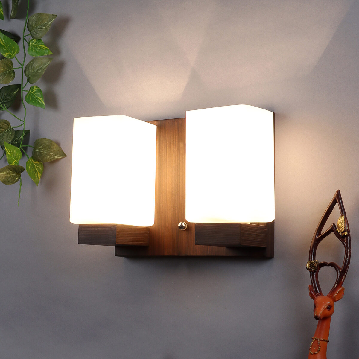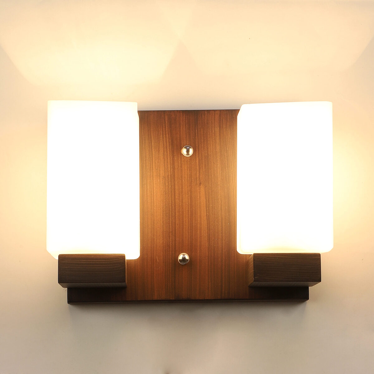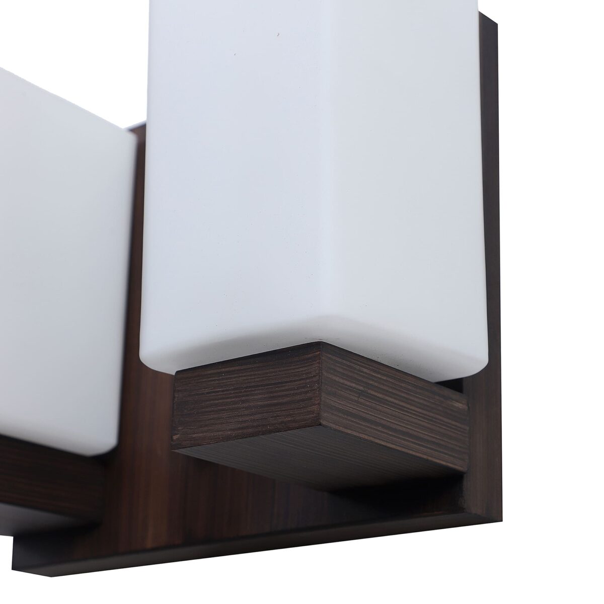Modern dark brown (wood) finish double wall light made of wood and mild steel, with square long white glasses. It is maintenance free, easy to remove glass and wash it, comes with an E27 holder, only the change of lamp is required, which is available locally everywhere. You can of course swap out the bulb for one that is dimmable, has a higher light output or a different color temperature. Application includes both residential and commercial premises wherever it matches with your interiors. Matching single wall light code – WL2331. It is one of the top selling product in our catalogue. Can be customized as per requirement in case of bulk quantities. Lamp not included.