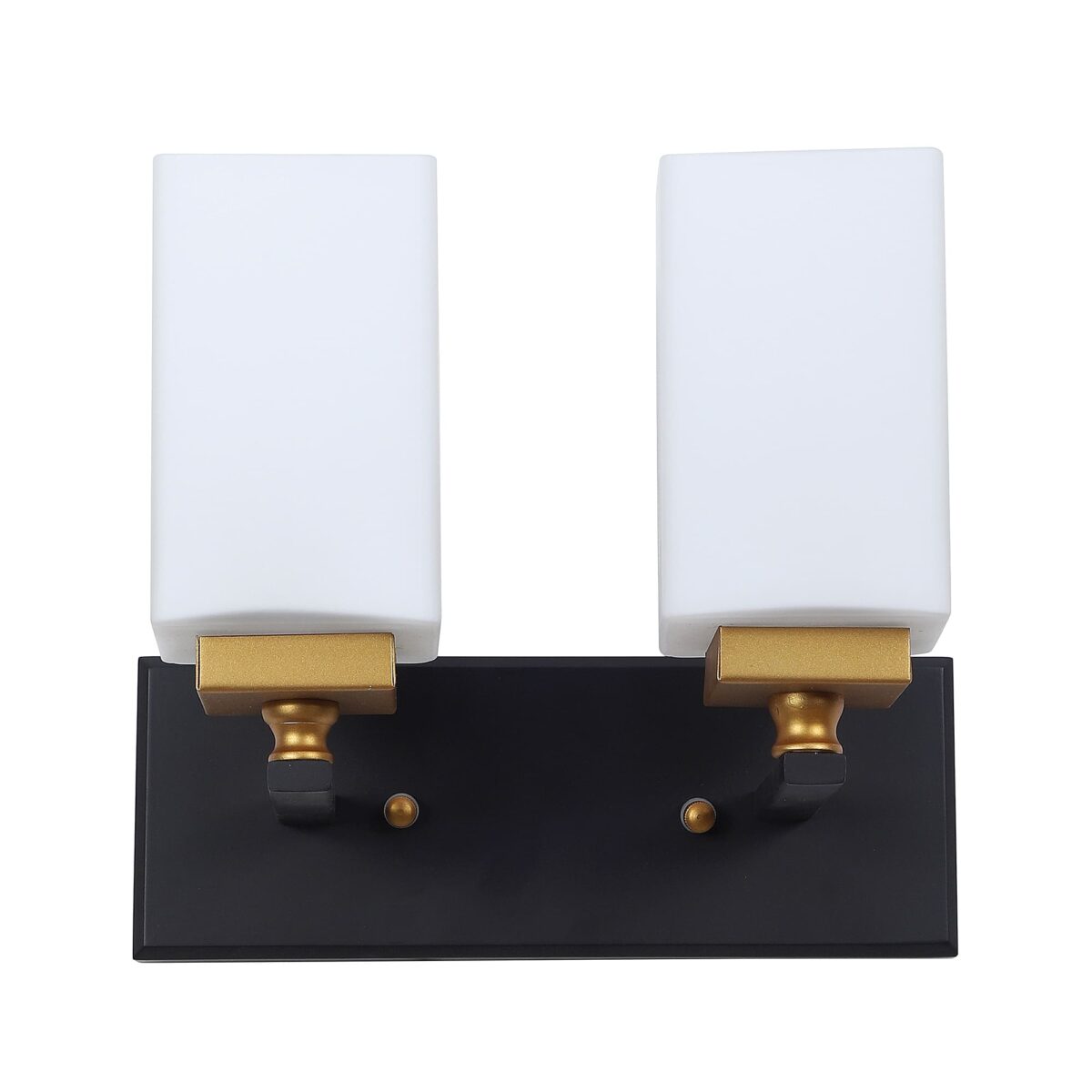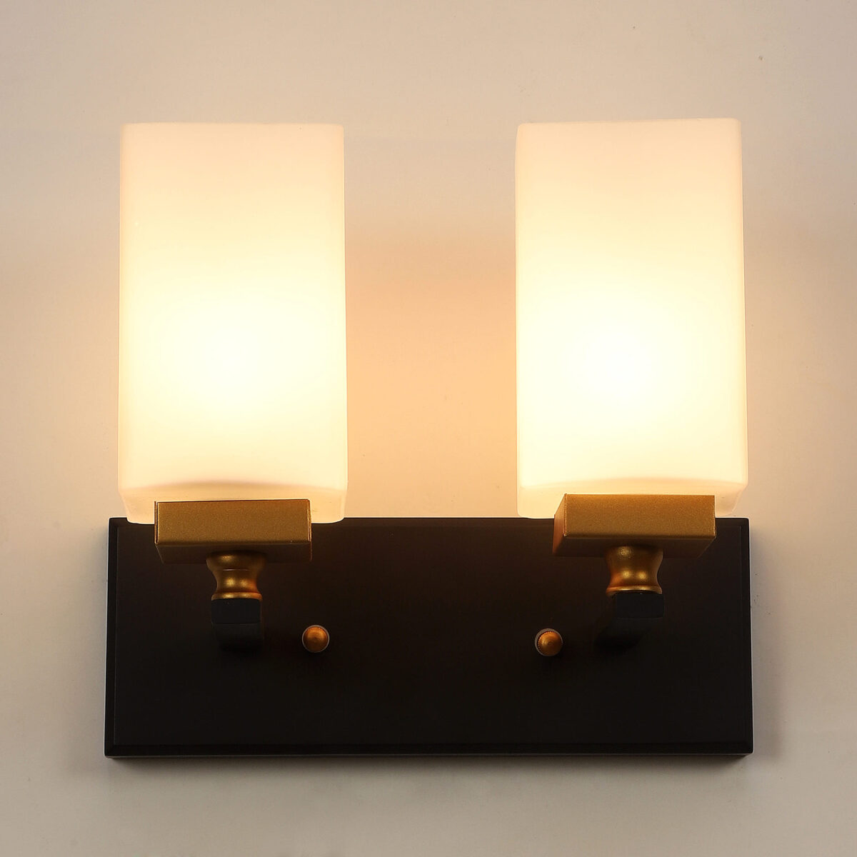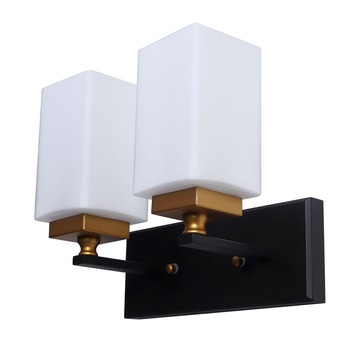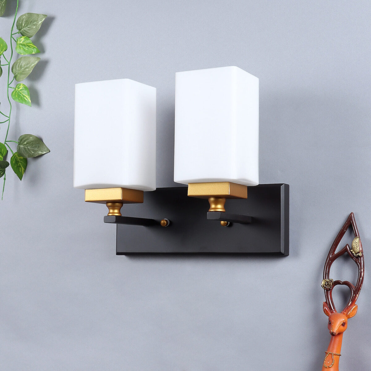 Modern dark brown, gold (wood – gold) finish double wall light made of wood and mild steel, with square long white glasses. It is maintenance free, easy to remove glass and wash it, comes with an E27 holder, only the change of lamp is required, which is available locally everywhere. You can of course swap out the bulb for one that is dimmable, has a higher light output or a different color temperature. Application includes both residential and commercial premises wherever it matches with your interiors. Matching single wall light code – WL2333. It is one of the top selling product in our catalogue. Can be customized as per requirement in case of bulk quantities. Lamp not included.