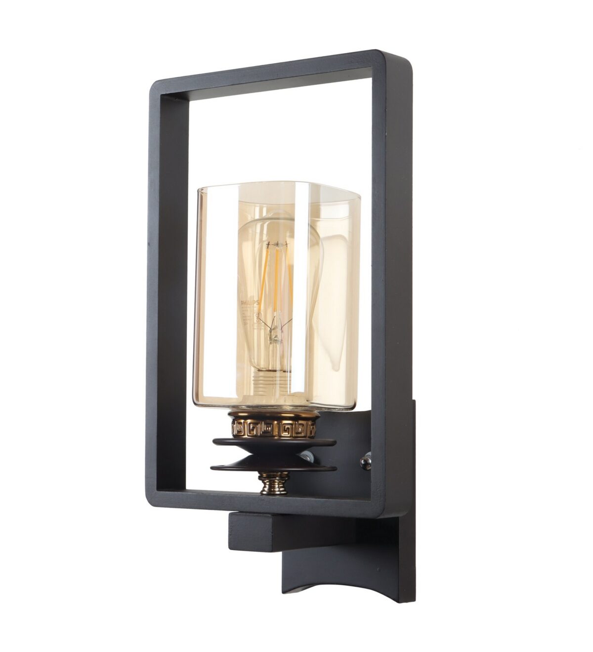 Wooden dark brown gold (wood gold) finish single wall light made of wood and mild steel, with square shaped Champaign colored glass. It is maintenance free, easy to remove glass and wash it, comes with an E27 holder, only the change of lamp is required, which is available locally everywhere. You can of course swap out the bulb for one that is dimmable, has a higher light output or a different color temperature.LED filament lamp is recommended to enhance its beauty. Matching Hanging Light code – HL6073-1.Application includes both residential and commercial premises wherever it matches with your interiors. Can be customized as per requirement in case of bulk quantities. LAMP NOT INCLUDED.