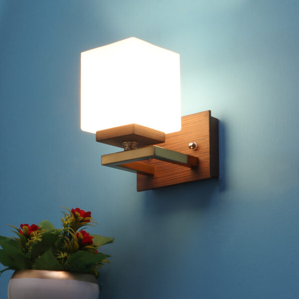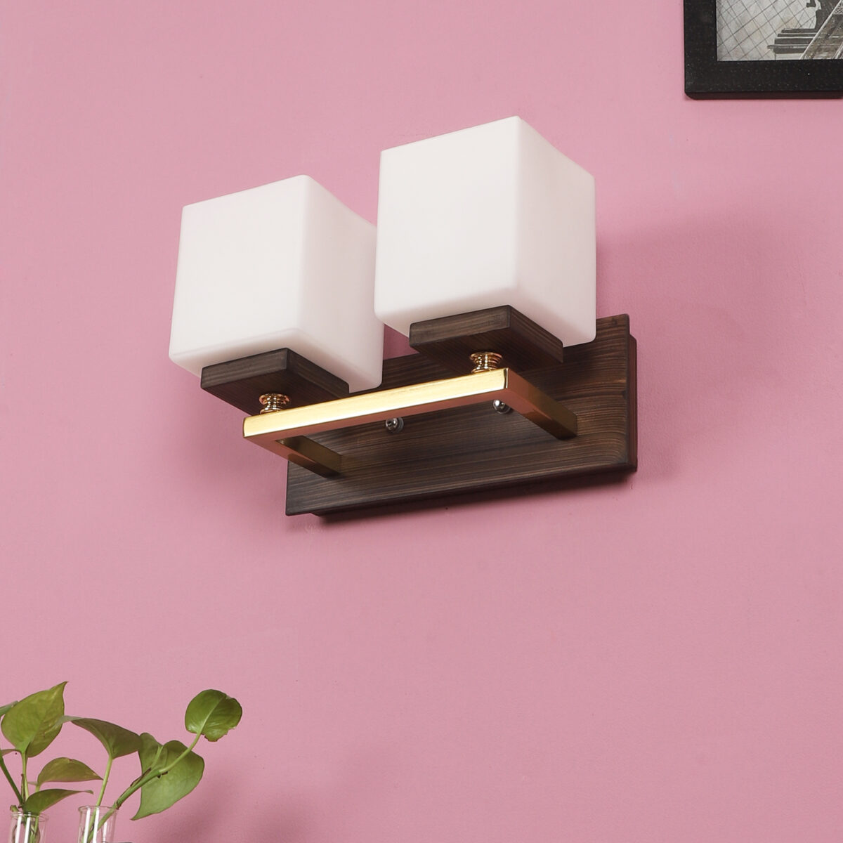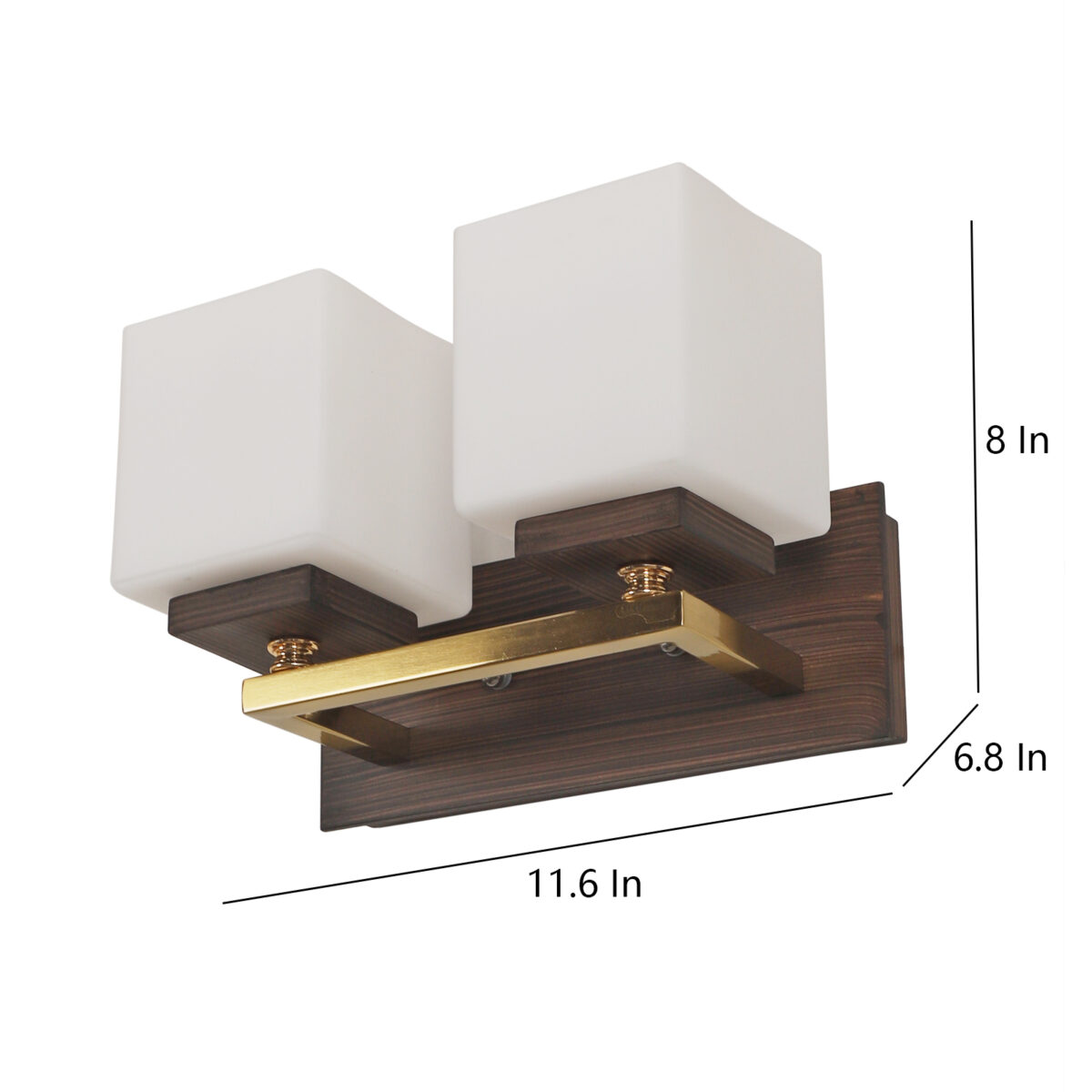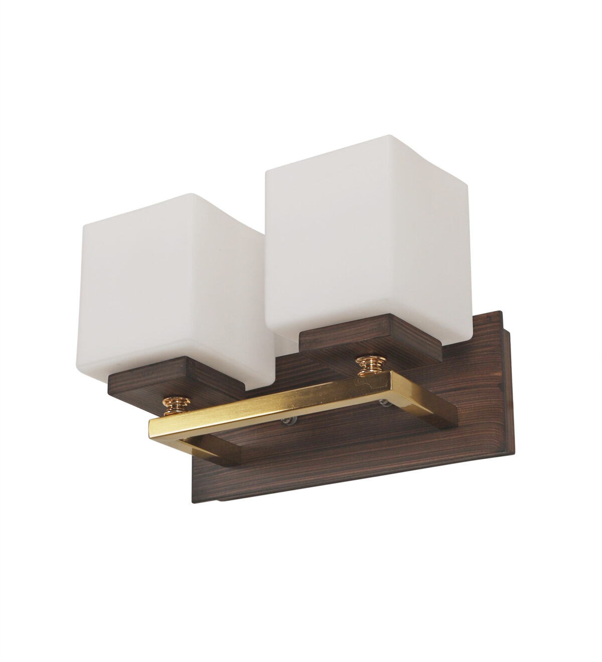 Modern dark brown (wood) finish double wall light made of wood, with square cubical white glasses. It is maintenance free, easy to remove glasses and wash them, comes with an E27 holder, only the change of lamp is required, which is available locally everywhere. You can of course swap out the bulb for one that is dimmable, has a higher light output or a different color temperature. Application includes both residential and commercial premises wherever it matches with your interiors.Can be customized as per requirement. LAMPS NOT INCLUDED.