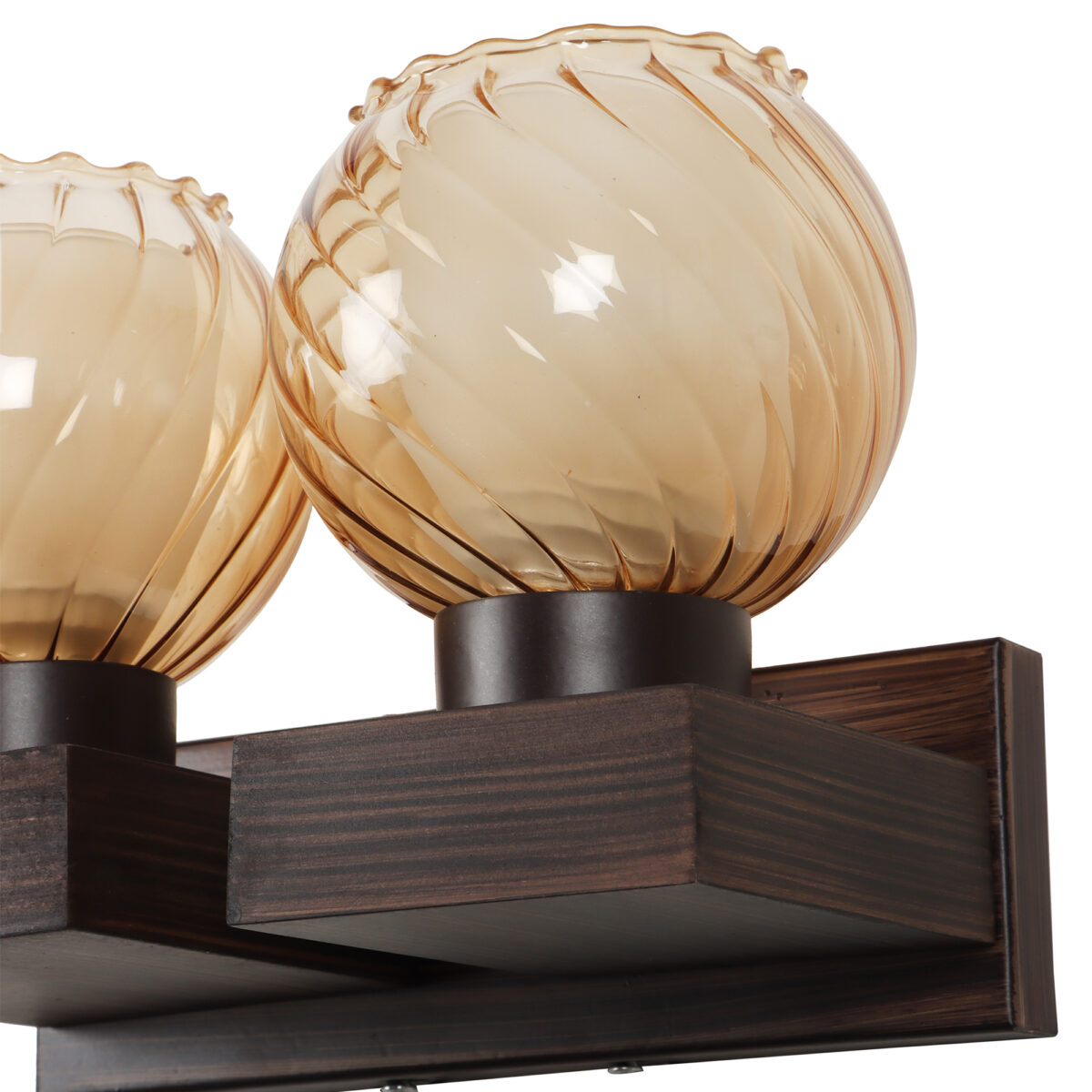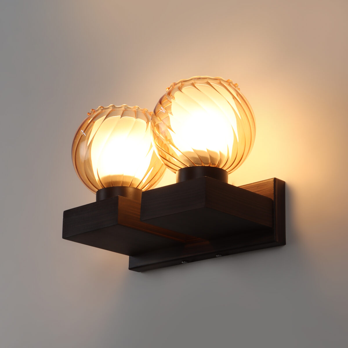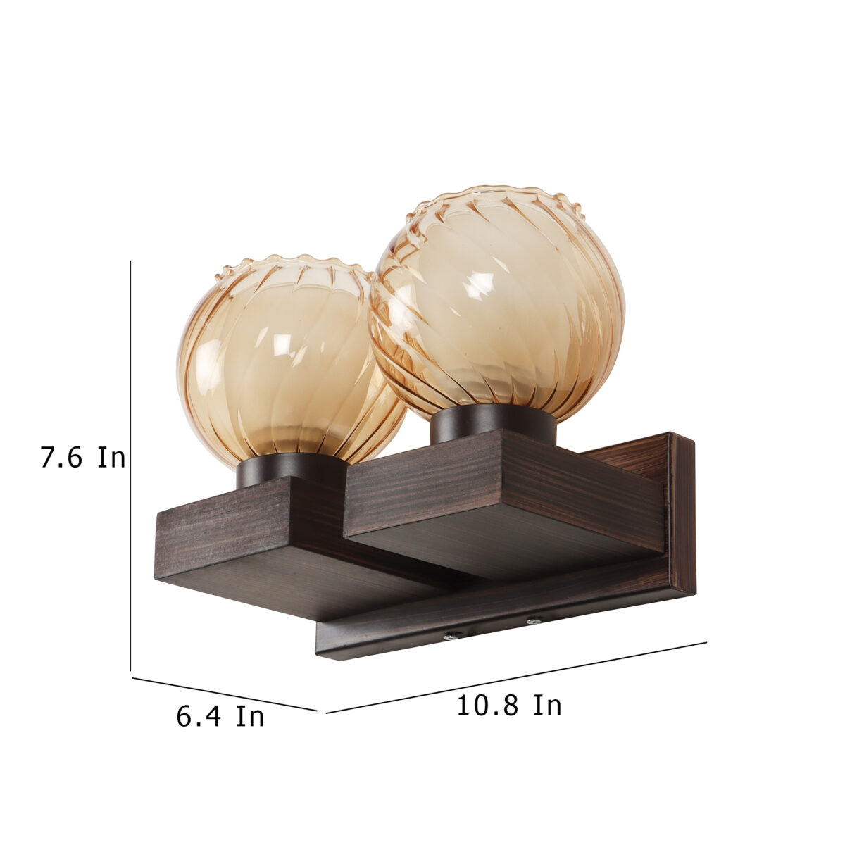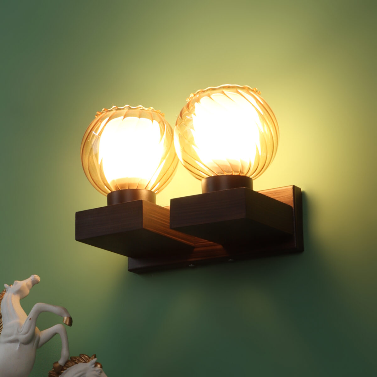 Brown wood finish, wooden double wall light with a champaign coloured round doom two layered glass shade. It is maintenance free, comes with an E27 holder, only the change of lamp is required, which is available locally everywhere. Application includes both residential and commercial premises wherever it matches with your interiors. Can be customized as per requirement. LAMPS NOT INCLUDED.
