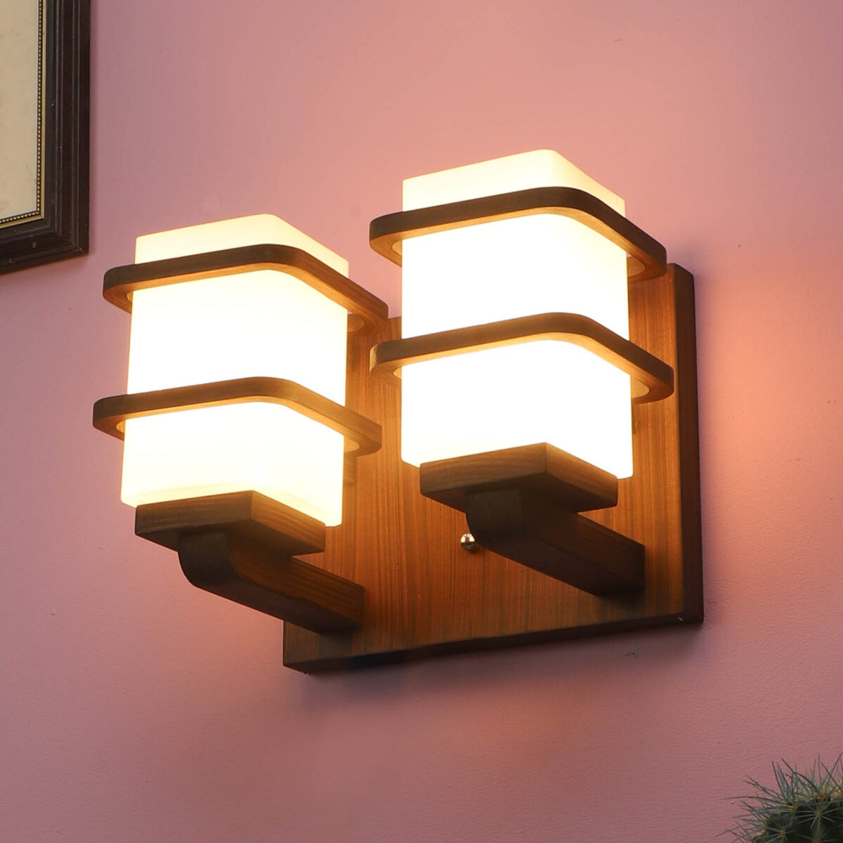 LEARC Designer Lighting Contemporary Glass Metal Wood Wall Light WL2965