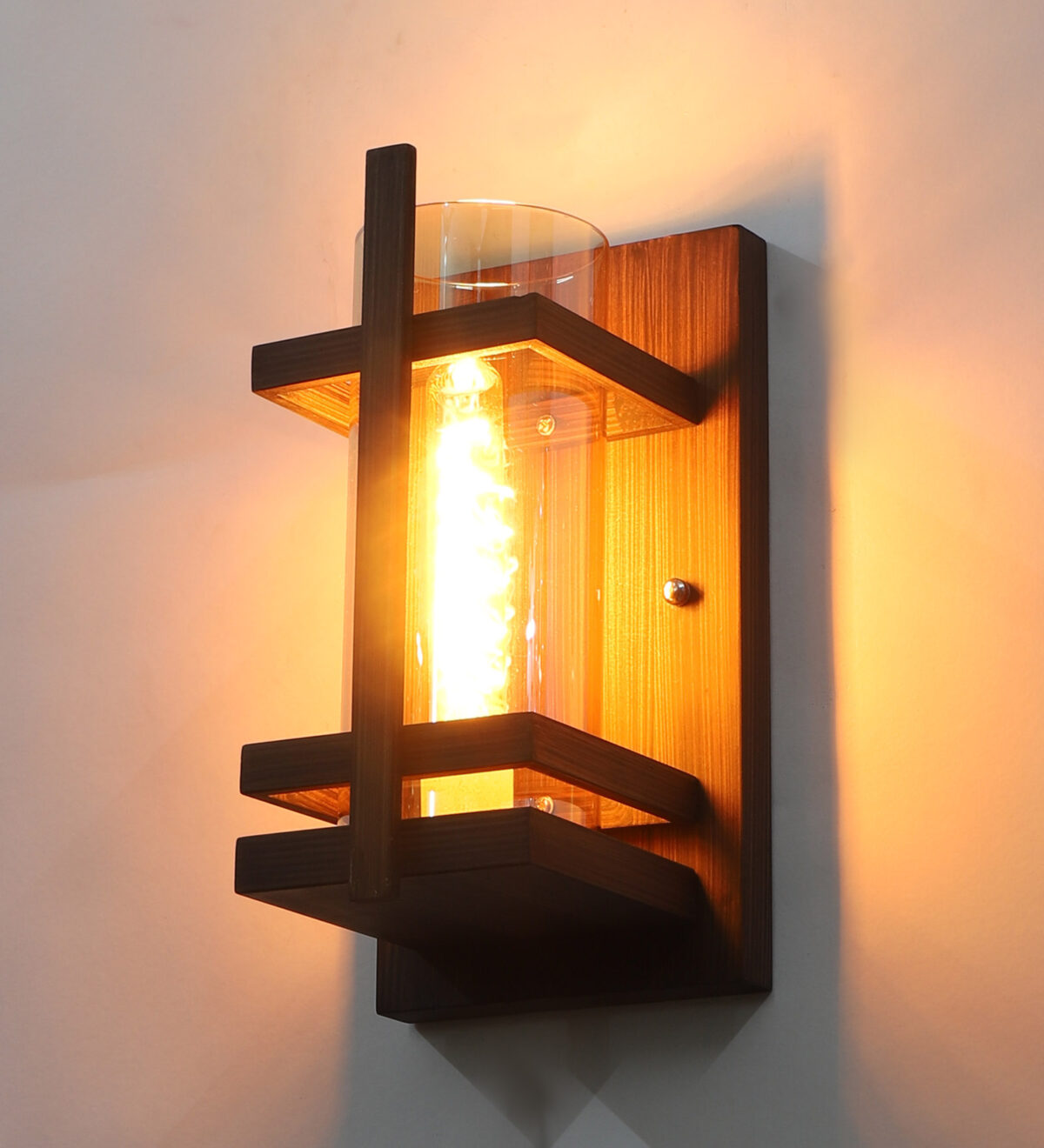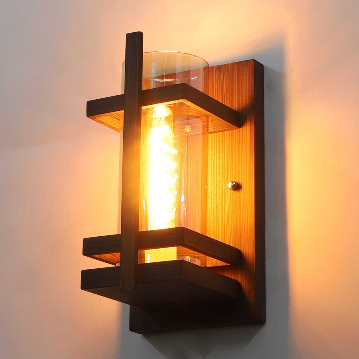 LEARC Designer Lighting Contemporary Glass Metal Wood Wall Light WL3066