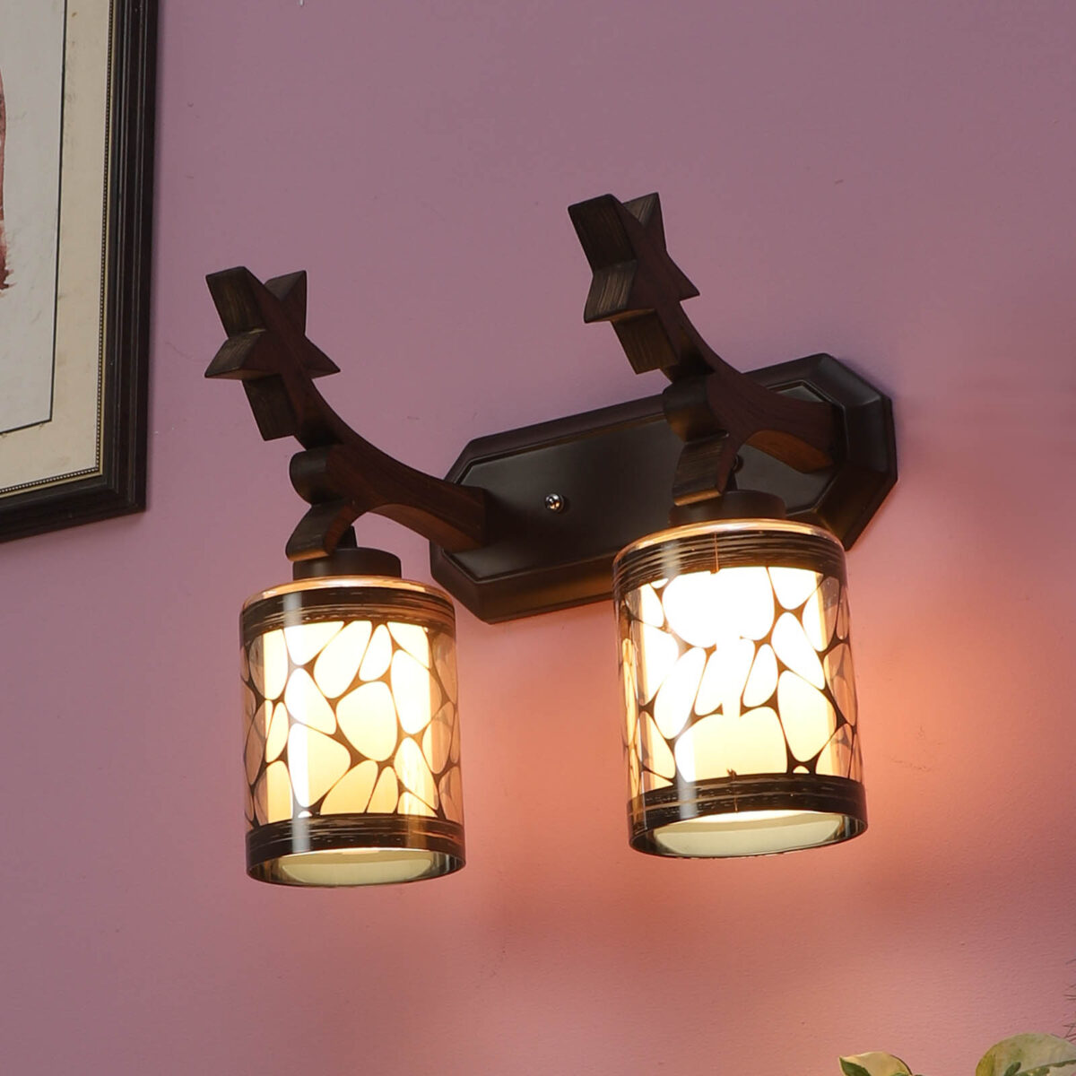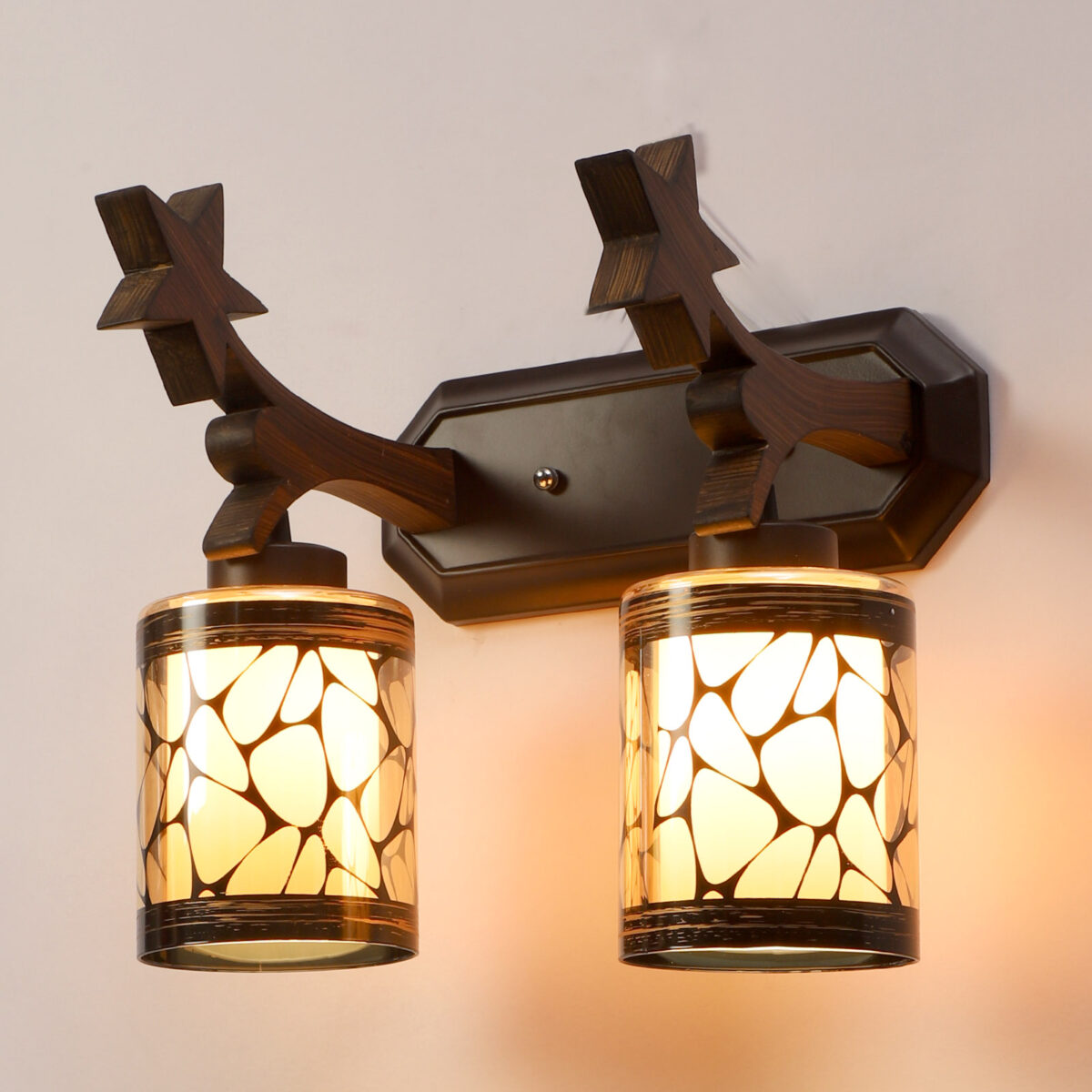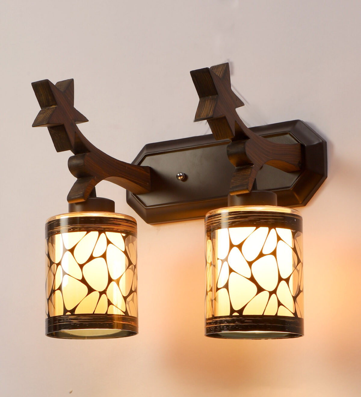 Dark brown finish double wall light. Can be customized as per requirement. LAMP NOT INCLUDED.