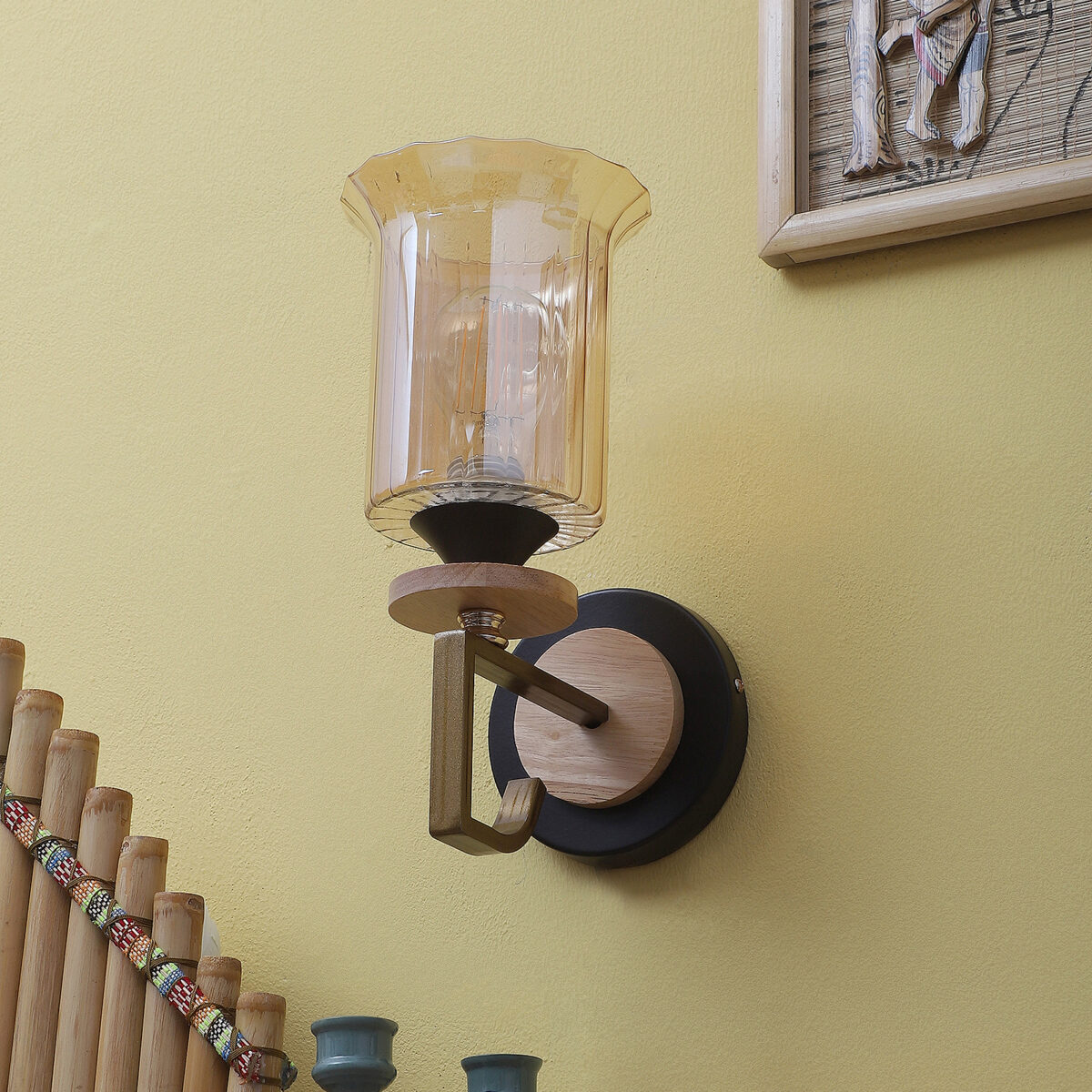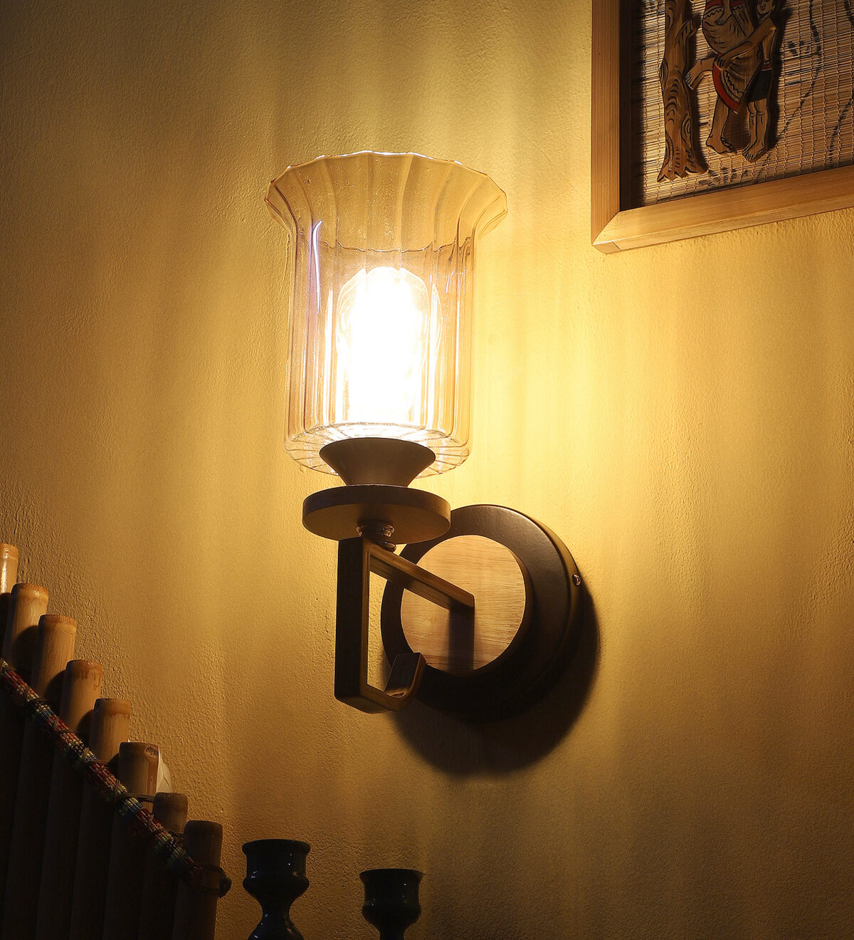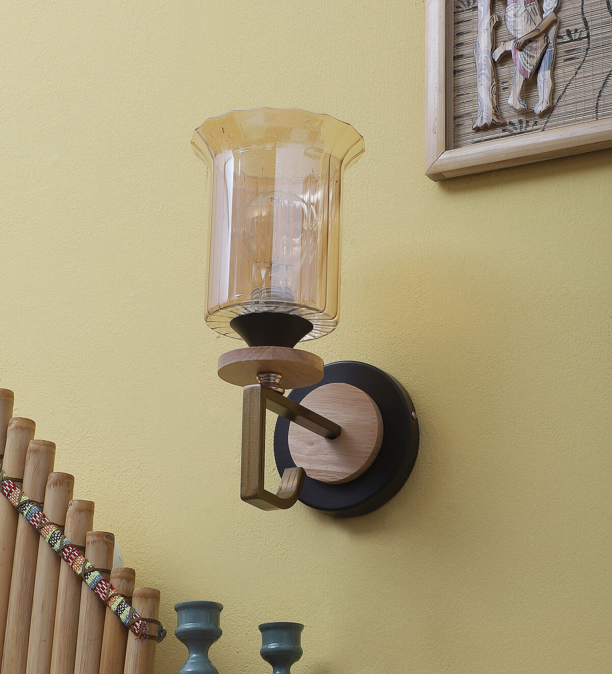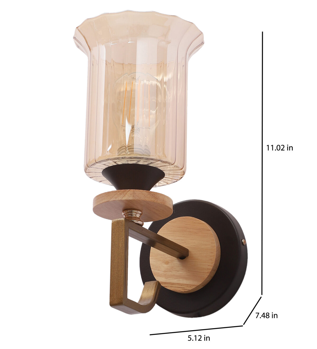 LEARC Designer Lighting Contemporary Glass Metal Wood Wall Light WL3174