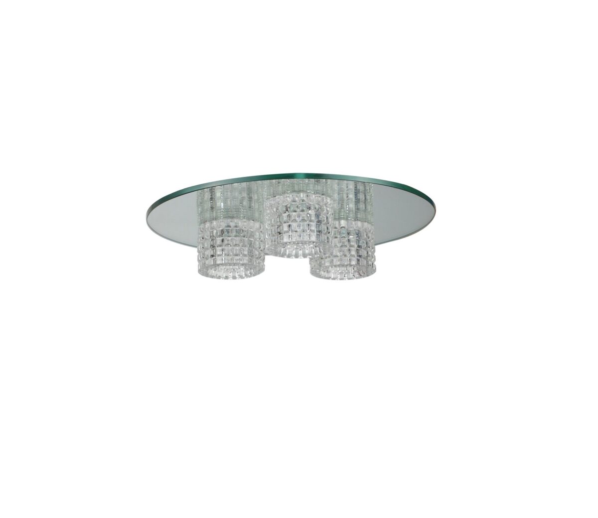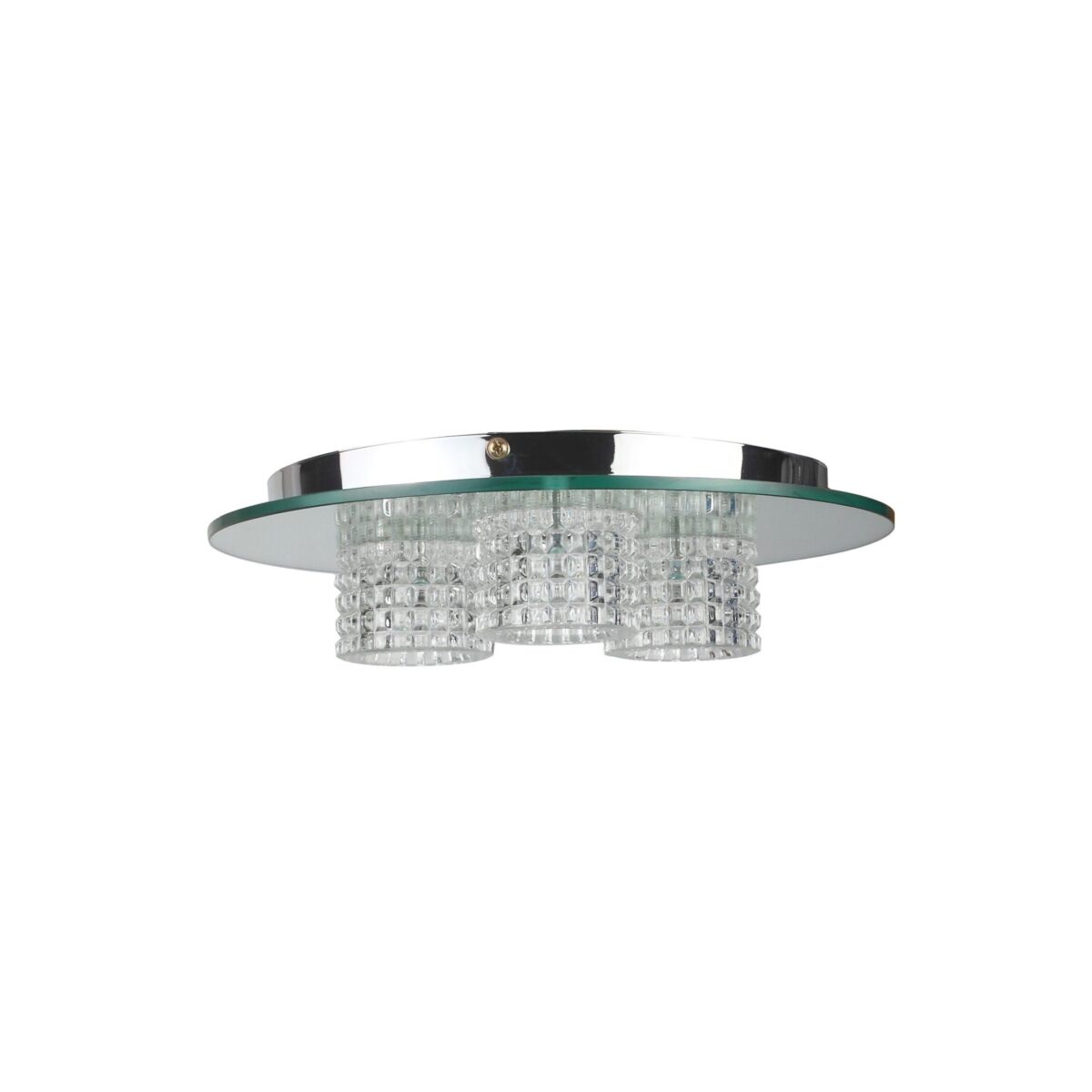 Ultra modern, premium, mild steel silver (chrome) finish, heavy crystal three glass mounted on a round plate made of glass. This is a fixed type ceiling in which the base plate is fixed to the ceiling with the help of straight clamp and screws. Comes with an G4 holder and inbuilt transformer. Matching variants in ceiling light – CL441, CL446, CH383. Matching wall light – ML302-1, ML302-2, ML302-3 LAMP INCLUDED.