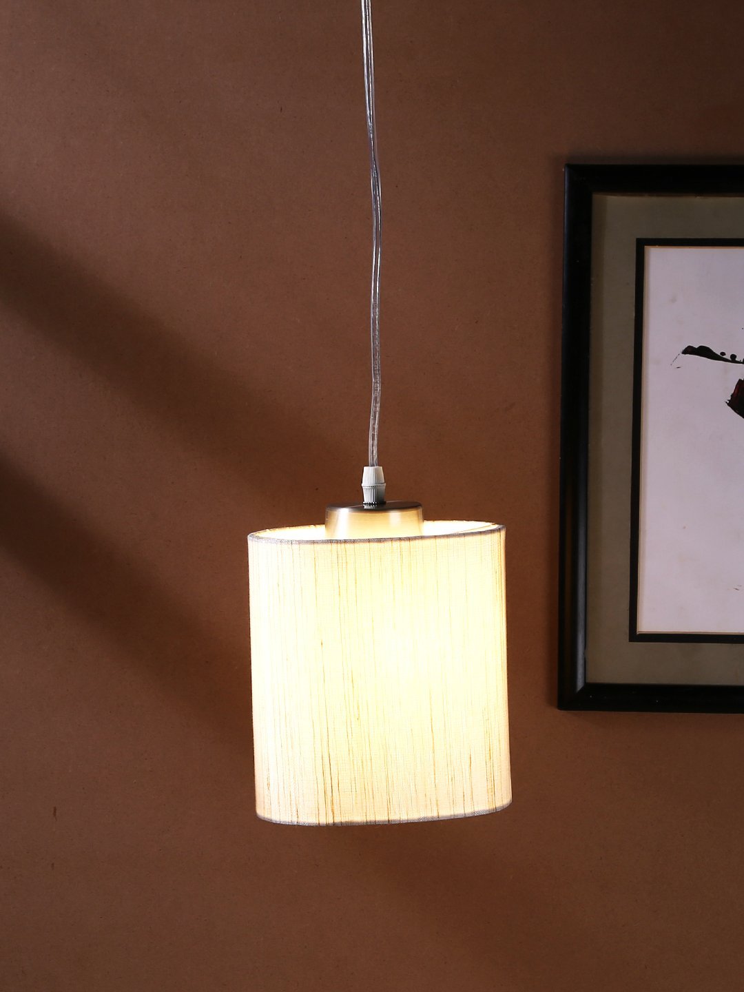 Off white single hanging light with oval long fabric shade and mild steel attachment in silver (satin nickel) finish. The suspension can be adjusted at time of installation to the desired height. It is maintenance free, comes with an e27 holder, only the change of lamp is required, which is available locally everywhere. Application includes both residential and commercial premises wherever it matches with your interiors. Other variations with different color – hl3732, hl3734. Can be customized as per requirement in case of bulk quantities. Lamp not included.