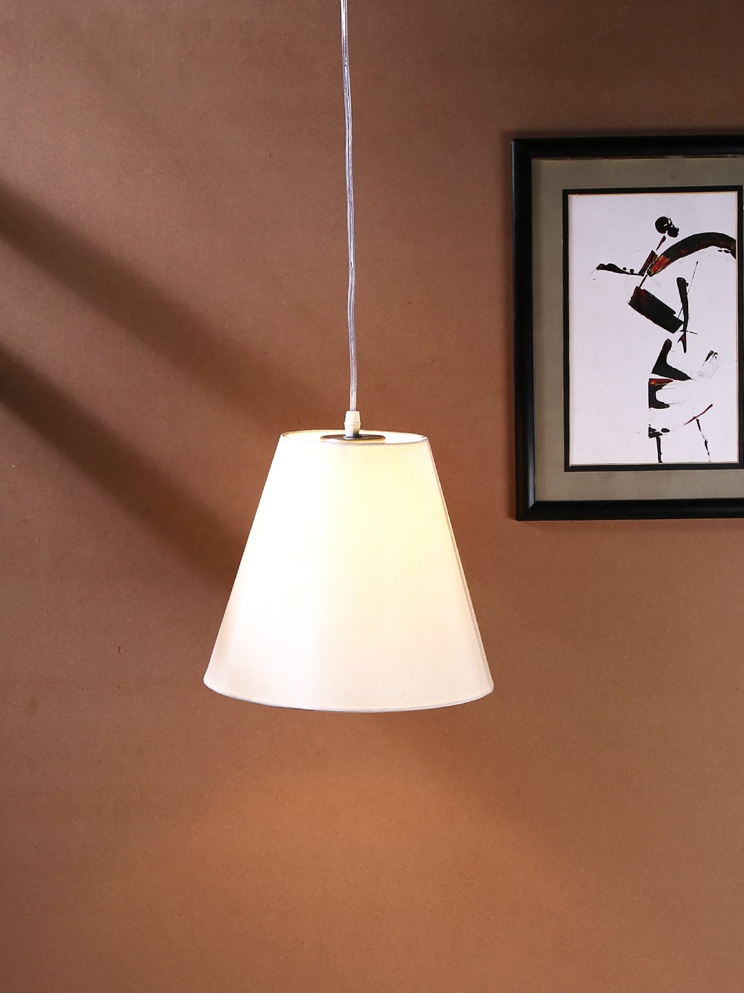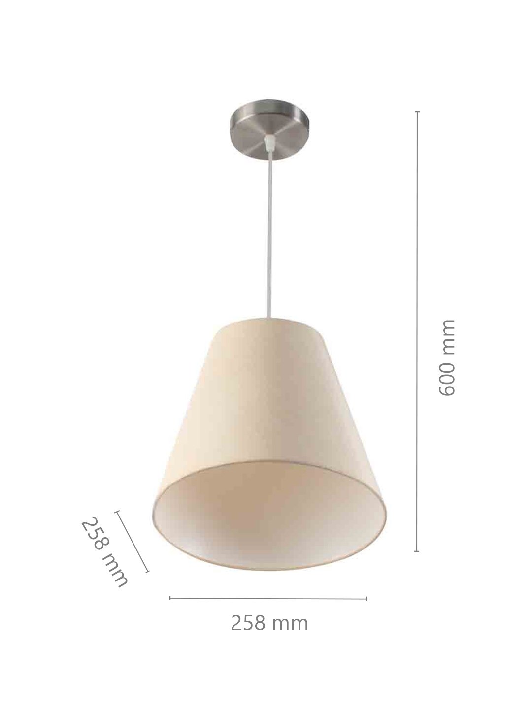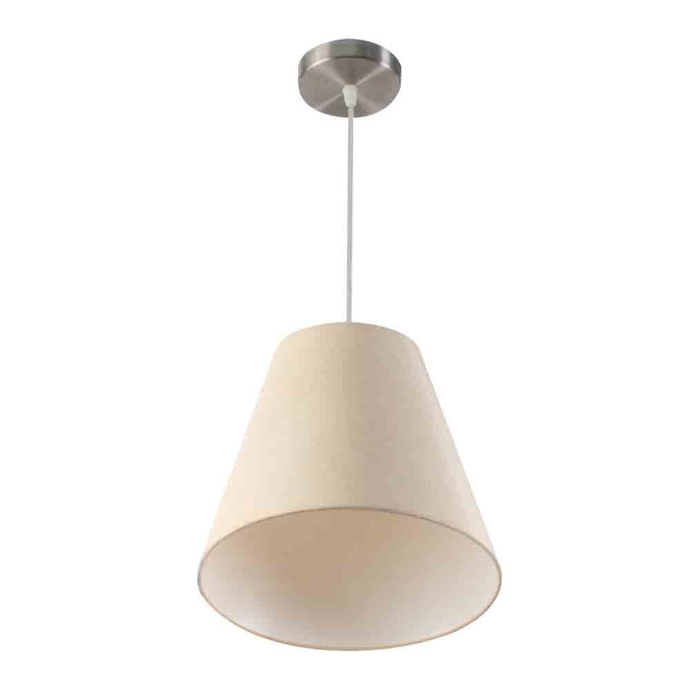 Cream (off-white) hanging light with big conical fabric shade and mild steel attachment in Silver (satin nickel) finish. The suspension can be adjusted at time of installation to the desired height. It is maintenance free, comes with an E27 holder, only the change of lamp is required, which is available locally everywhere. Application includes both residential and commercial premises wherever it matches with your interiors. Also available in dark brown (coffee) color with code HL3749. Can be customized as per requirement in case of bulk quantities. Lamp not included.