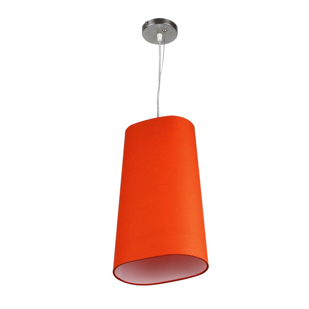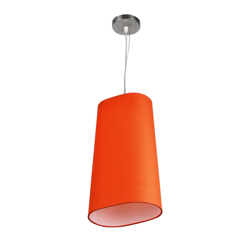 Orange hanging light with oval long fabric shade and mild steel attachment in Silver (satin nickel) finish. The suspension can be adjusted at time of installation to the desired height. Extremely good for hotel rooms when installed with matching wall light. It is maintenance free, comes with an E27 holder, only the change of lamp is required, which is available locally everywhere. Application includes both residential and commercial premises wherever it matches with your interiors. Other variations with different color – HL5067, HL5068, HL5069, HL5070, HL5071, HL5072. Matching wall lights – WL2415, WL2416, WL2417, WL2418, WL2419, WL2420. Can be customized as per requirement in case of bulk quantities. Lamp not included.