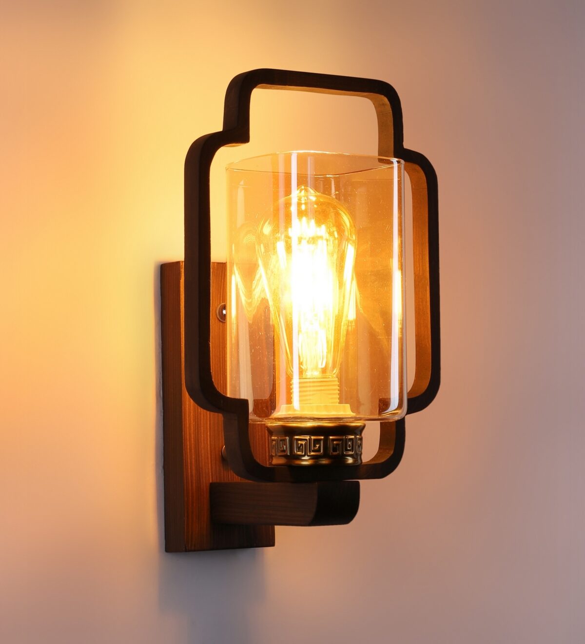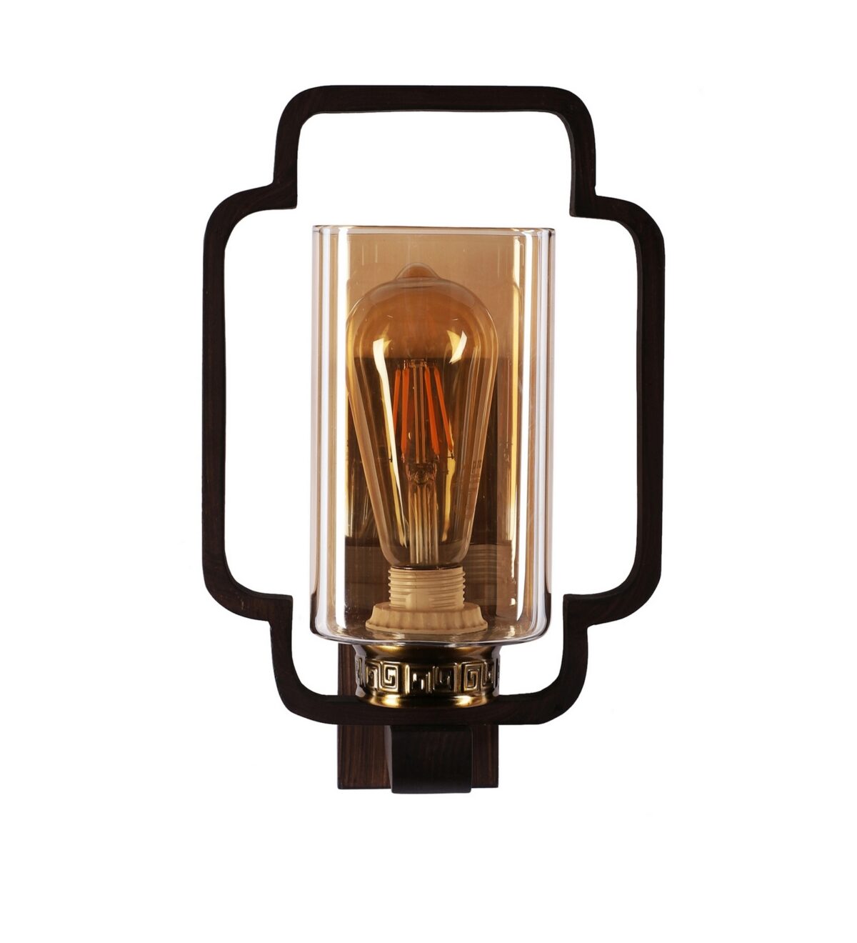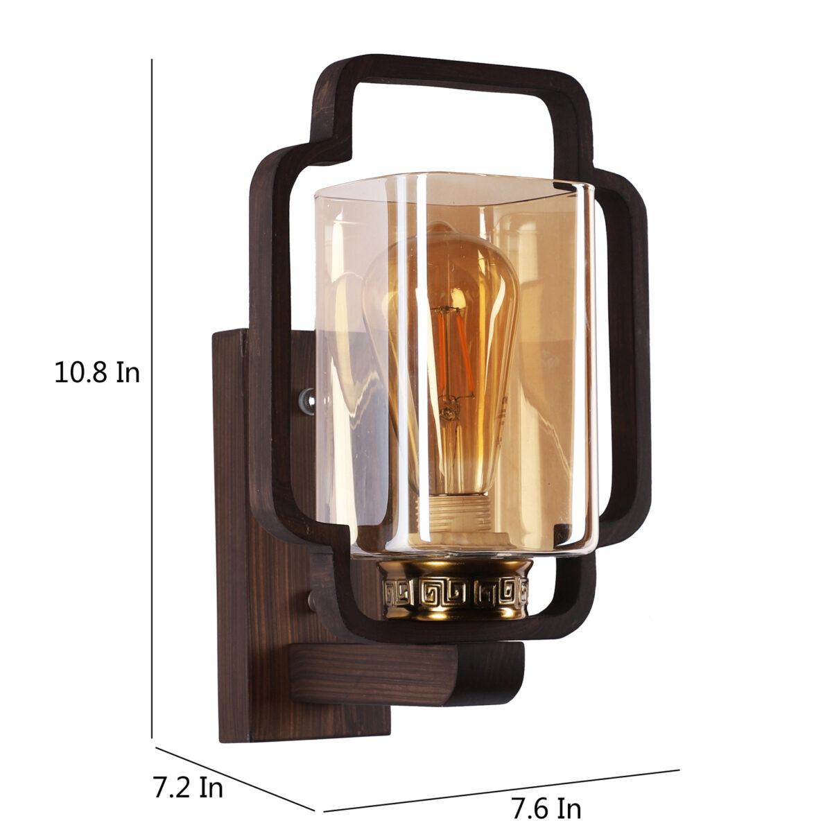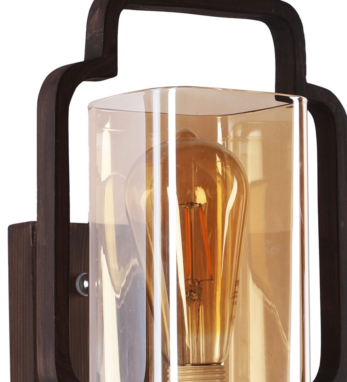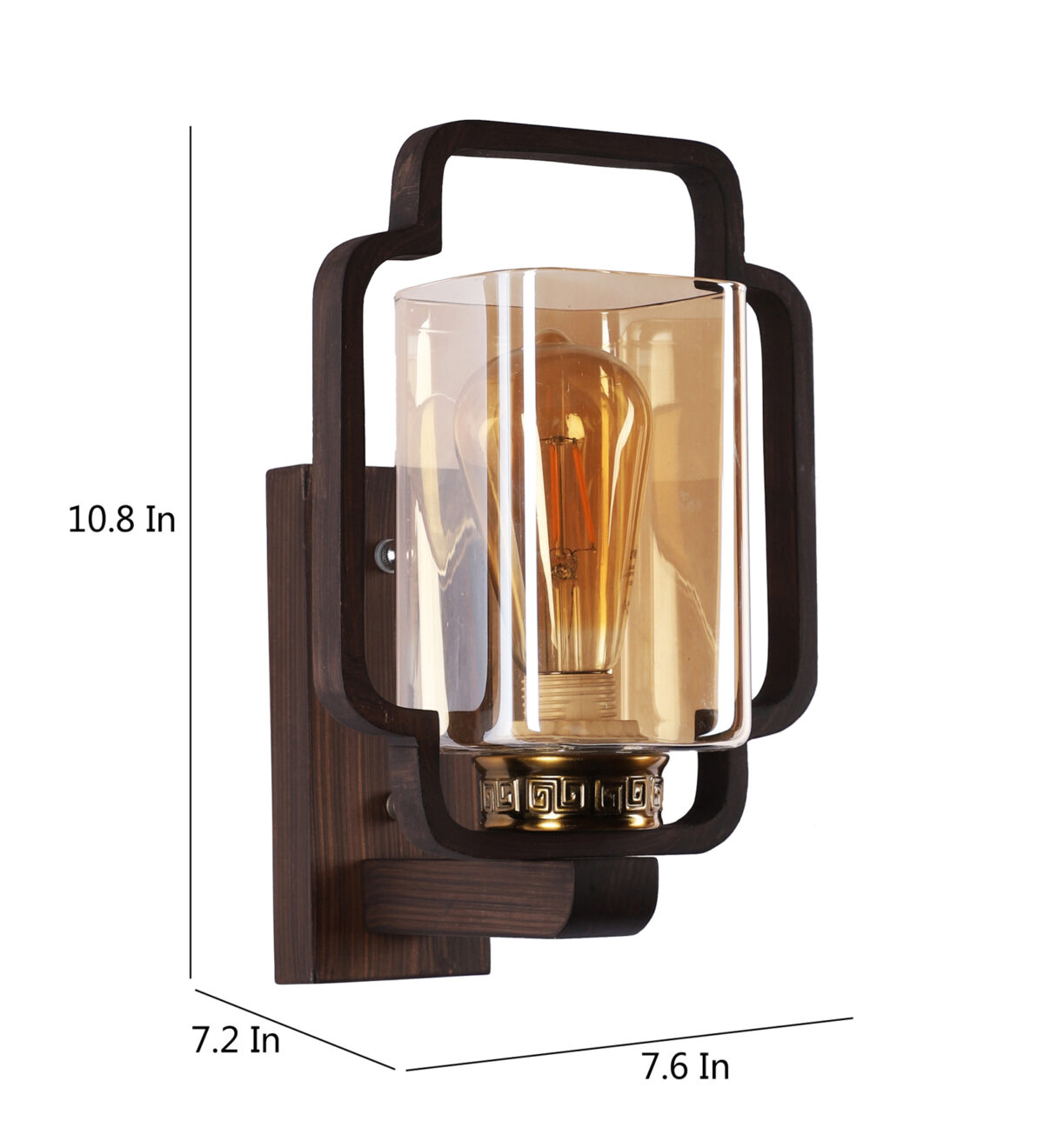 Wooden dark brown gold (wood gold) finish single wall light made of wood and mild steel, with square shaped Champaign colored glass. It is maintenance free, easy to remove glass and wash it, comes with an E27 holder, only the change of lamp is required, which is available locally everywhere. You can of course swap out the bulb for one that is dimmable, has a higher light output or a different color temperature. Application includes both residential and commercial premises wherever it matches with your interiors. Can be customized as per requirement in case of bulk quantities. LAMP NOT INCLUDED.