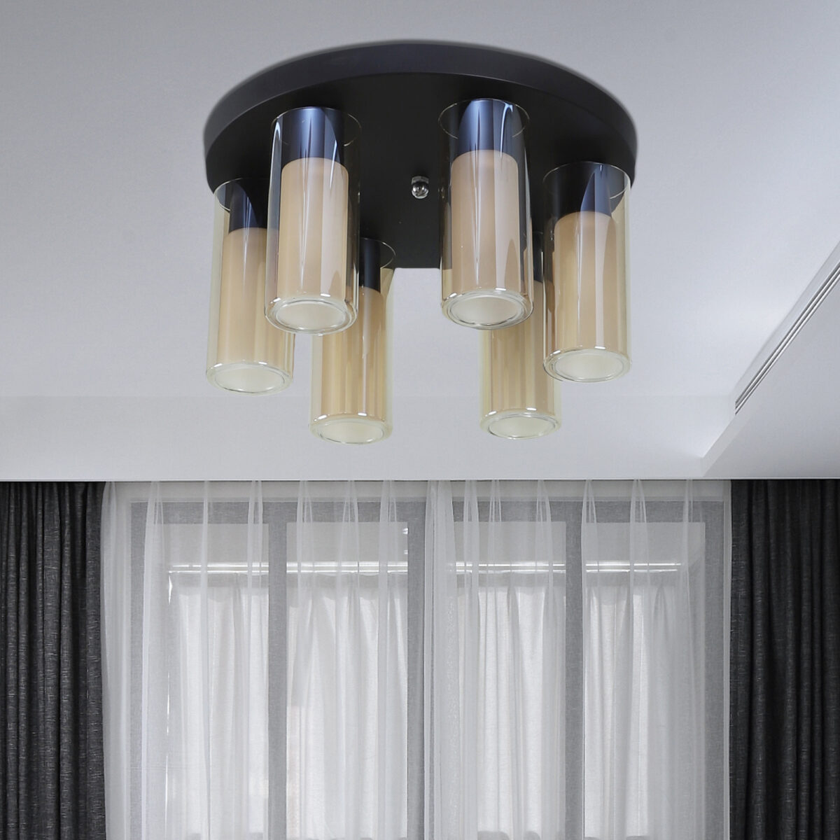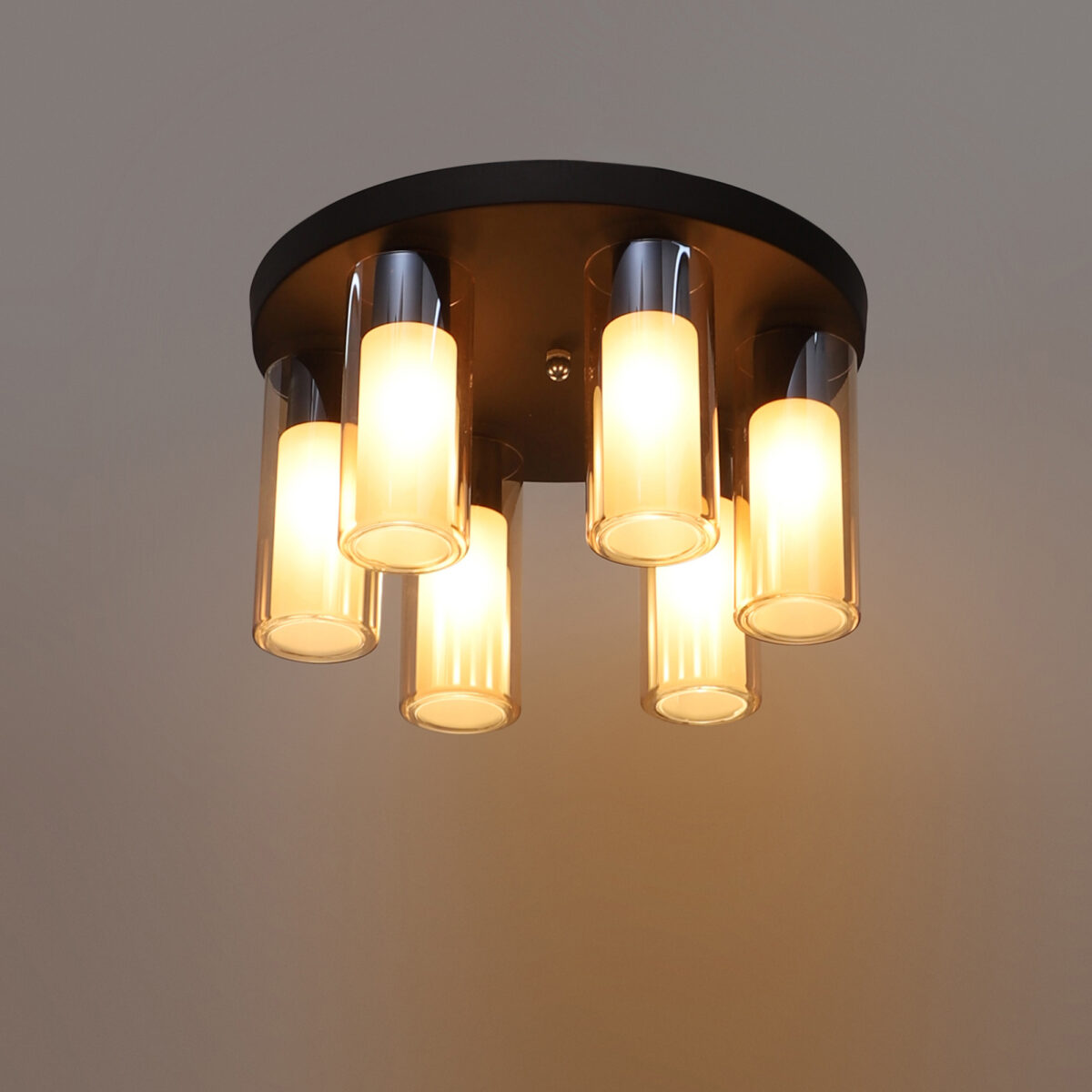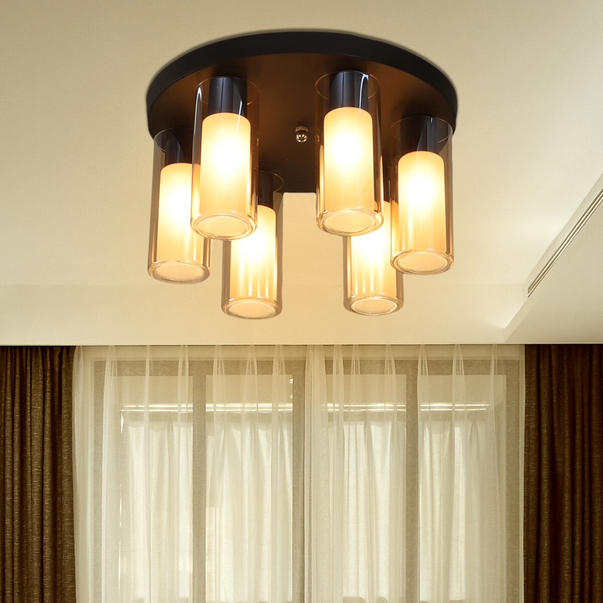 Dark brown (wood) finish, sleek, cylindrical champagne coloured glass mounted on a round plate made of mild steel having ten lights. This is a fixed type chandelier in which the base plate is fixed to the ceiling with the help of straight clamp and screws. It is maintenance free, easy to remove glass and wash them, comes with an E14 holder, only the change of lamp is required, which is available locally everywhere. Application includes both residential and commercial premises wherever it matches with your interiors. Matching chandelier variations – CH353-10, CH353-3. Matching hanging variations – HL3980-1, HL3980-3, HL3980-6, HL3980-10. Matching wall light code WL2211, WL2212. All designs available in silver (chrome) finish also. Can be customized as per requirement in case of bulk quantities. This along with its variants are the best selling products in our catalogue. LAMP NOT INCLUDED.