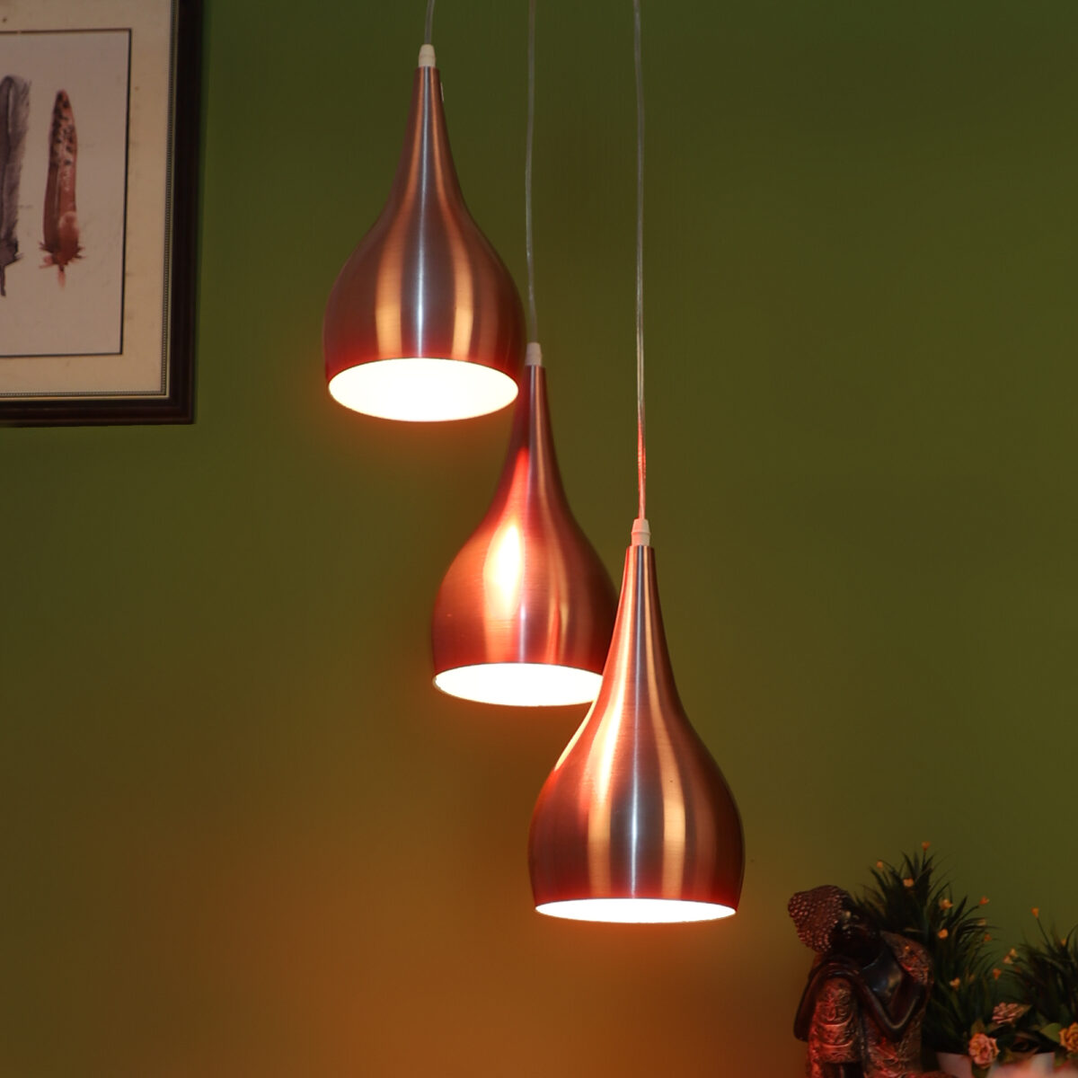 Copper – orange finish modern aluminum cluster hanging light having three lamps. The suspension can be adjusted at time of installation to the desired height. It is maintenance free, comes with an E27 holder, only the change of lamp is required, which is available locally everywhere. This along with its variants are one of the best selling design in our catalogue. Application includes both residential and commercial premises wherever it matches with your interiors. Codes of other hanging variation in same design – HL3923-1, HL3924-1, HL3924-3, HL3925-1, HL3925-3, HL3926-1, HL3926-3, HL3927-1, HL3927-3, HL3928-1, HL3928-3, HL3946-1, HL3947-1, HL3949-1, HL3949-3, HL4104. Can be customized as per requirement in case of bulk quantities. Lamp not included.