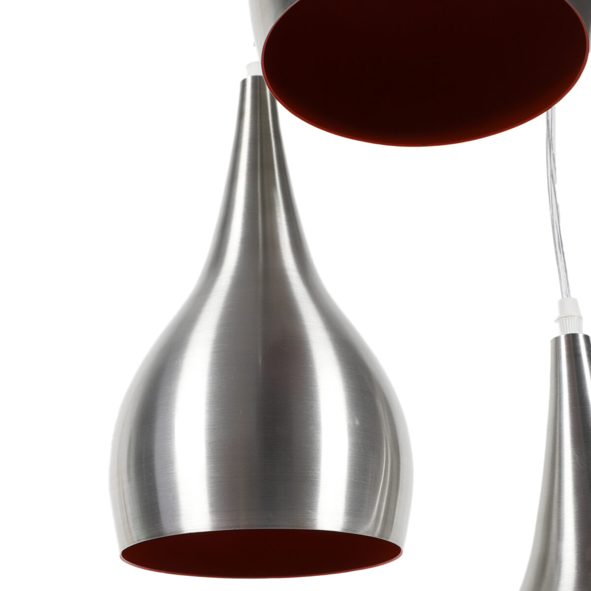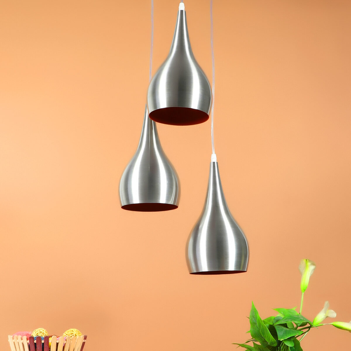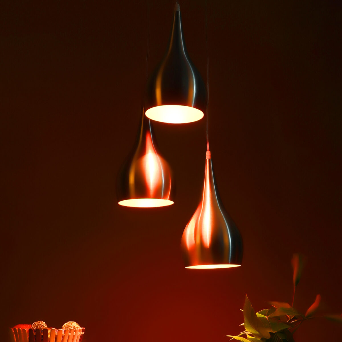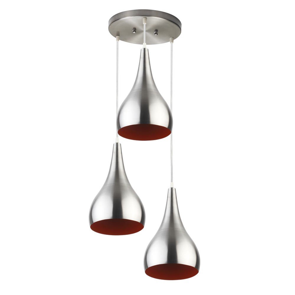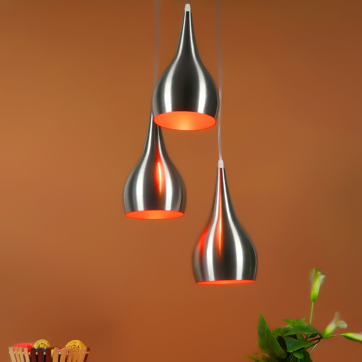 Silver (satin nickel) – orange finish modern aluminum cluster hanging light having three lamps. The suspension can be adjusted at time of installation to the desired height. It is maintenance free, comes with an E27 holder, only the change of lamp is required, which is available locally everywhere. This along with its variants are one of the best selling design in our catalogue. Application includes both residential and commercial premises wherever it matches with your interiors. Codes of other hanging variation in same design – HL3923-1, HL3923-3, HL3924-1, HL3924-3, HL3925-1, HL3925-3, HL3926-1, HL3926-3, HL3927-1, HL3928-1, HL3928-3, HL3946-1, HL3947-1, HL3949-1, HL3949-3, HL4104. Can be customized as per requirement in case of bulk quantities. Lamp not included.