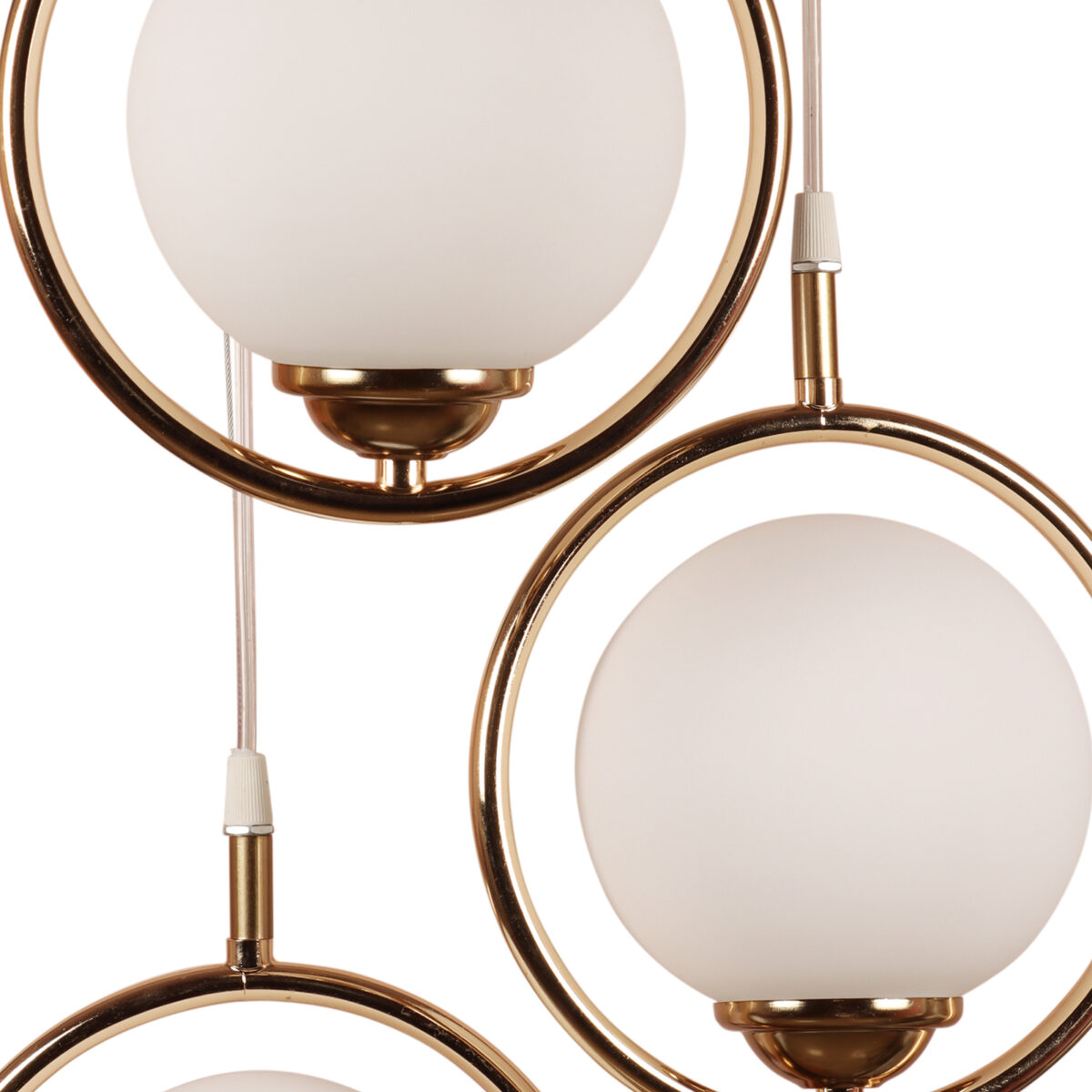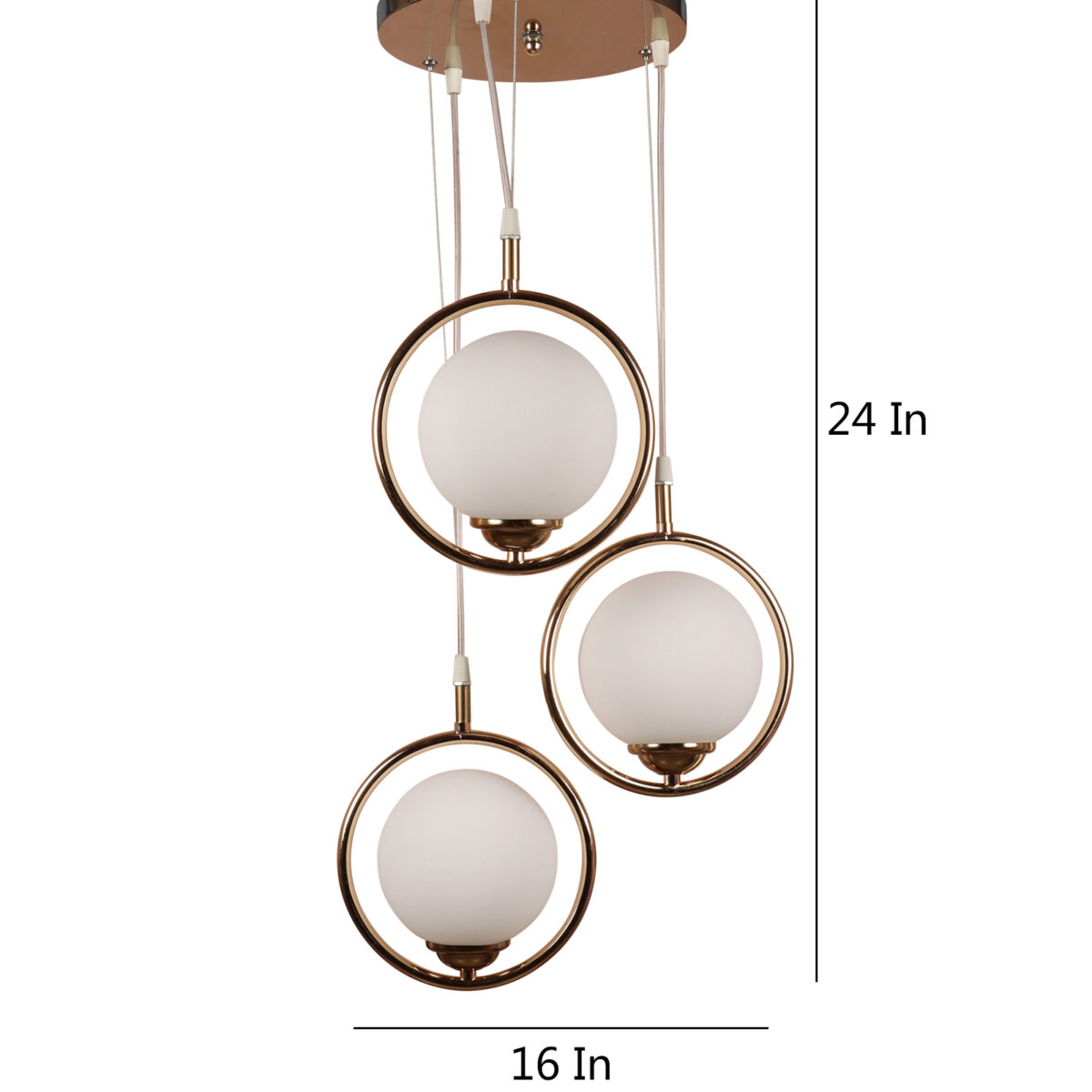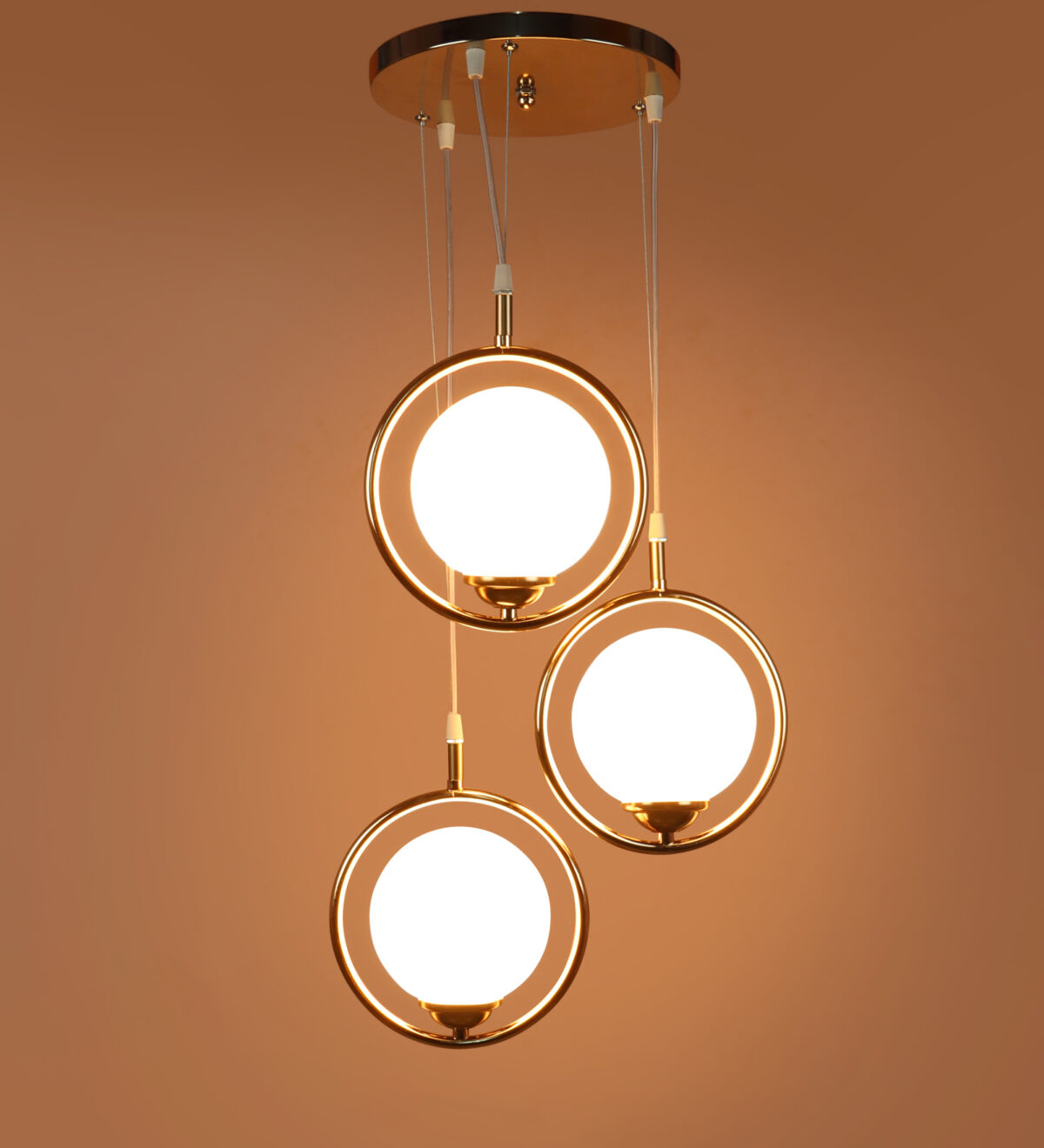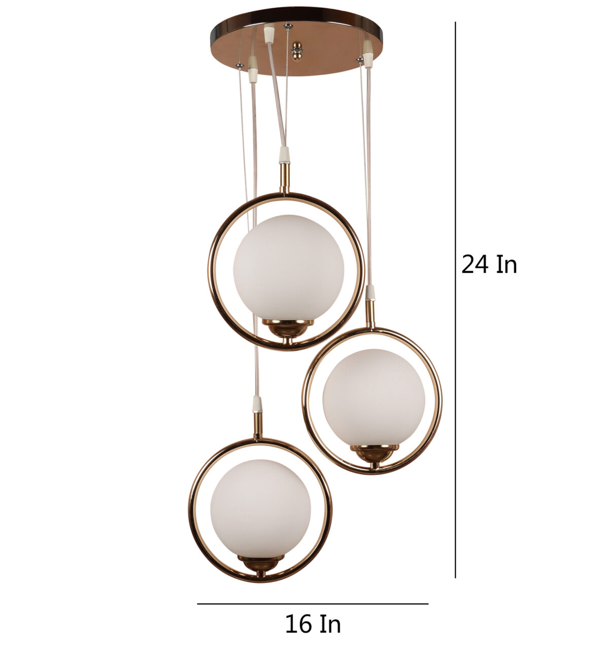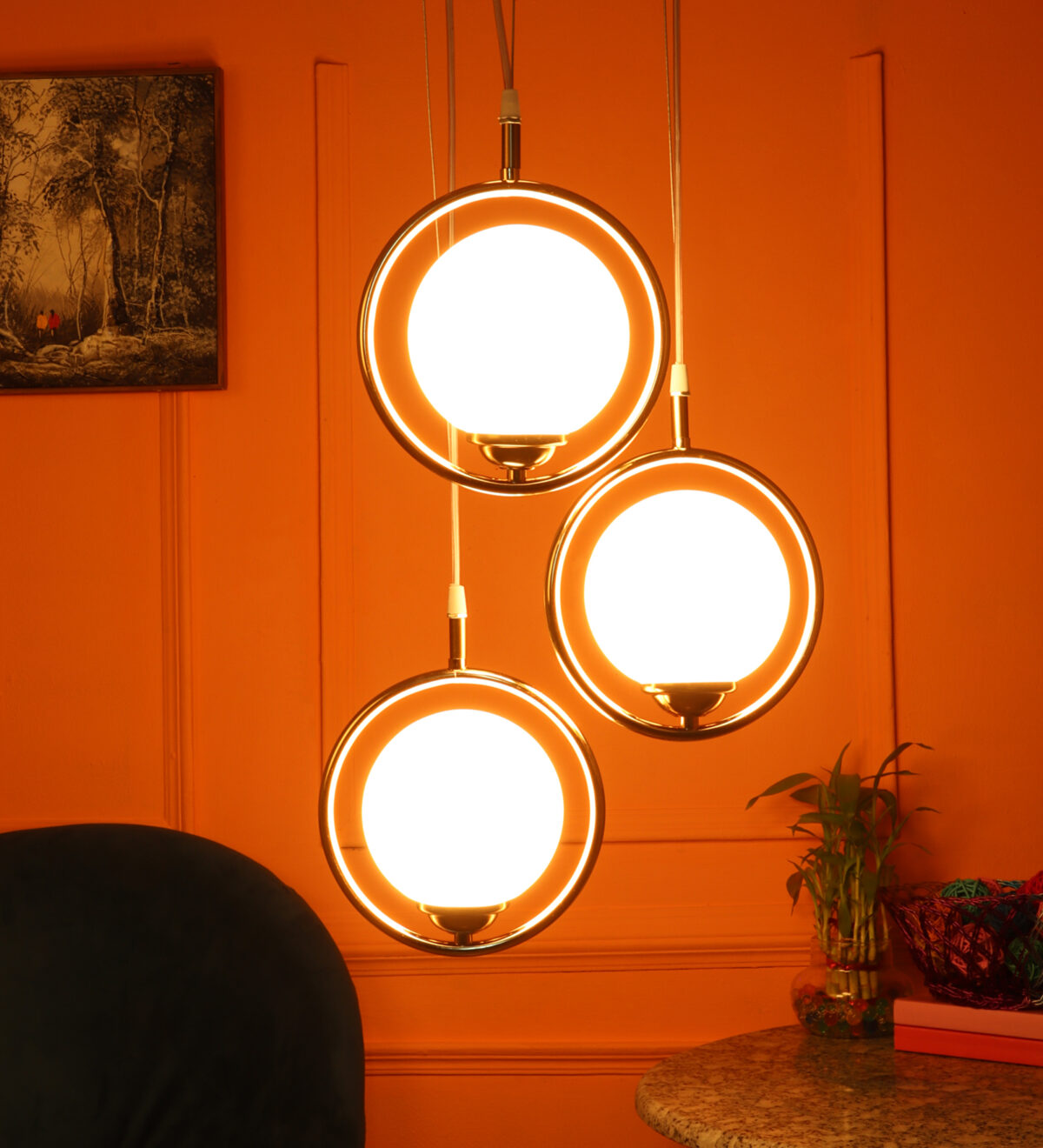 Gold modern mild steel triple hanging light in white doom glass. The suspension can be adjusted at time of installation to the desired height. It is maintenance free, comes with an E27 holder, only the change of lamp is required, which is available locally everywhere. Matching single hanging code – HL6077-1. Application includes both residential and commercial premises wherever it matches with your interiors. Can be customized as per requirement in case of bulk quantities. Lamp not included.