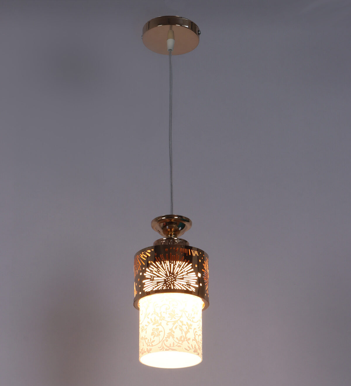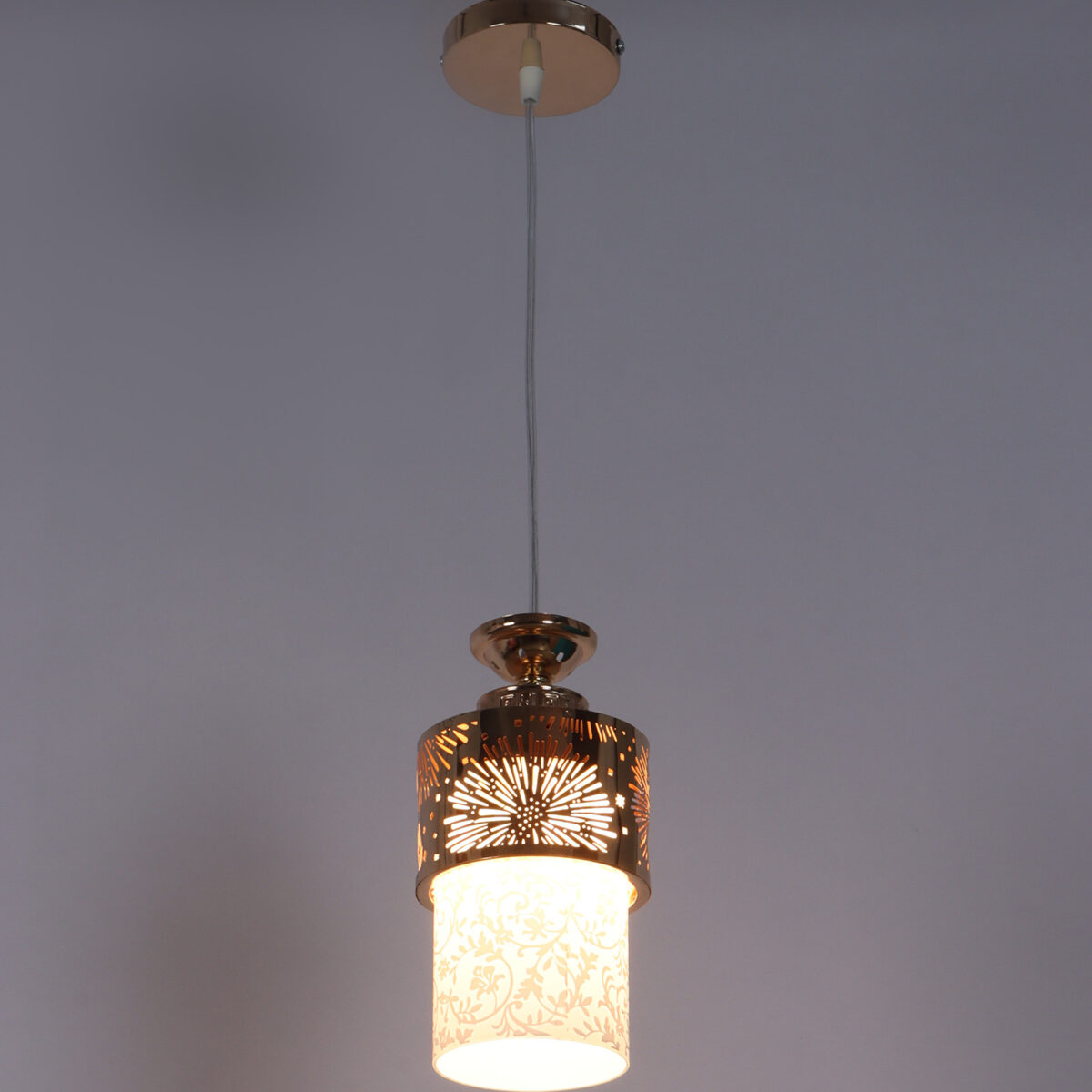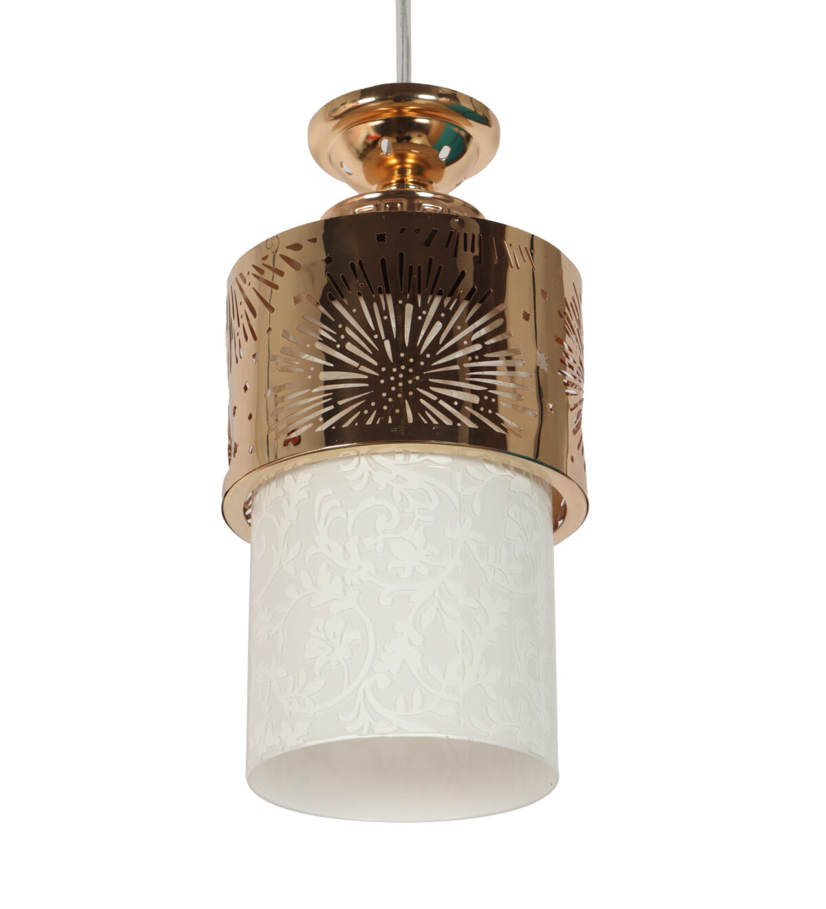 Gold finish single hanging light. Can be customised as per requirement in terms height, finish. Also availble in clusters of multiple quantity. LAMPS NOT INCLUDED.