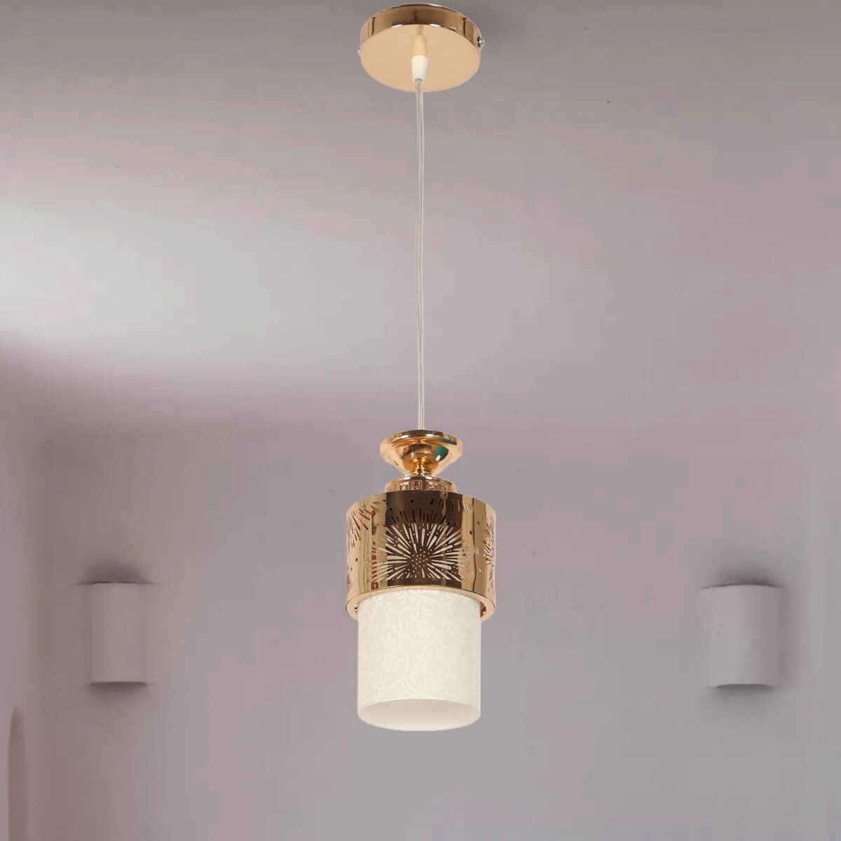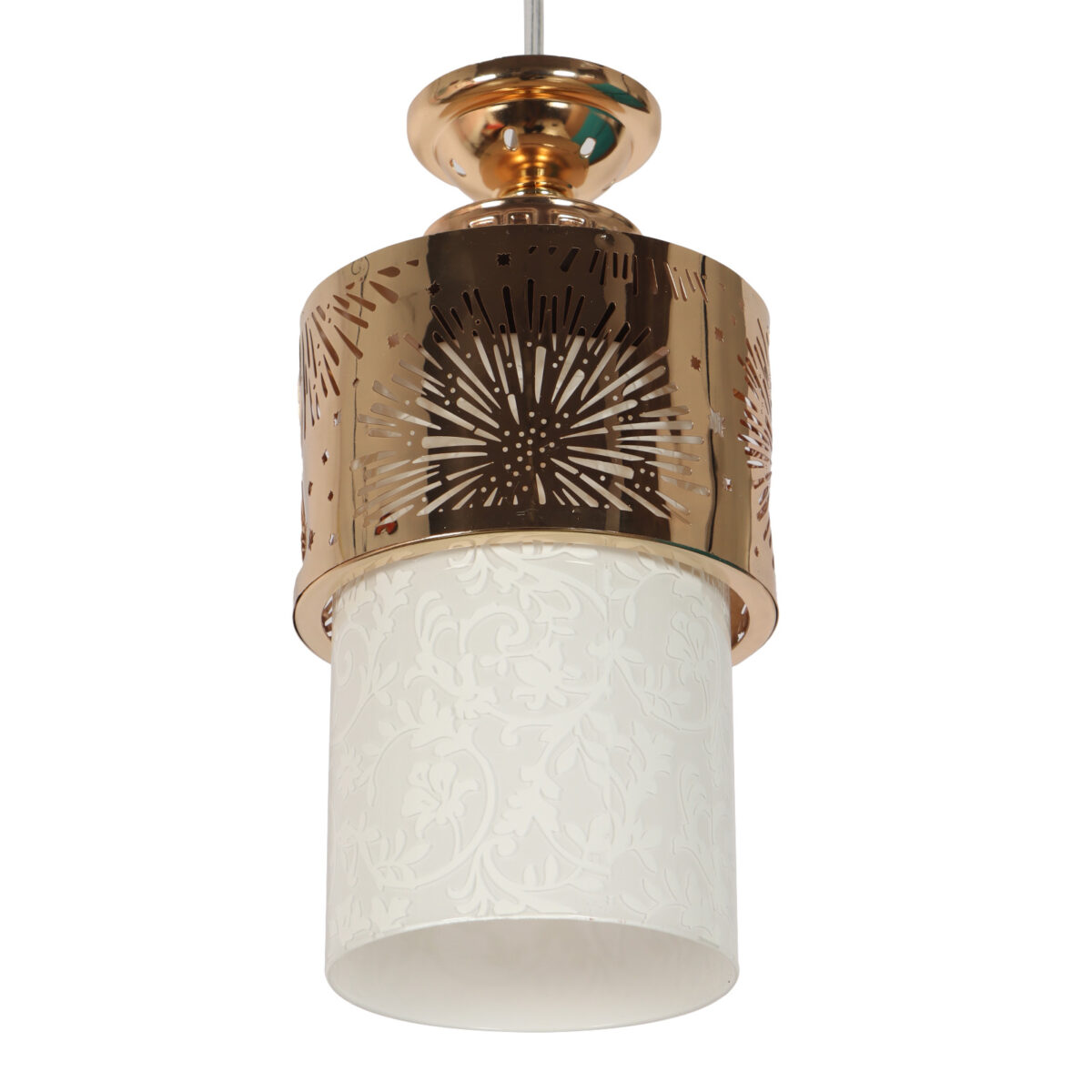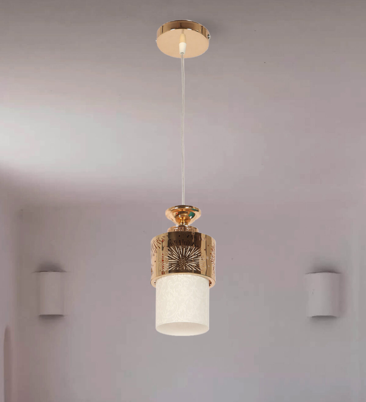 Gold finish single hanging light. Can be customised as per requirement in terms height, finish. Also availble in clusters of multiple quantity. LAMPS NOT INCLUDED.