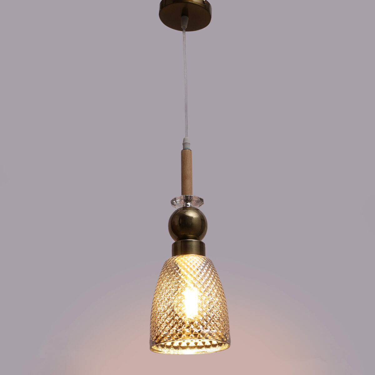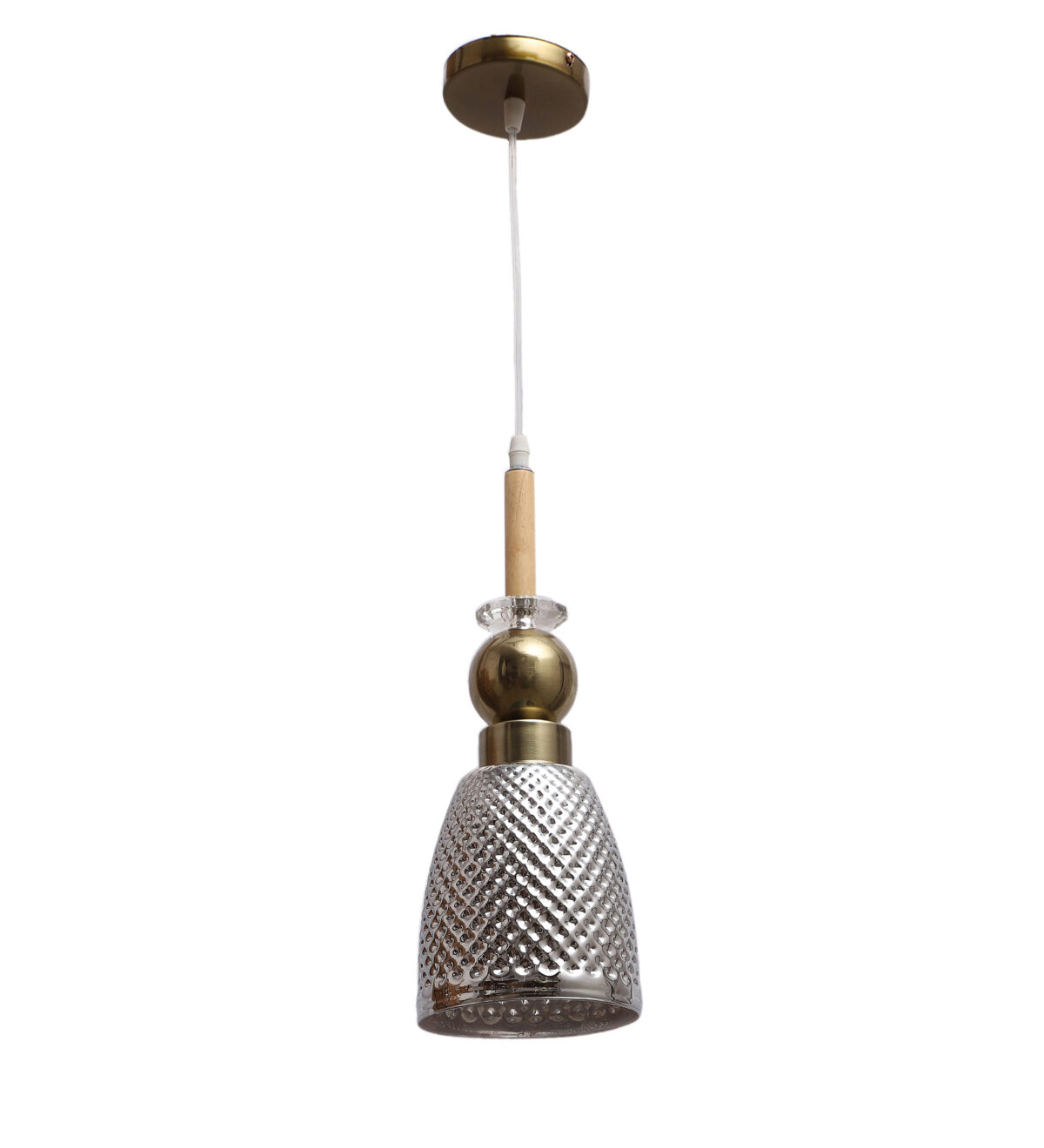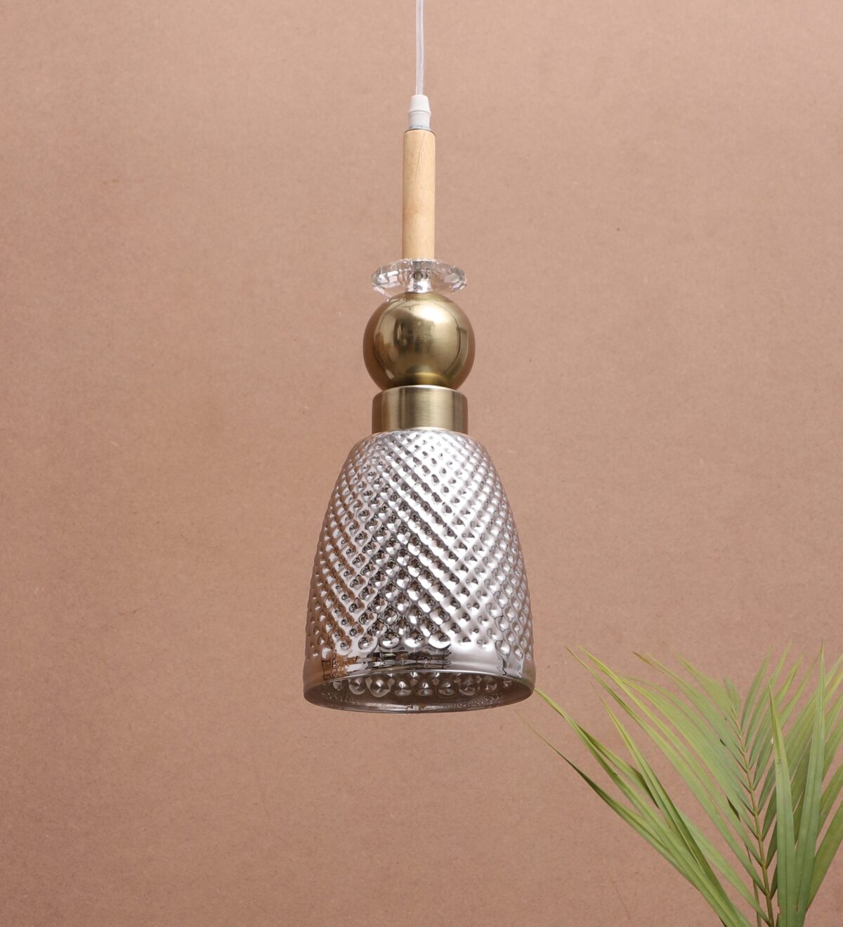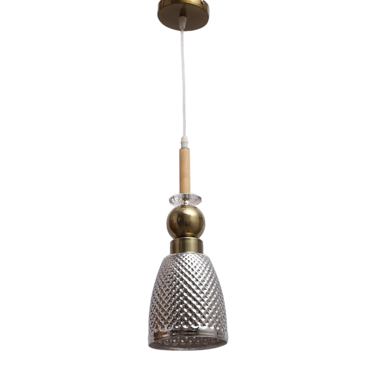 Antique finish single hanging light made of wood, mild steel and glass. The suspension can be adjusted at time of installation to the desired height. Can be customized as per requirement. LAMP NOT INCLUDED.
