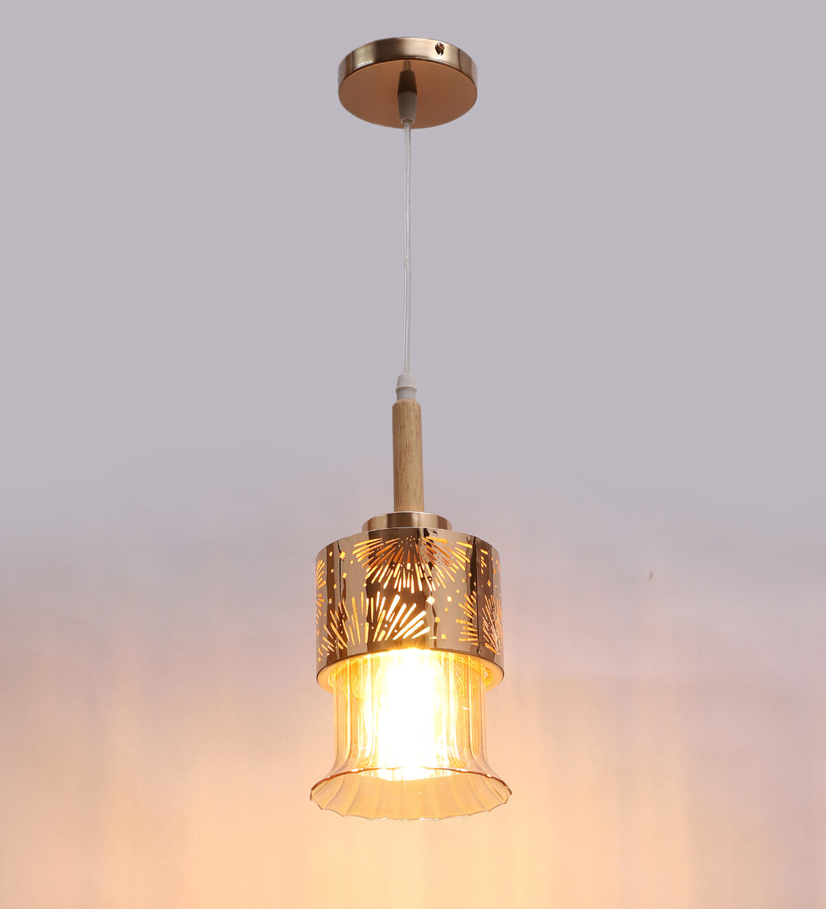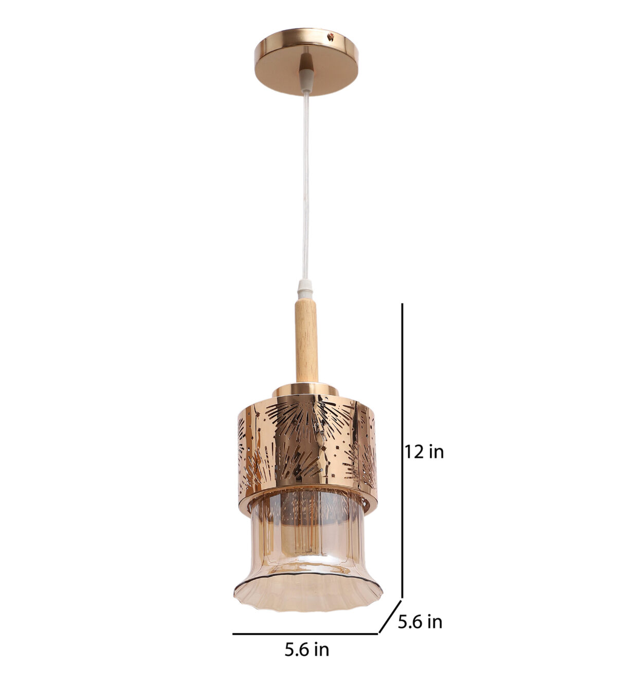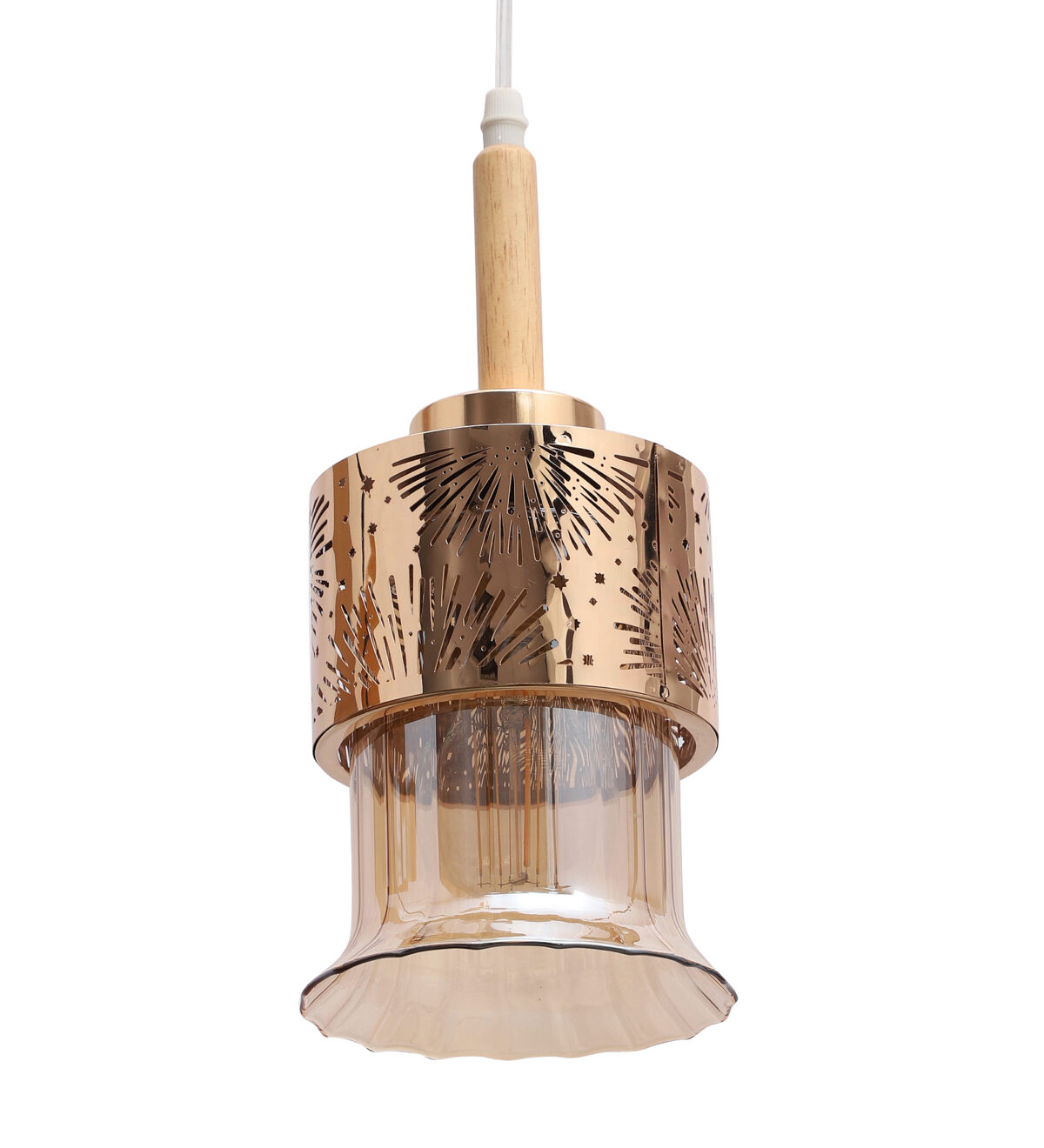 Gold modern, single hanging light in champaign glass. The suspension can be adjusted at time of installation to the desired height. It is maintenance free, comes with an E27 holder.Can be customized as per requirement. LAMP NOT INCLUDED.