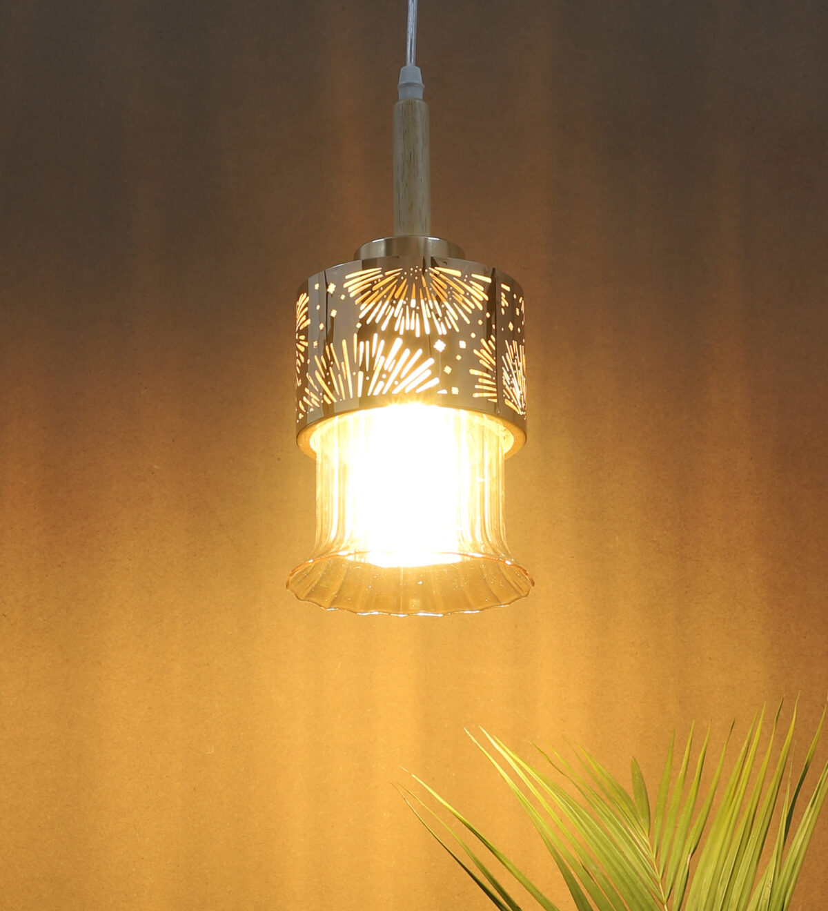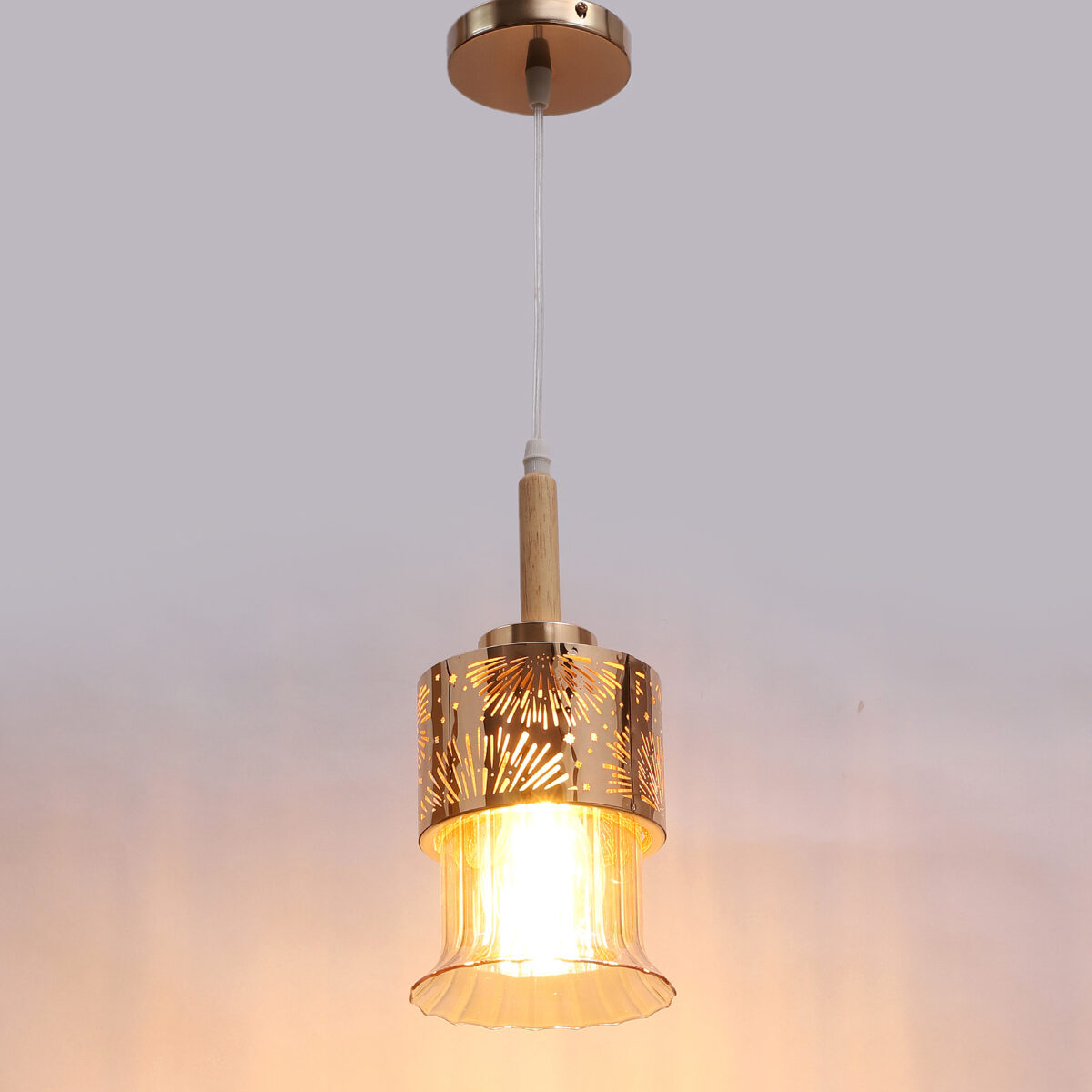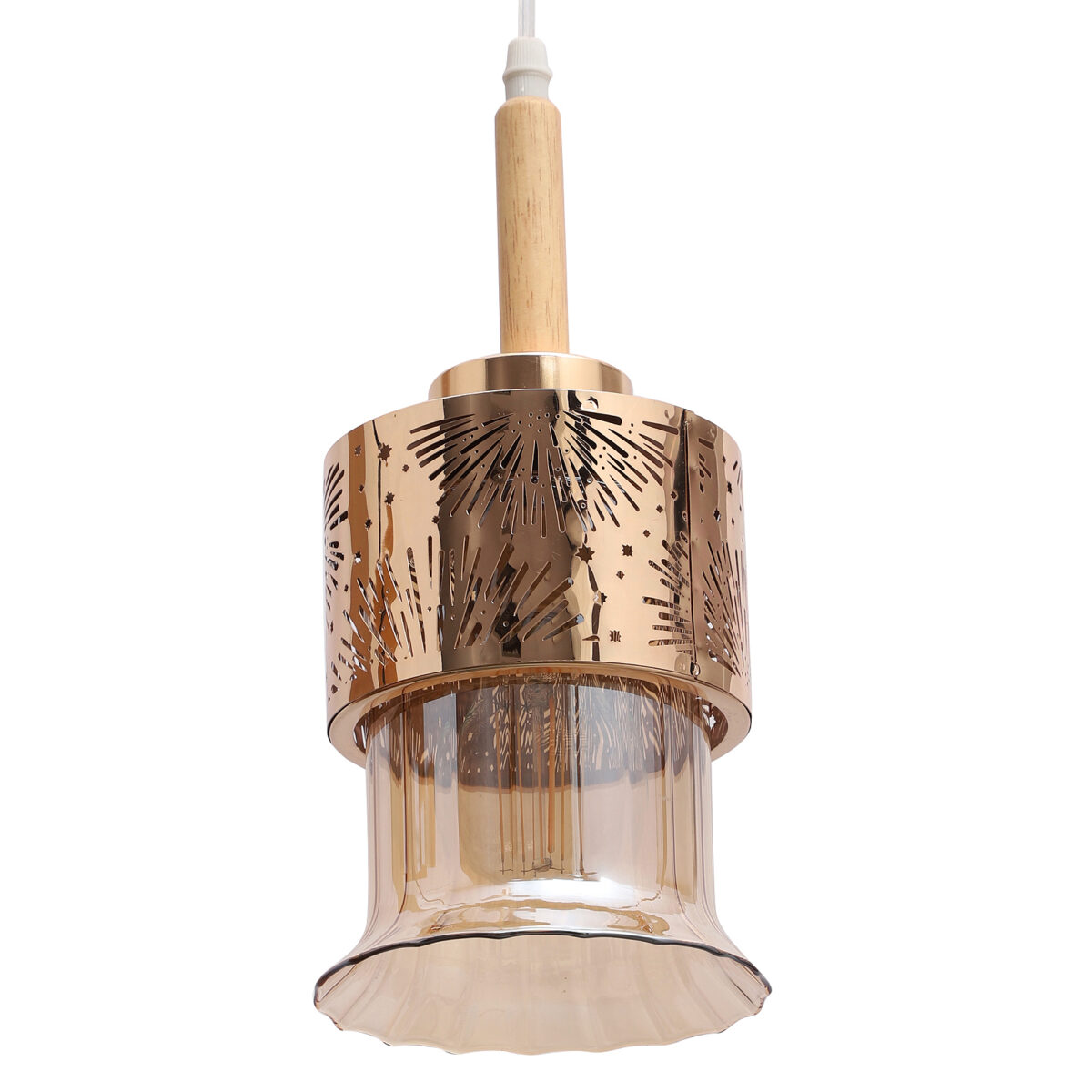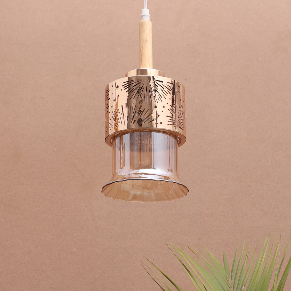Gold modern, single hanging light in champaign glass. The suspension can be adjusted at time of installation to the desired height. It is maintenance free, comes with an E27 holder.Can be customized as per requirement. LAMP NOT INCLUDED.