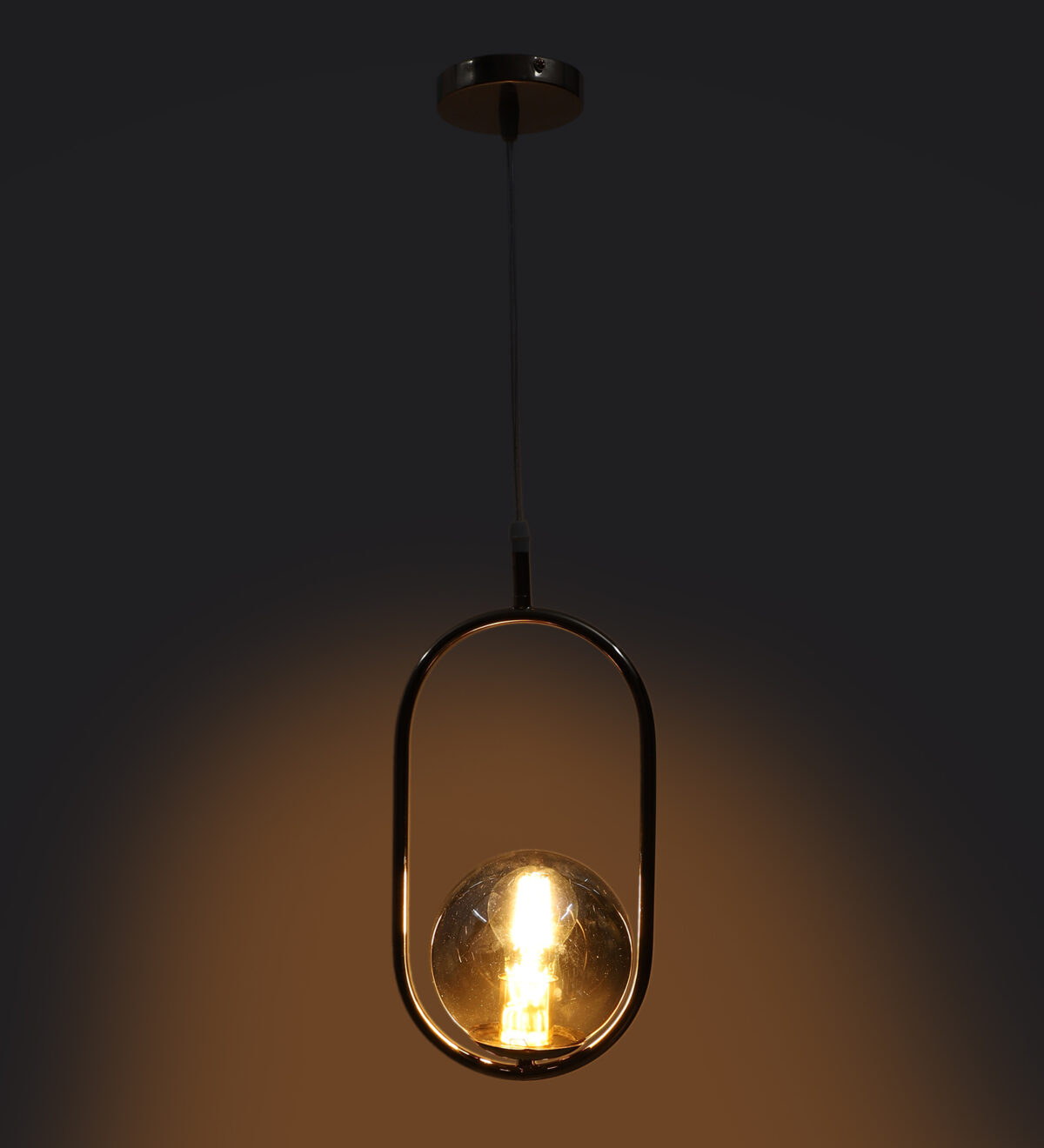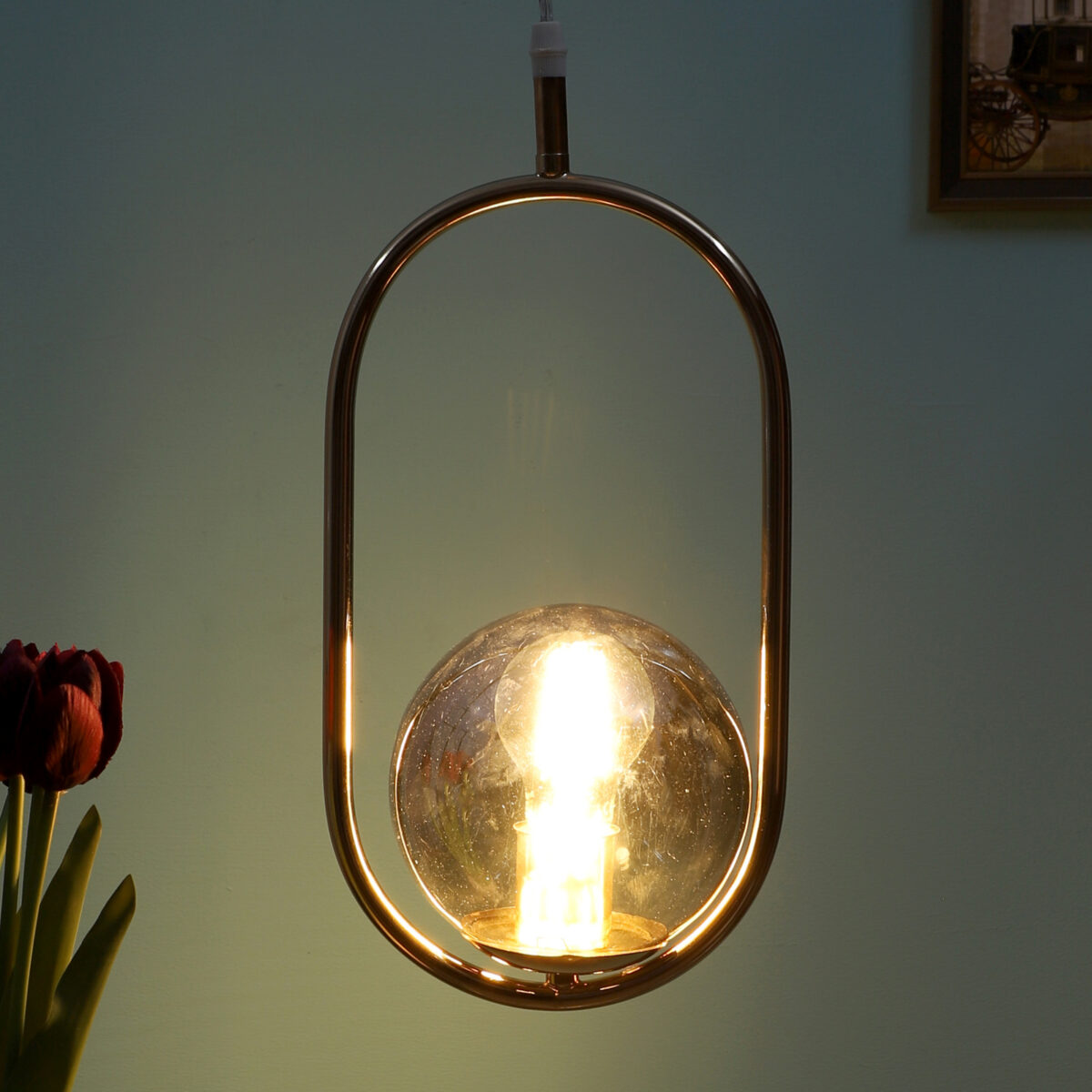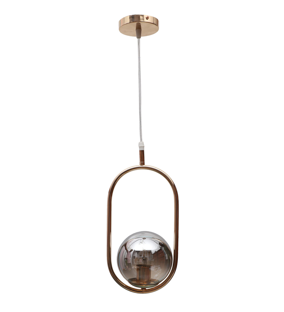 Gold modern, mild steel single hanging light in smoky doom glass. The suspension can be adjusted at time of installation to the desired height. It is maintenance free, comes with an E27 holder, only the change of lamp is required, which is available locally everywhere. Application includes both residential and commercial premises wherever it matches with your interiors. Can be customized as per requirement. LAMP NOT INCLUDED.