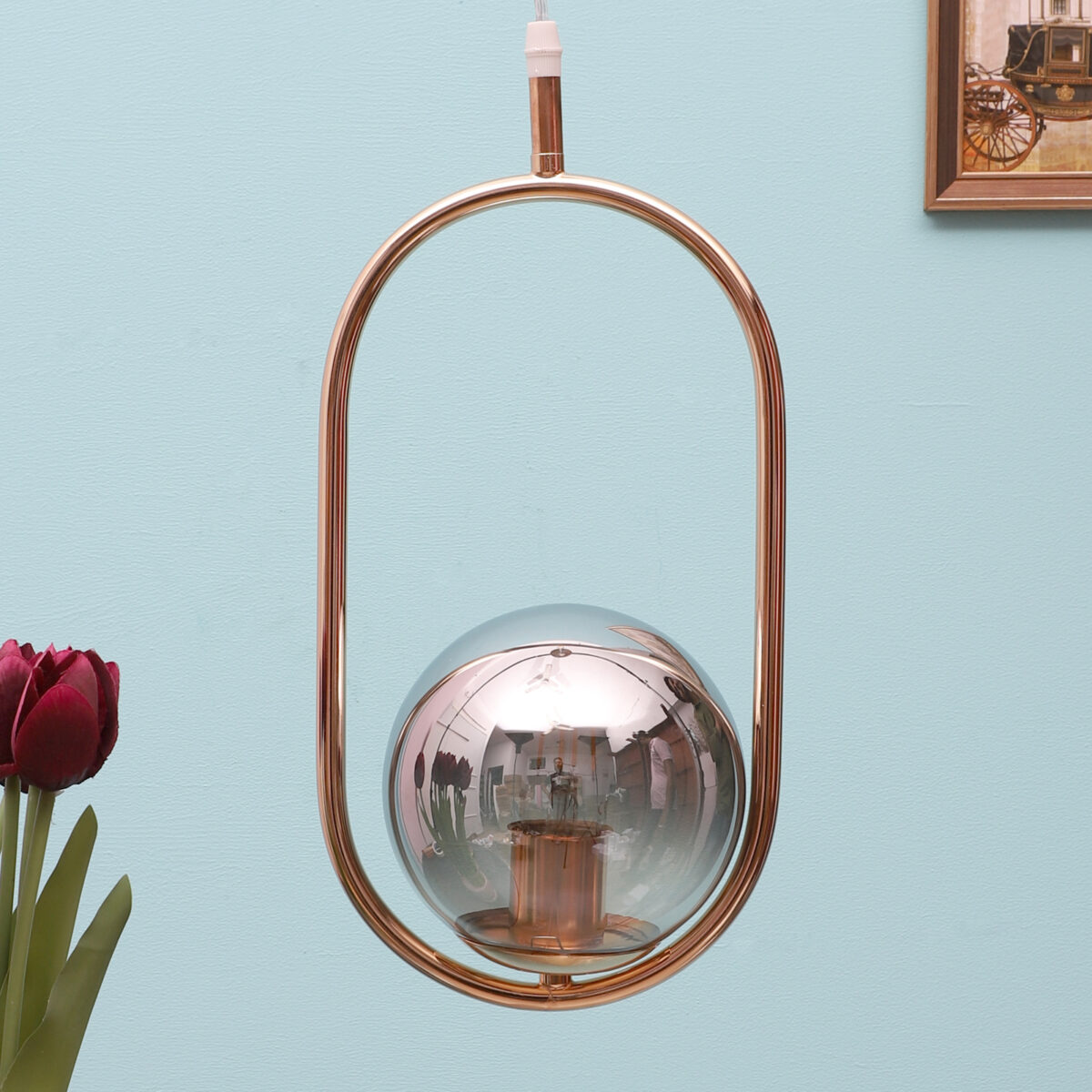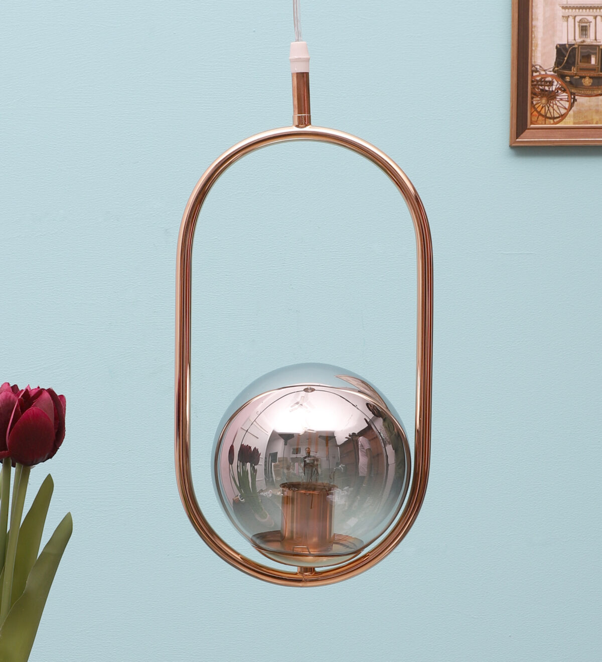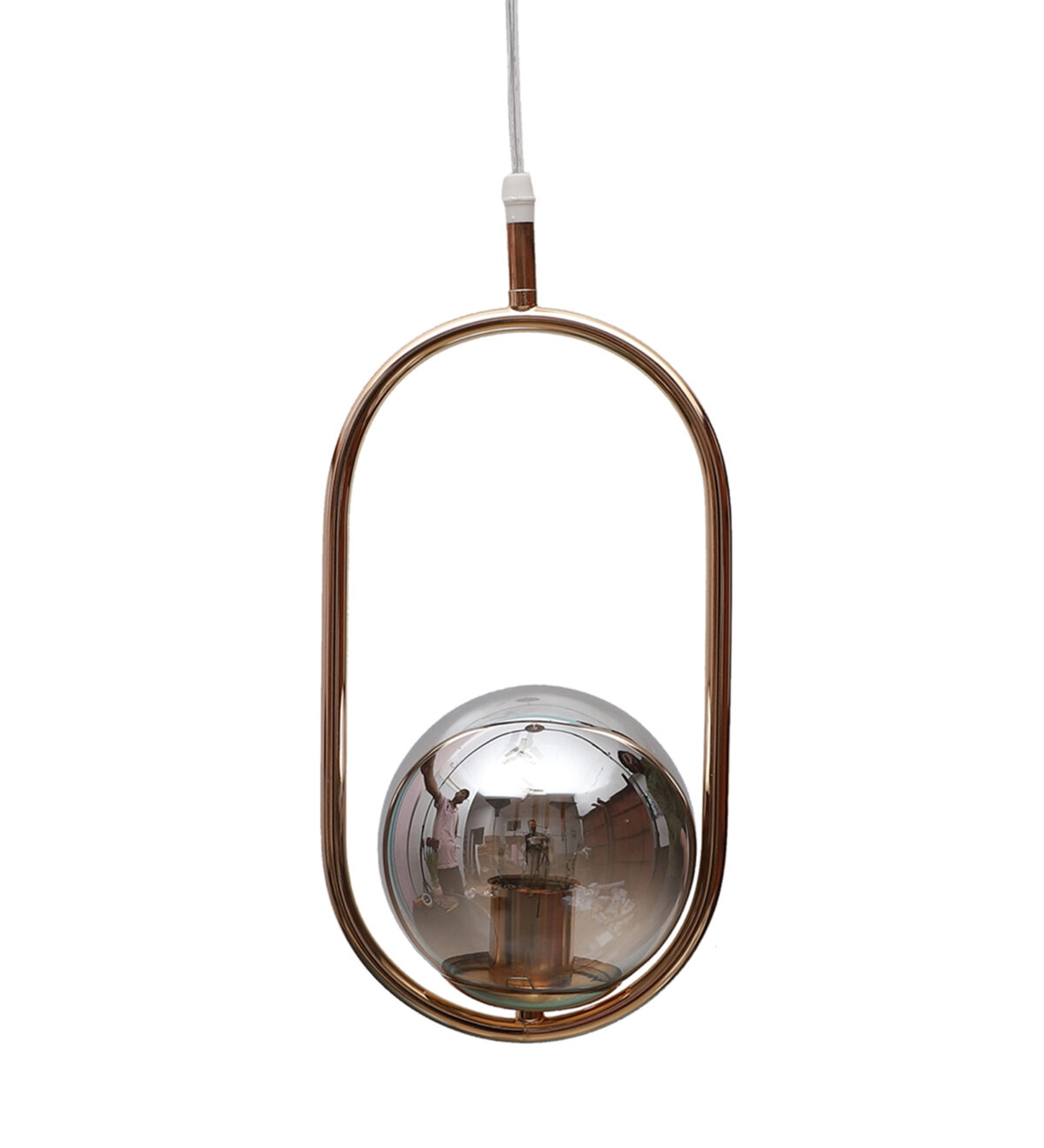 Gold modern, mild steel single hanging light in smoky doom glass. The suspension can be adjusted at time of installation to the desired height. It is maintenance free, comes with an E27 holder, only the change of lamp is required, which is available locally everywhere. Application includes both residential and commercial premises wherever it matches with your interiors. Can be customized as per requirement. LAMP NOT INCLUDED.