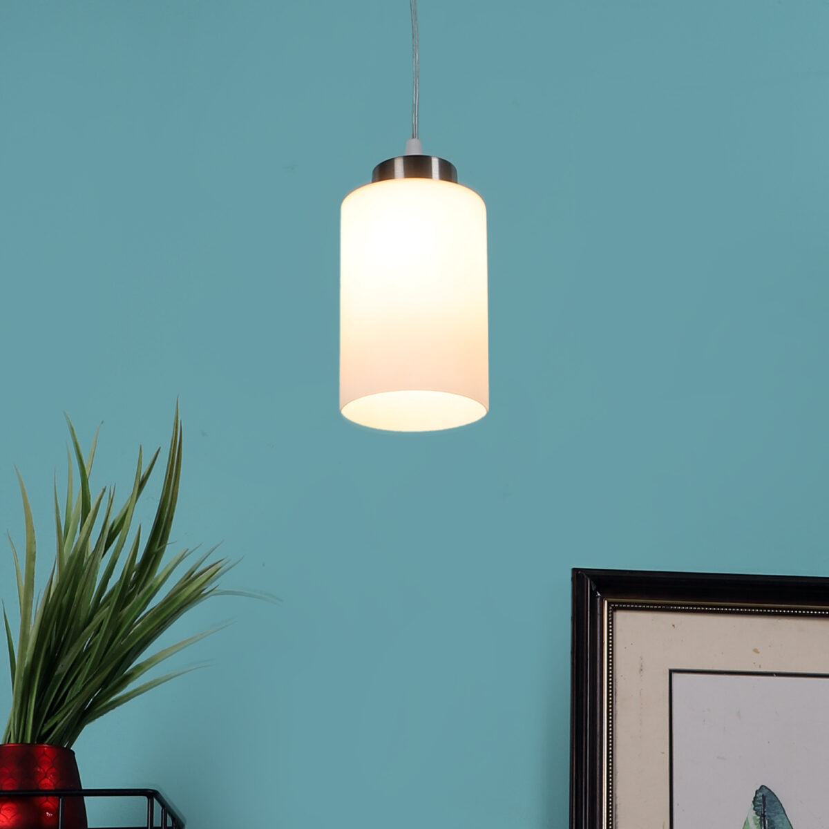 Silver (satin nickel) finish,modern cylindrical glass, single hanging light made of mild steel and glass. It is one of the regular design which is never out of trend. The suspension can be adjusted at time of installation to the desired height. It is maintenance free, easy to remove glass and wash them, comes with an E27 holder, only the change of lamp is required, which is available locally everywhere. Application includes both residential and commercial premises wherever it matches with your interiors. Matching three light code – HL3857-3, Matching silver (chrome) finish code HL3860-3, HL3860-1, Matching antique brass finish code – HL3863-3, HL3863-1, Matching dark brown (wood) finish code – HL3859-3, HL3859-1. Lamp not included.