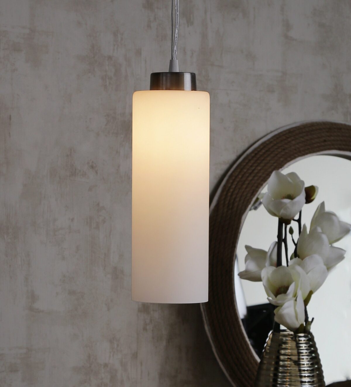 Silver (satin nickel) finish, modern long cylindrical glass cluster hanging light having three lamps made of mild steel and glass. It is one of the regular design which is never out of trend. The suspension can be adjusted at time of installation to the desired height. It is maintenance free, easy to remove glass and wash them, comes with an E27 holder, only the change of lamp is required, which is available locally everywhere. Application includes both residential and commercial premises wherever it matches with your interiors. Matching single light code – HL3870-1, Matching silver (chrome) finish code HL3871-3, HL3871-1, Matching antique brass finish code – HL3873-3, HL3873-1, Matching dark brown (wood) finish code – HL3872-3, HL3872-1. Lamp not included.