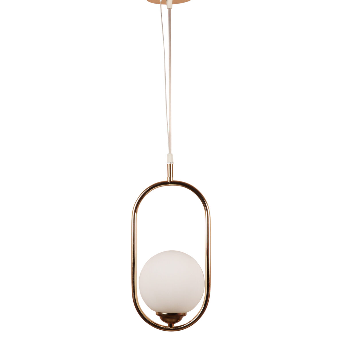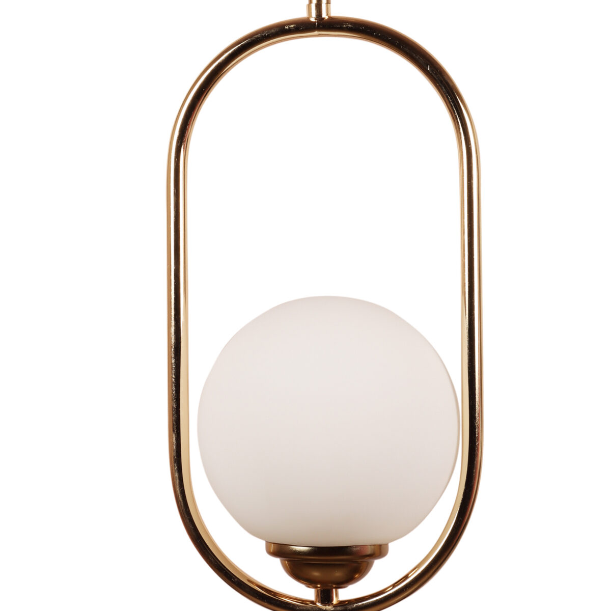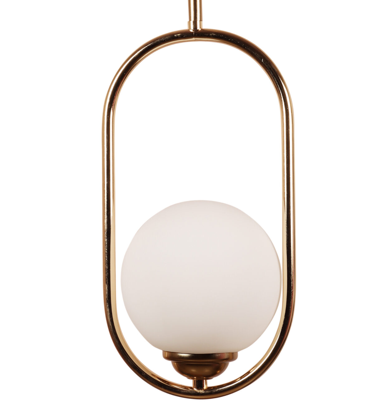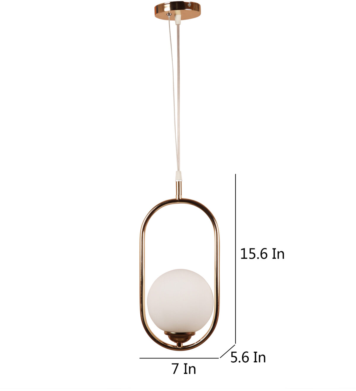 Gold modern, mild steel single hanging light in white doom glass. The suspension can be adjusted at time of installation to the desired height. It is maintenance free, comes with an E27 holder, only the change of lamp is required, which is available locally everywhere. Matching three light hanging code – HL6076-3. Application includes both residential and commercial premises wherever it matches with your interiors. Can be customized as per requirement in case of bulk quantities. LAMP NOT INCLUDED.